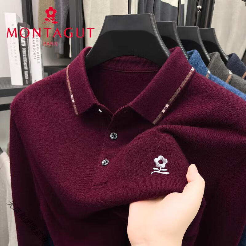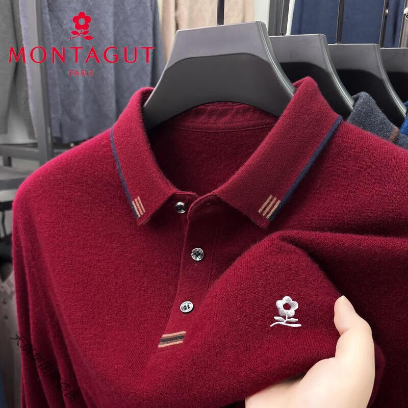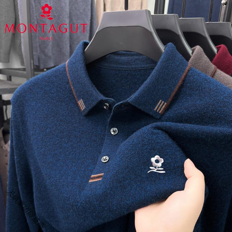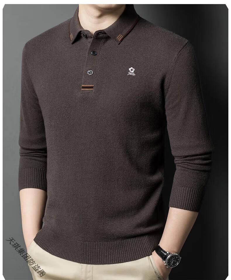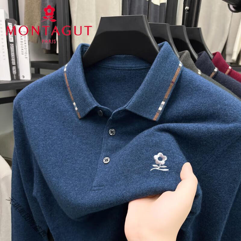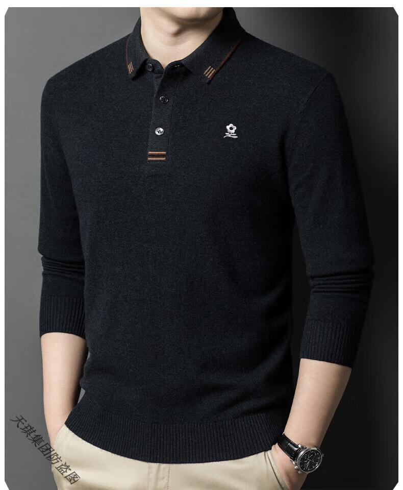 梦特娇春秋100纯山羊绒衫男中年爸爸装翻领长袖打底羊毛Polo衫T恤 98659军绿 3XL 190/104A