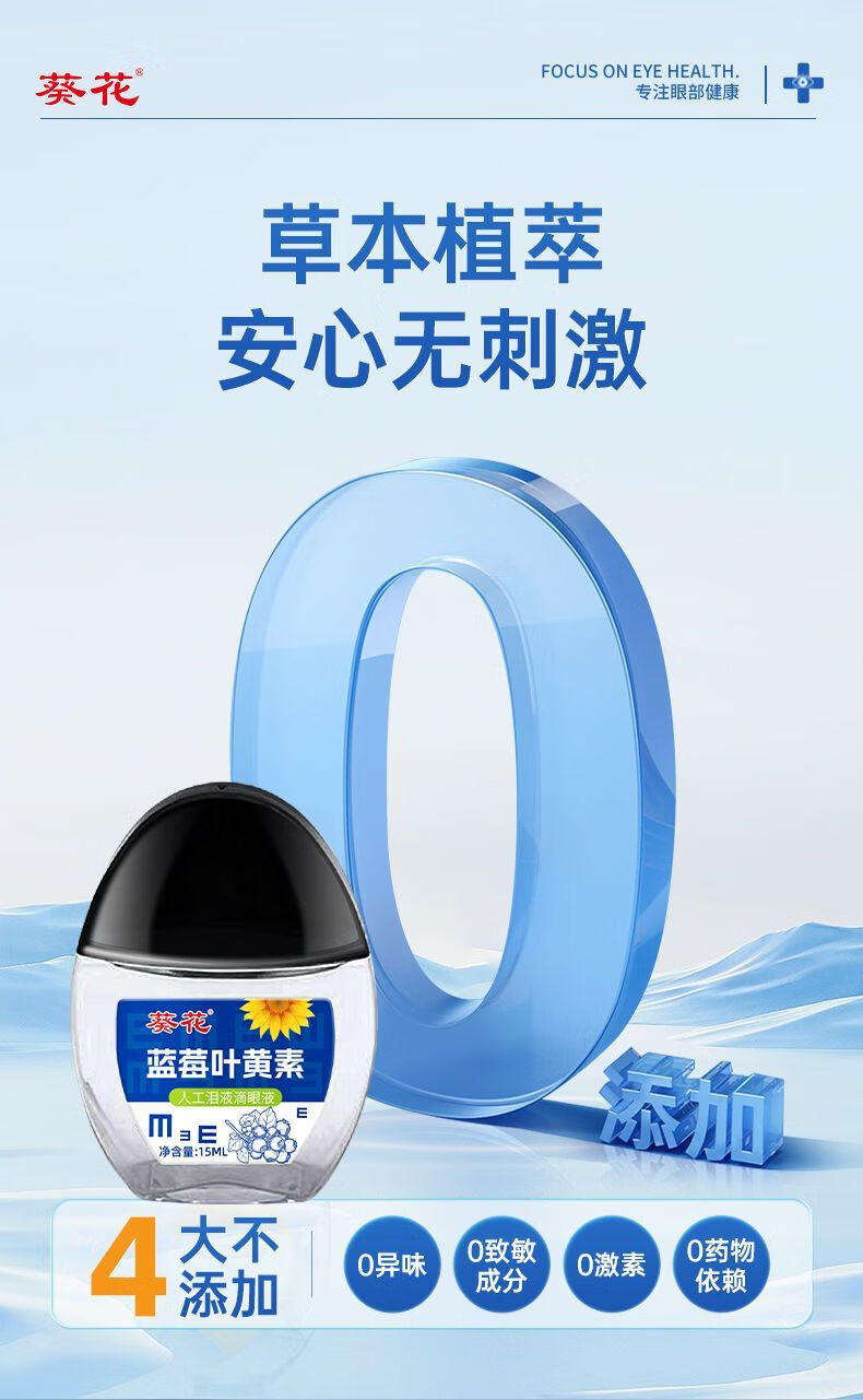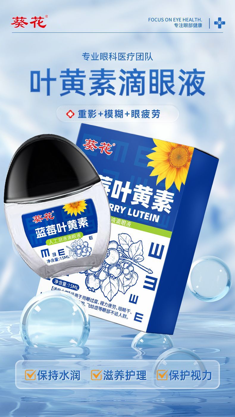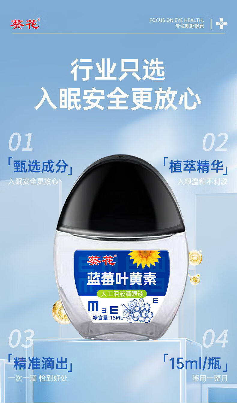 葵花蓝莓叶黄素滴眼液缓解眼疲劳眼干眼涩改善视力模糊温和护眼眼药水 1瓶体验装 15ml/瓶