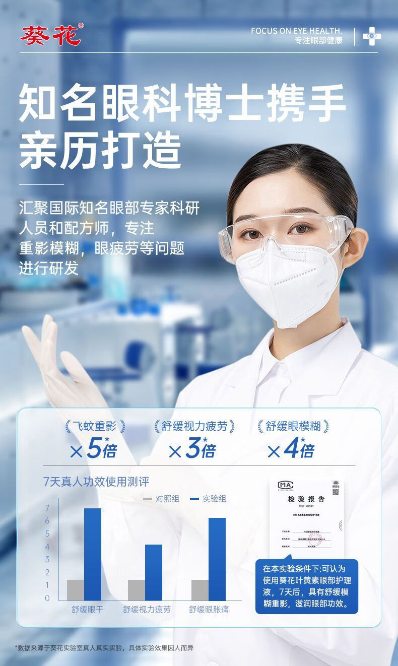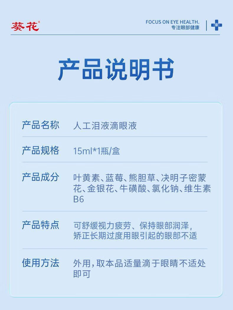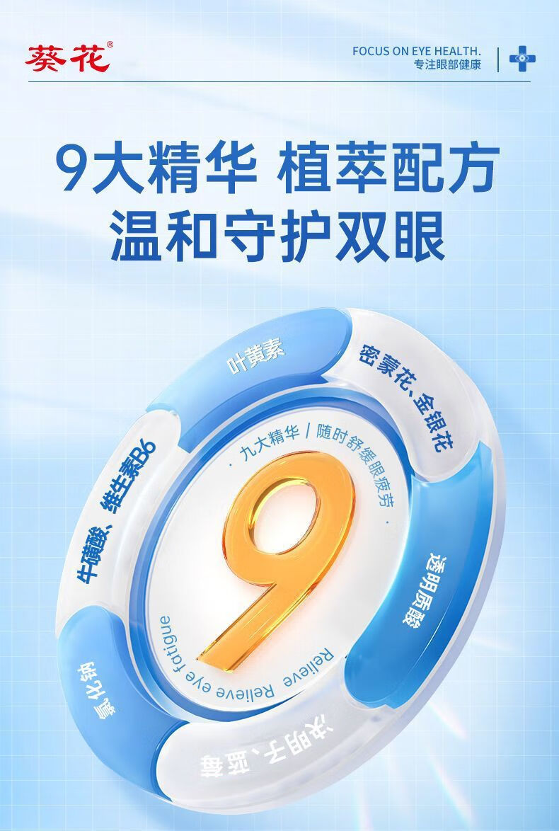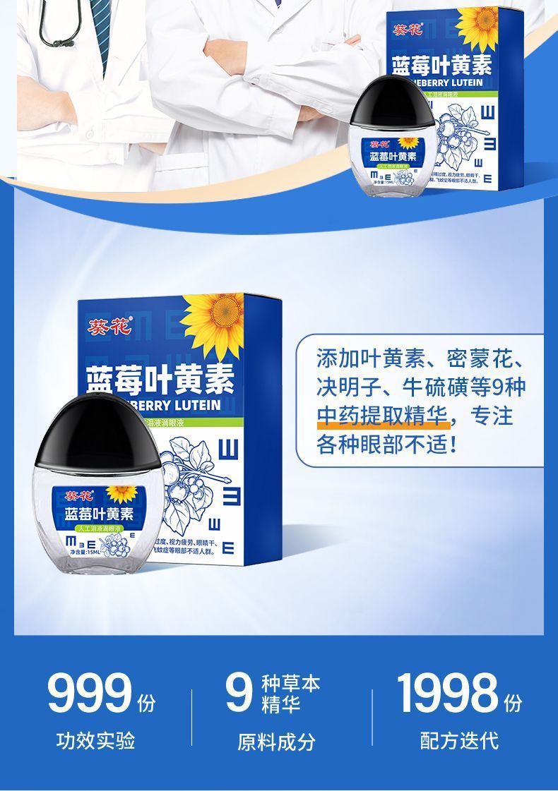葵花蓝莓叶黄素滴眼液缓解眼疲劳眼干眼涩改善视力模糊温和护眼眼药水 1瓶体验装 15ml/瓶
