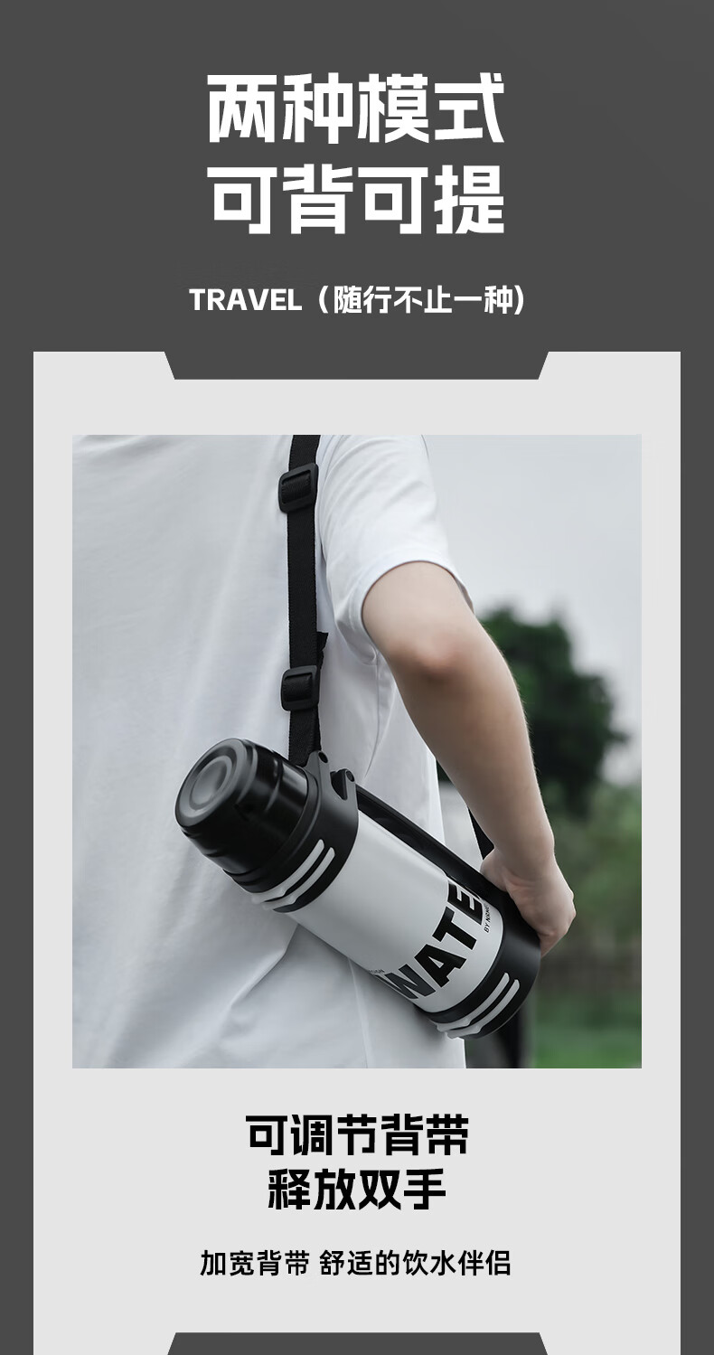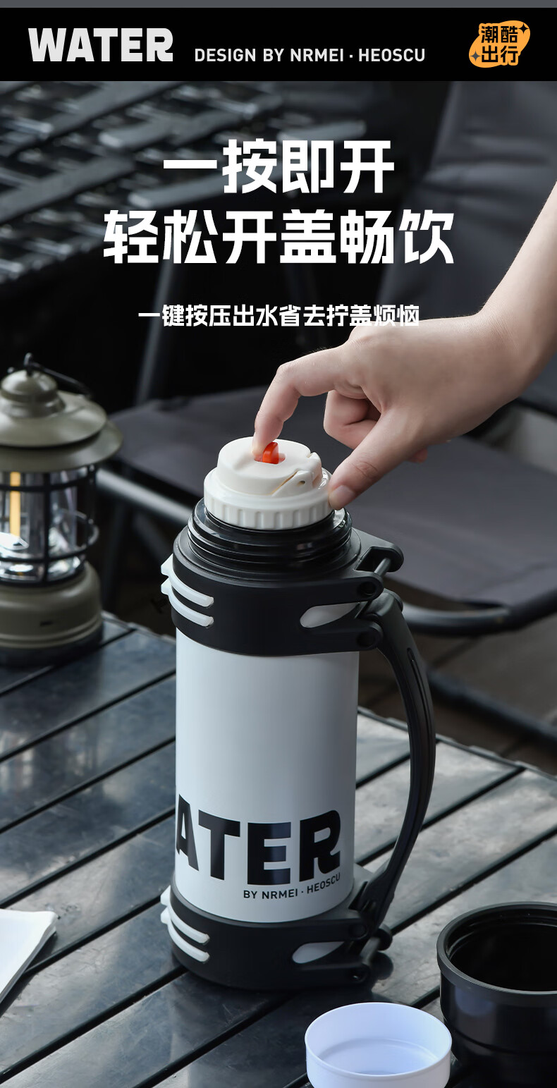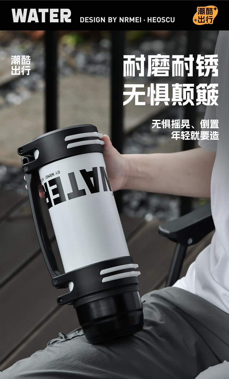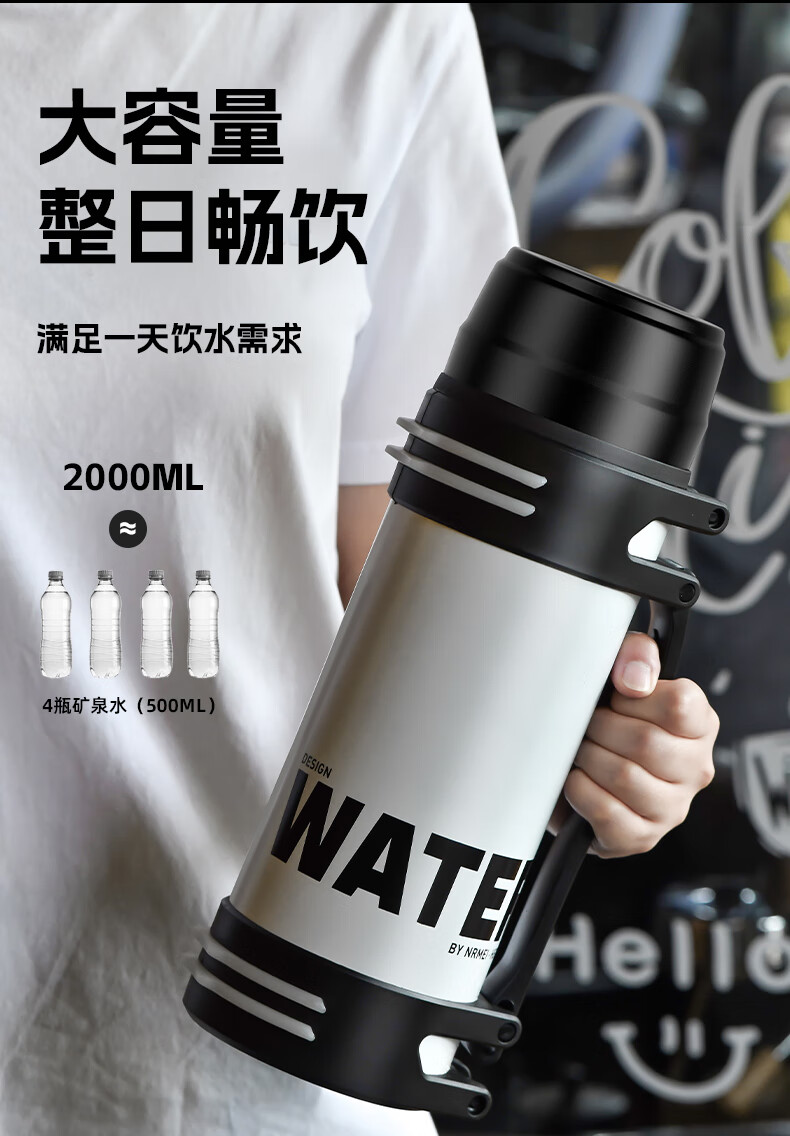 恩尔美(nRMEi)保温壶保冷杯超大容量保冰块不化316外出便携式车载工地保温水壶 黑色2000ml【保冰保温72H】