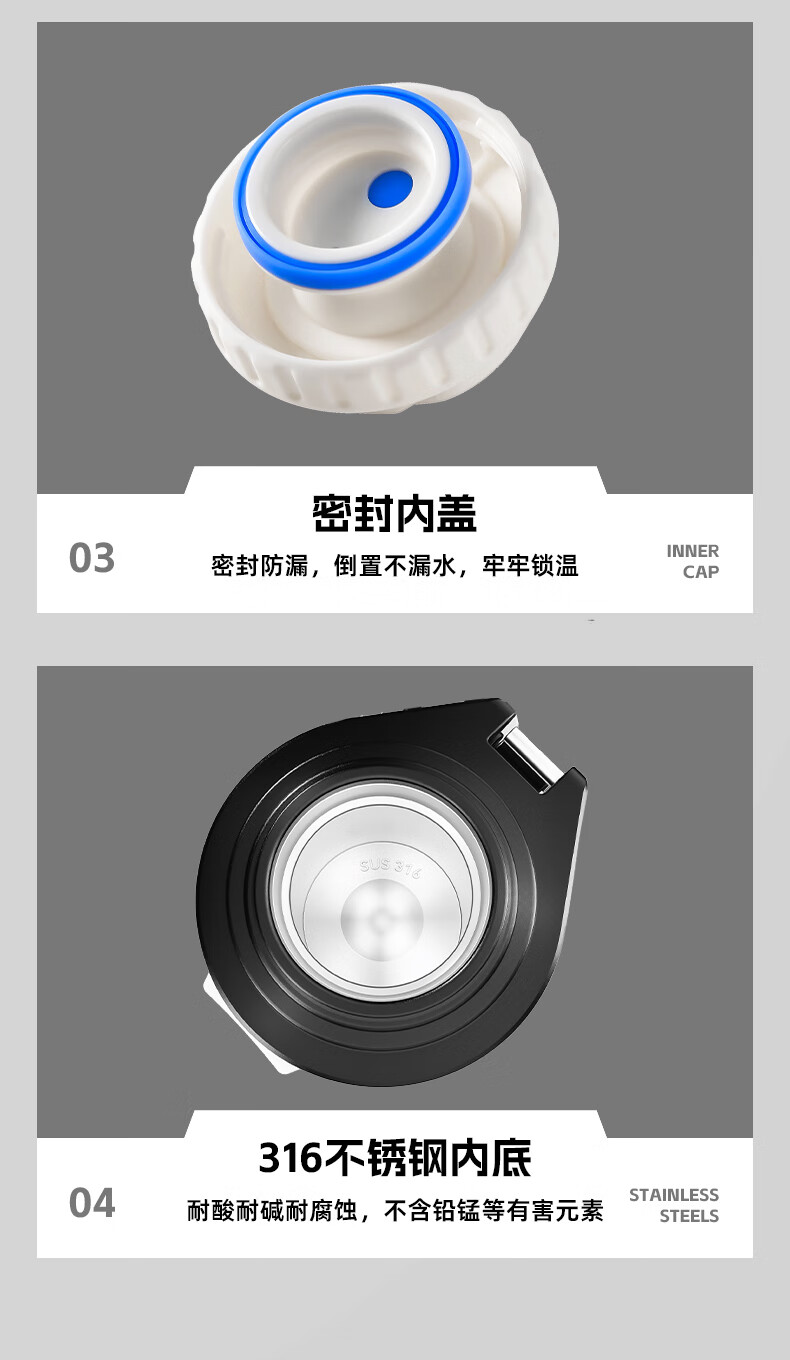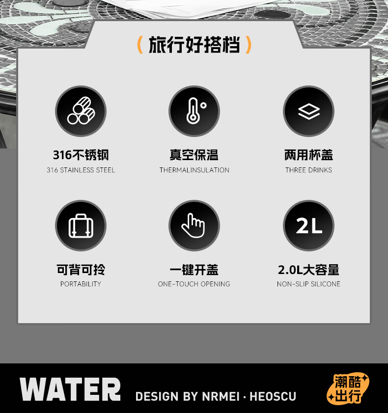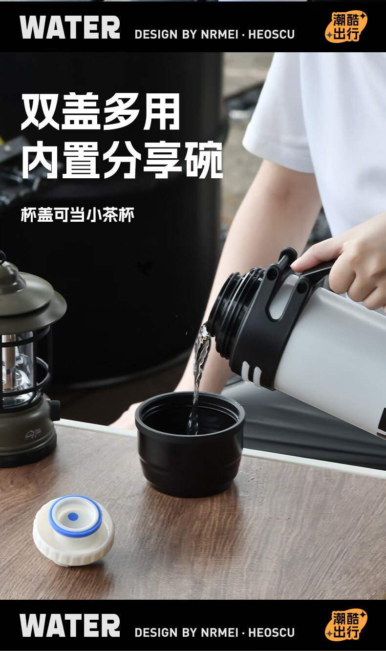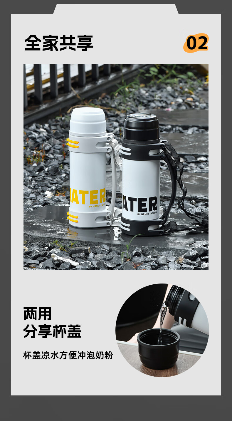 恩尔美(nRMEi)保温壶保冷杯超大容量保冰块不化316外出便携式车载工地保温水壶 黑色2000ml【保冰保温72H】