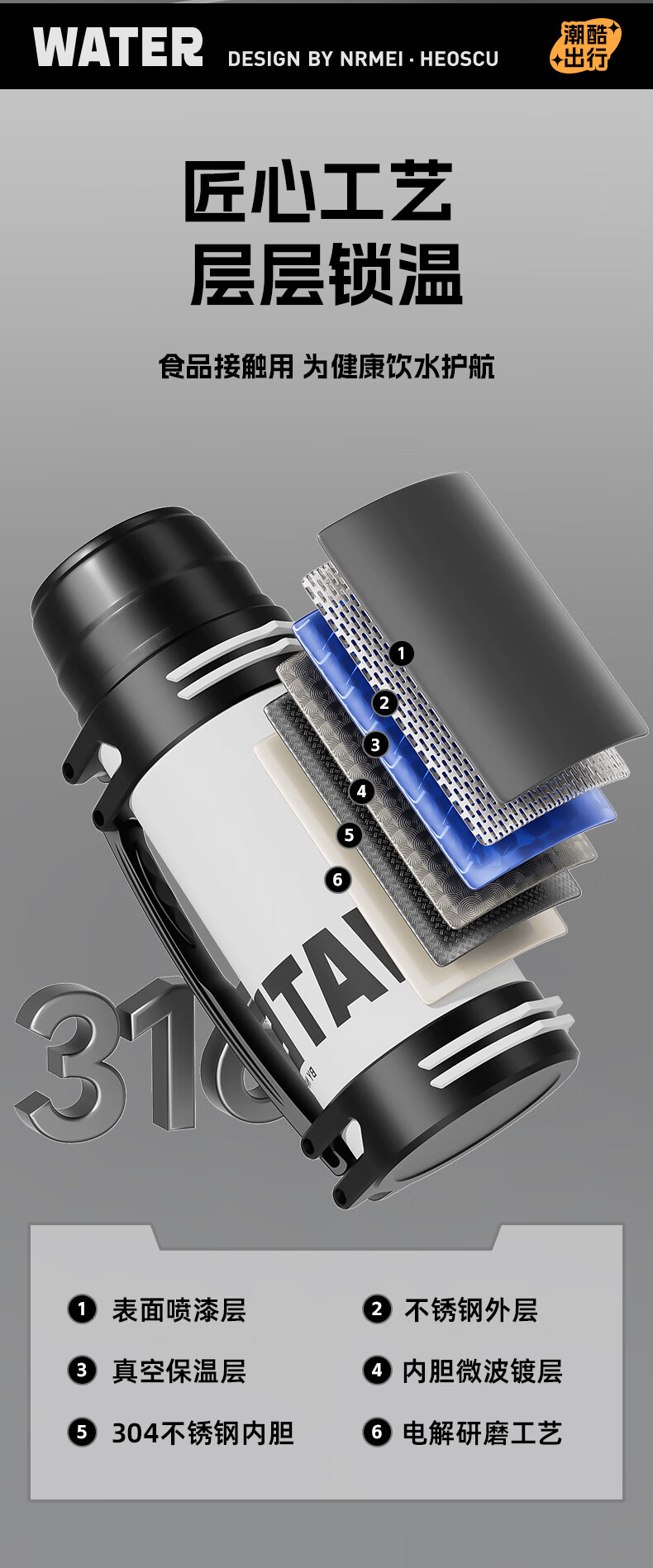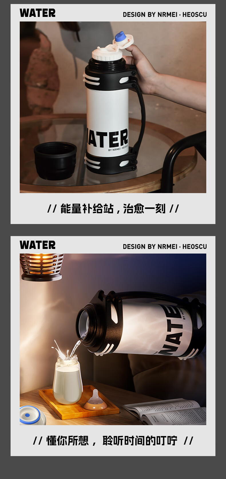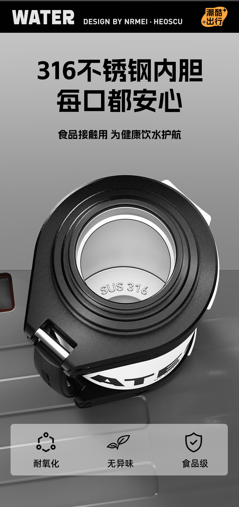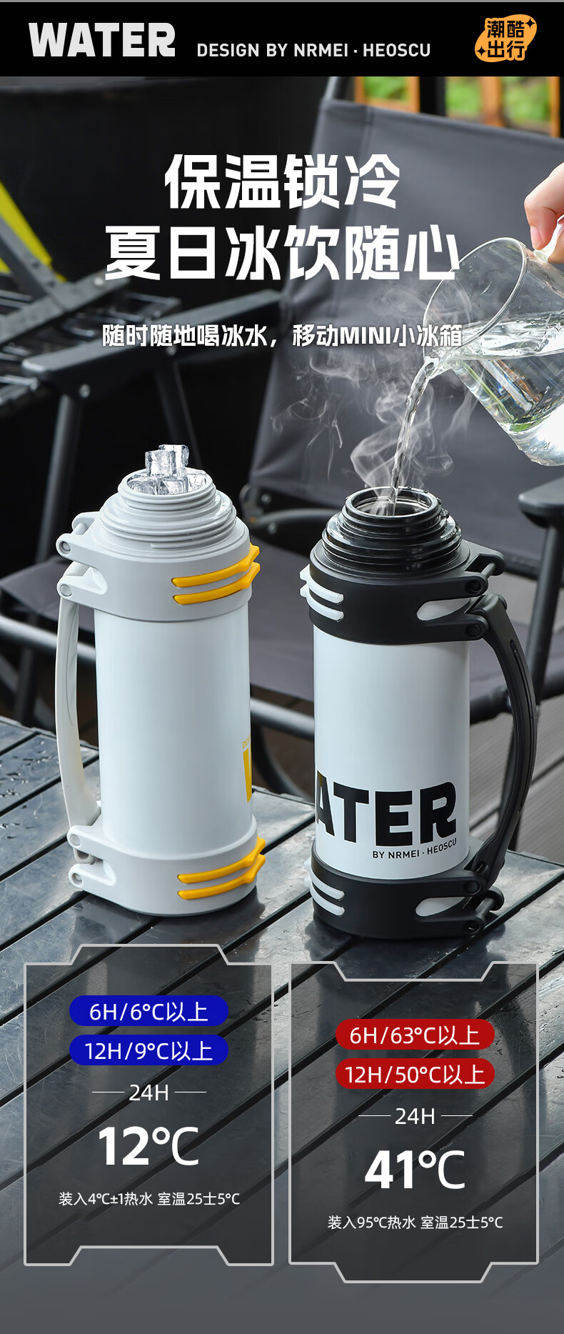 恩尔美(nRMEi)保温壶保冷杯超大容量保冰块不化316外出便携式车载工地保温水壶 黑色2000ml【保冰保温72H】