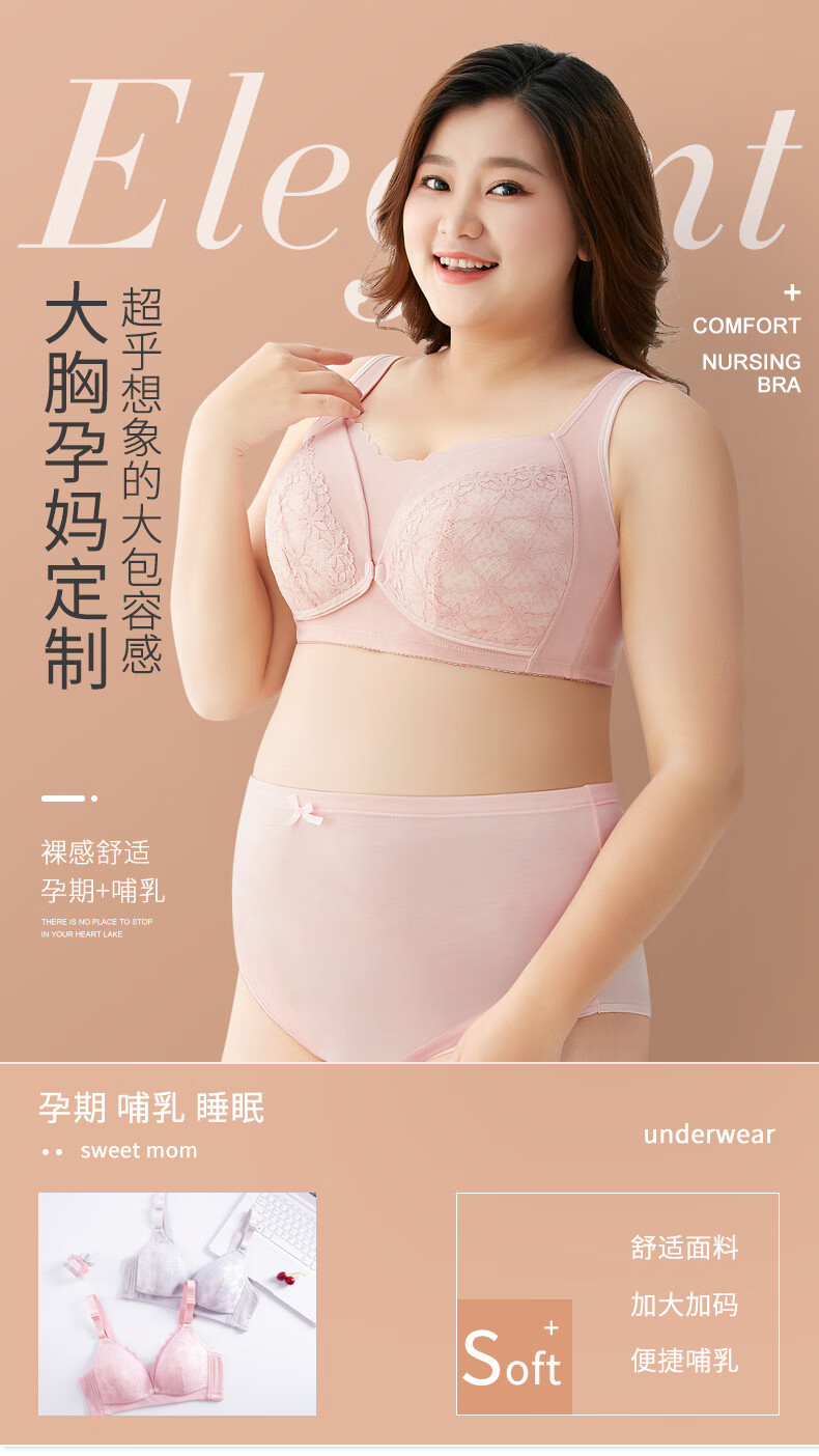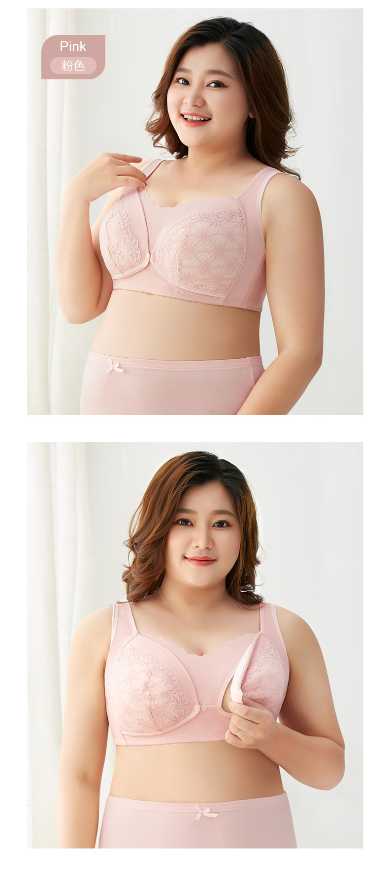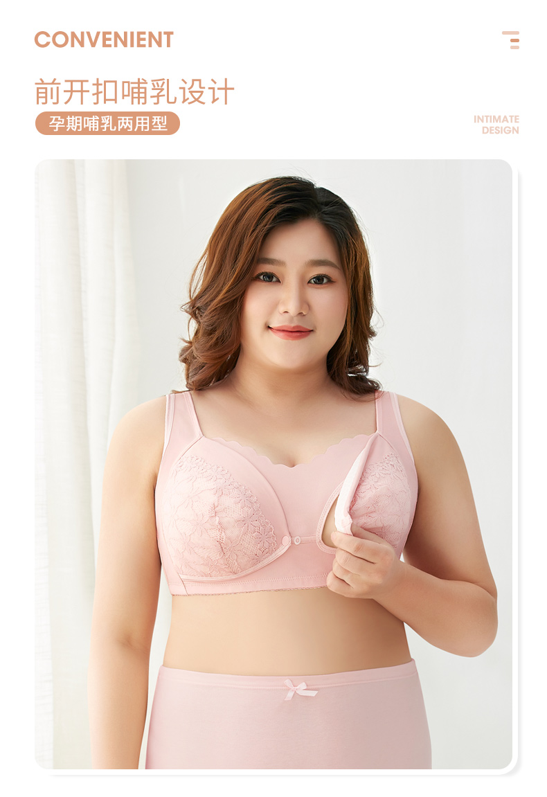 霞婷(xiating)大码哺乳内衣大罩杯聚拢喂奶孕妇怀孕期舒适文胸罩前开扣bra 208粉色(19-11) 46/105F