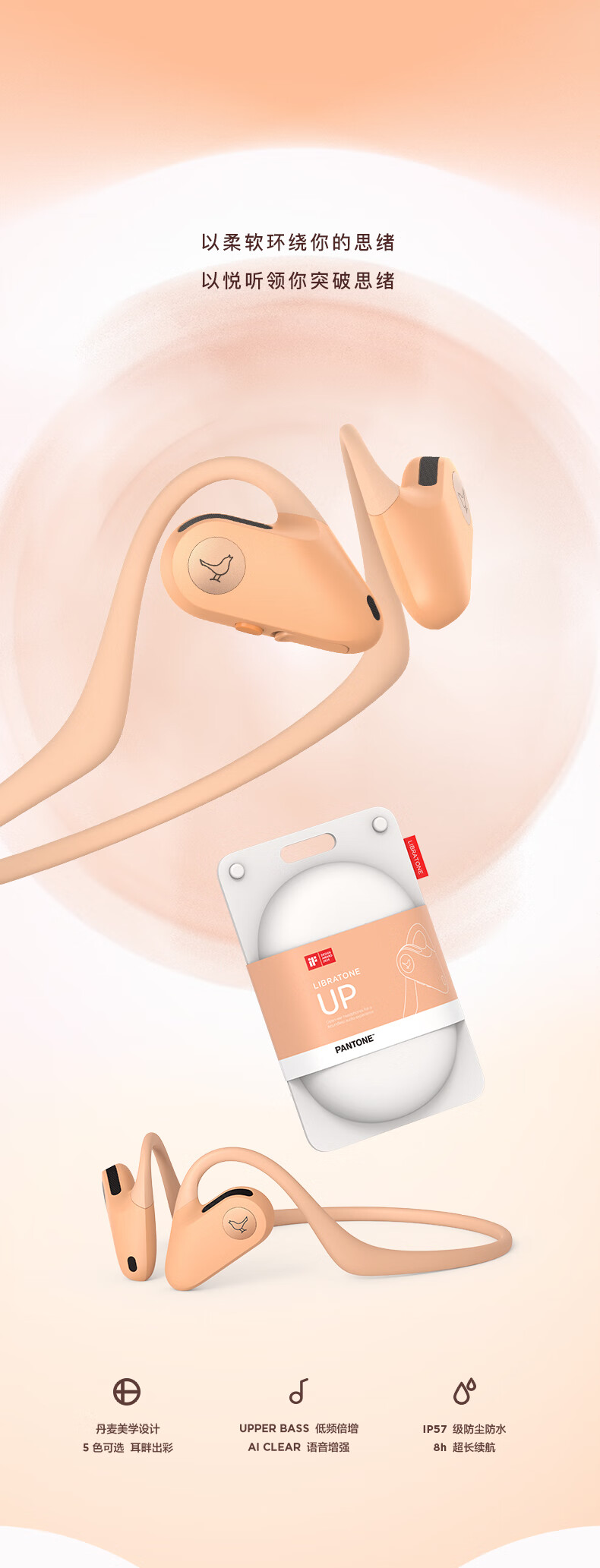 LIBRATONE小鸟UP耳机开放式蓝牙耳机不入耳后挂式跑步运动骑行轻便时尚无线耳机适用于苹果华为 柔和桃 标配