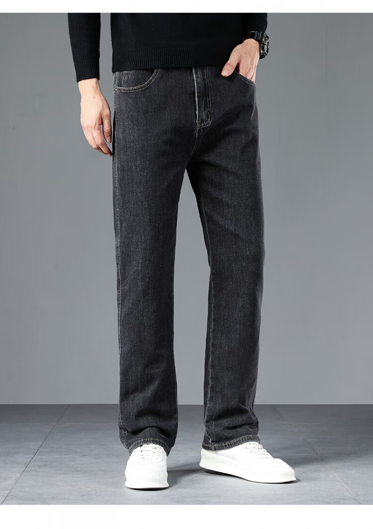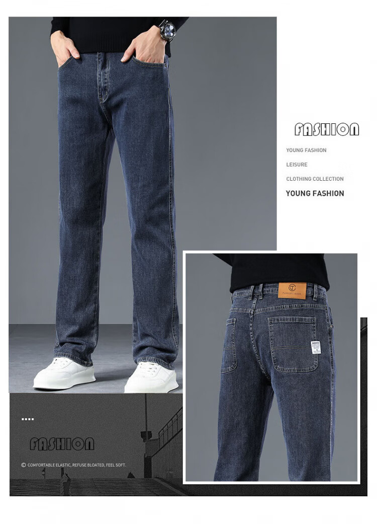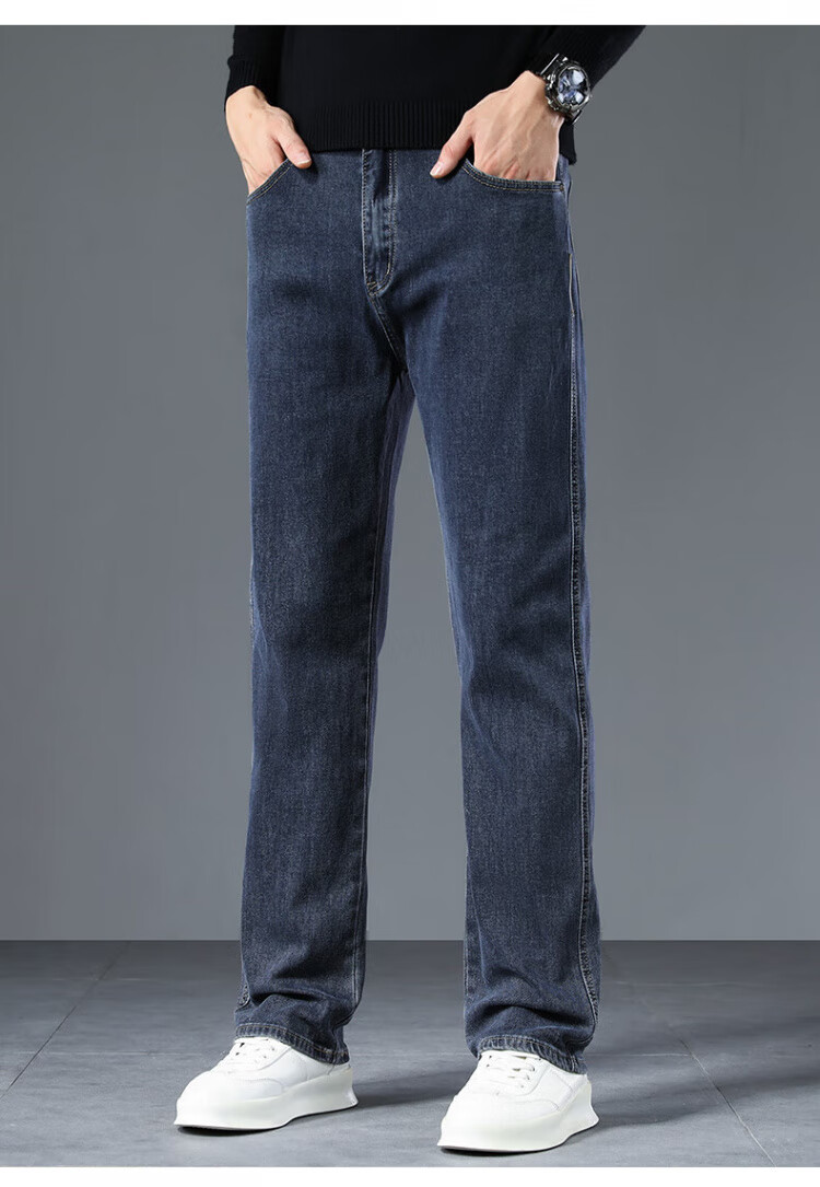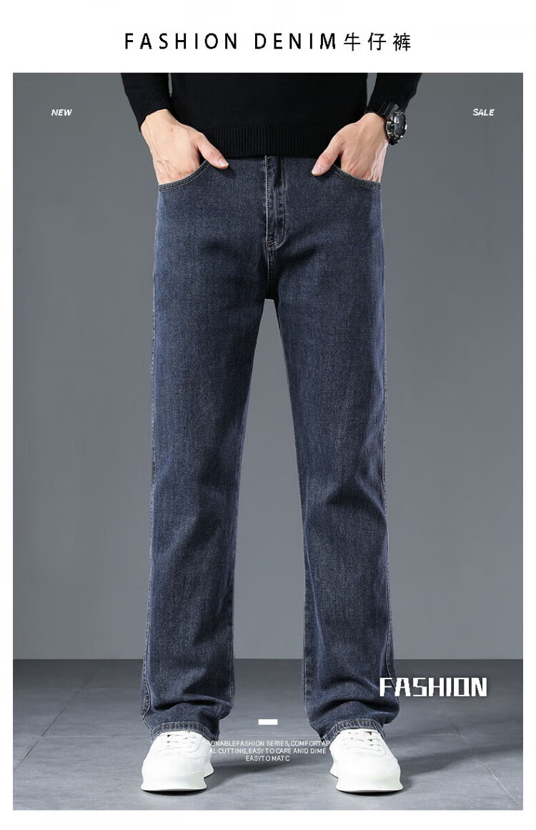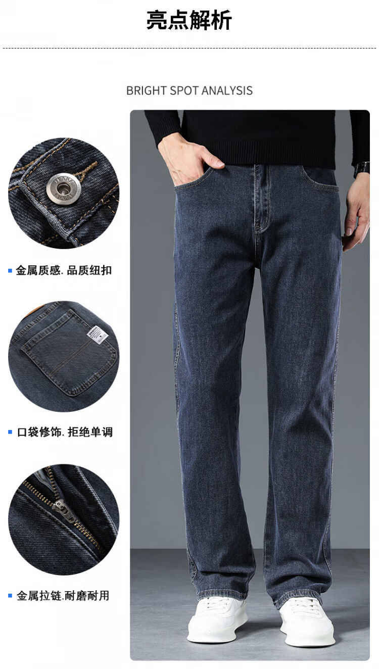 AEMAPE2025新款秋冬加绒加厚直筒牛仔裤男士高品质复古水洗高街宽松裤子 蓝灰色 加绒 33 建议140-150斤