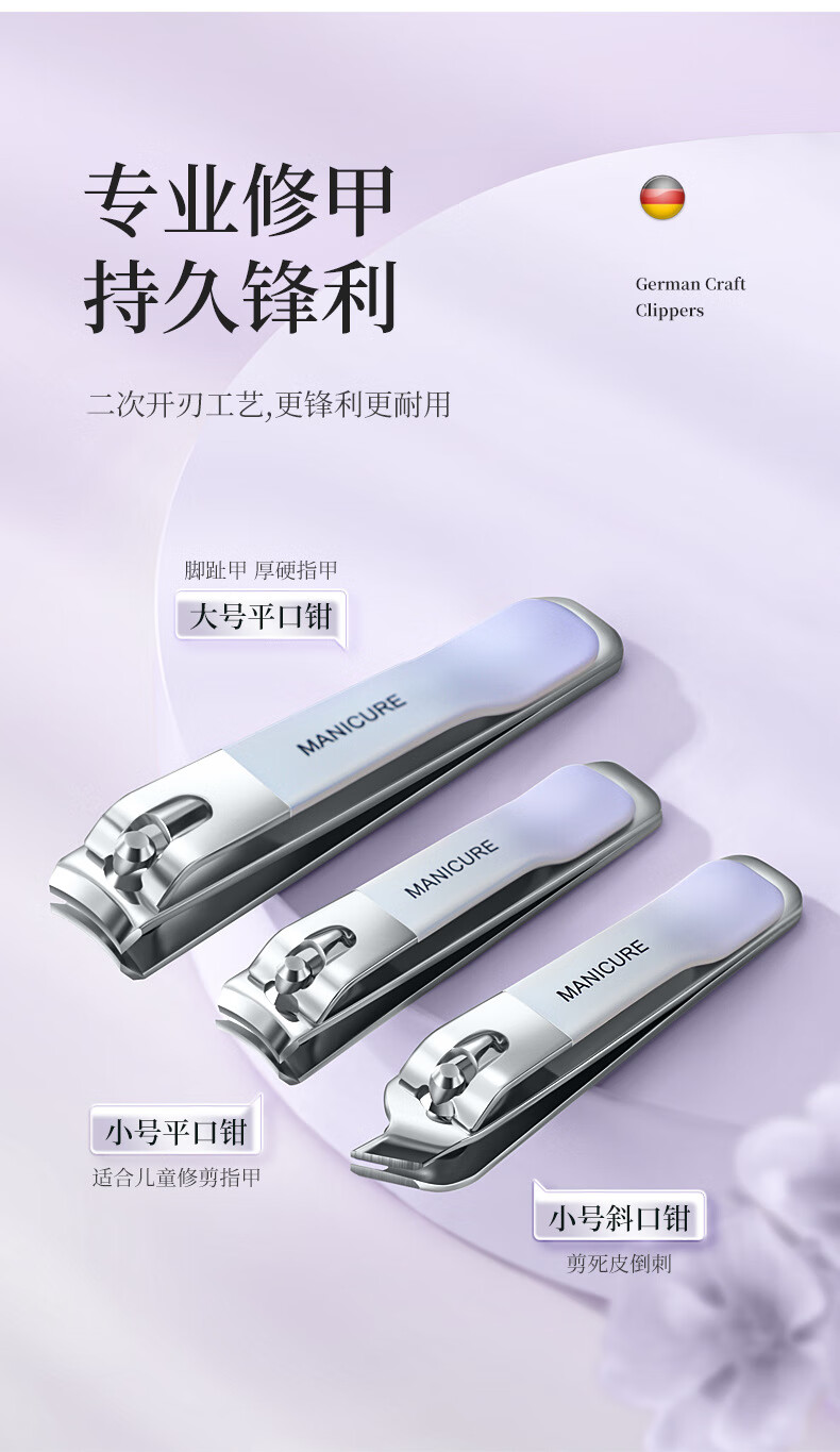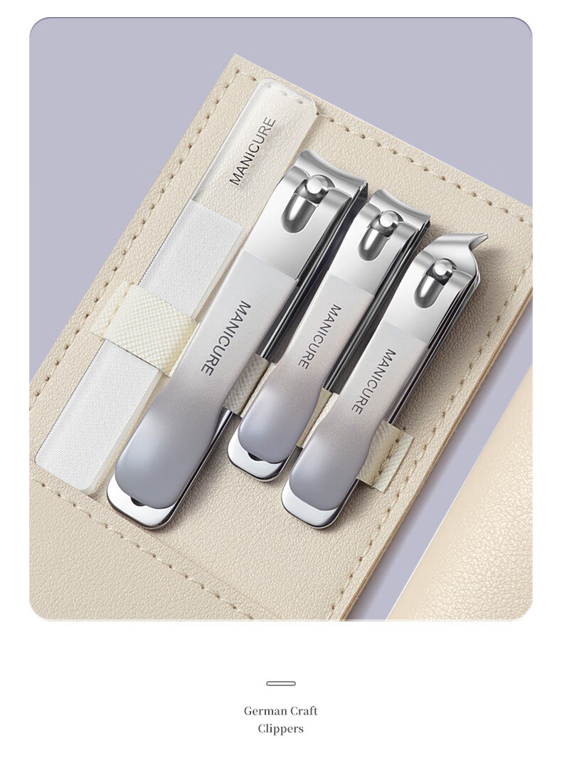 指甲刀指甲钳套装大号家用成人指甲剪防飞溅修甲专用高档美甲套装 便携四件套/渐变紫