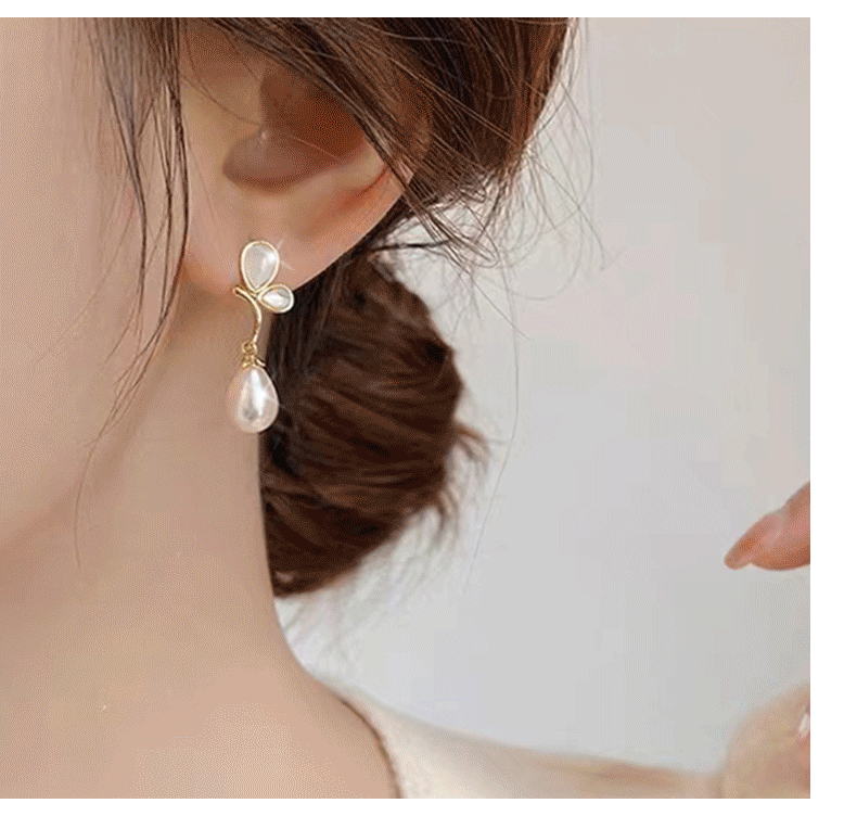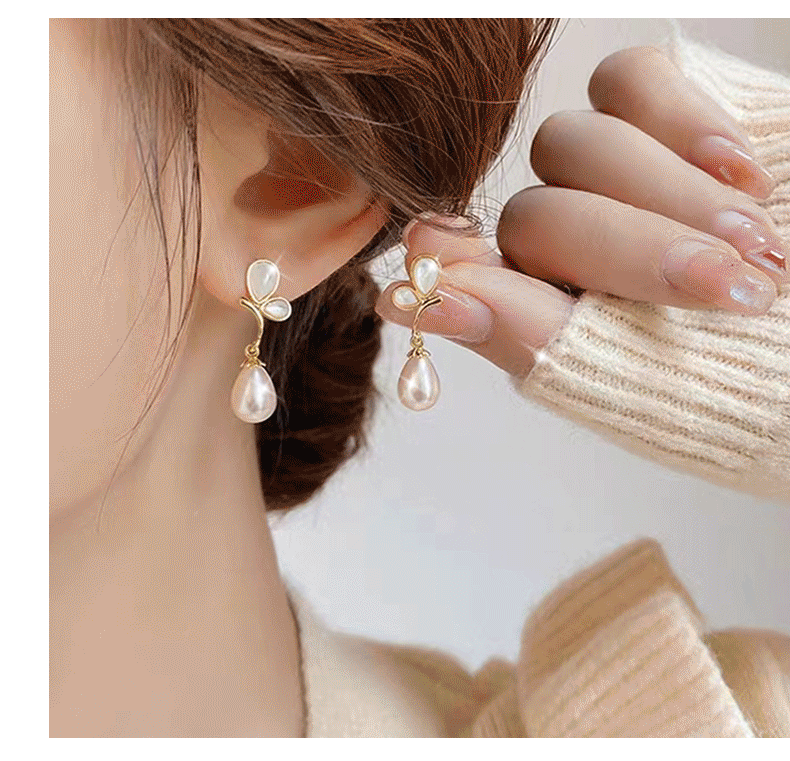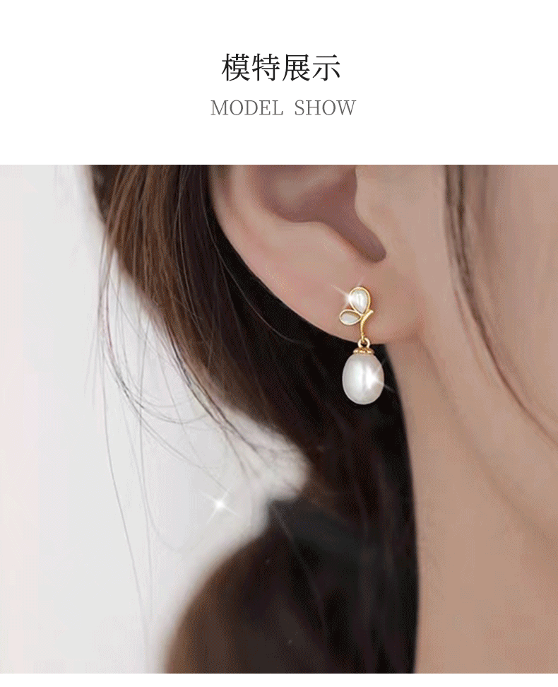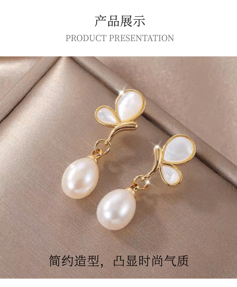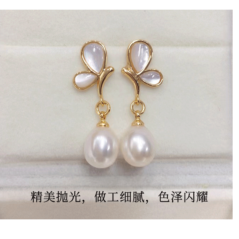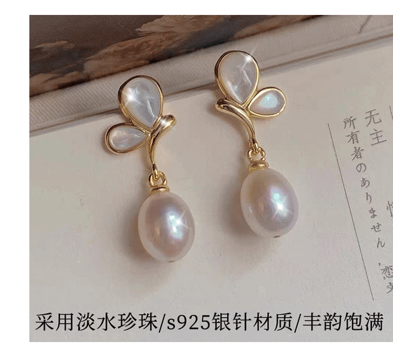 VENUS ADELINE生日礼物蝴蝶耳环女银针淡水珍珠耳饰气质甜美贝母耳钉轻奢耳坠 金色送女友老婆妈妈圣诞生日礼物