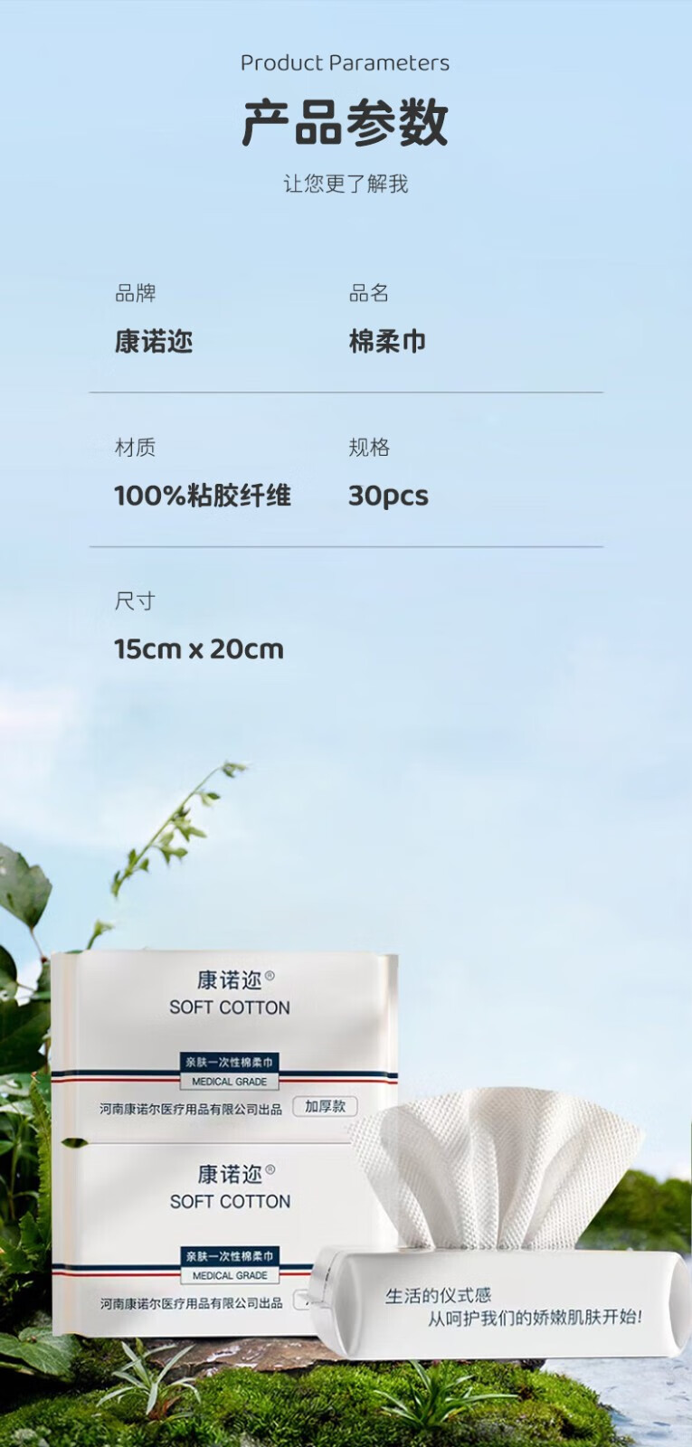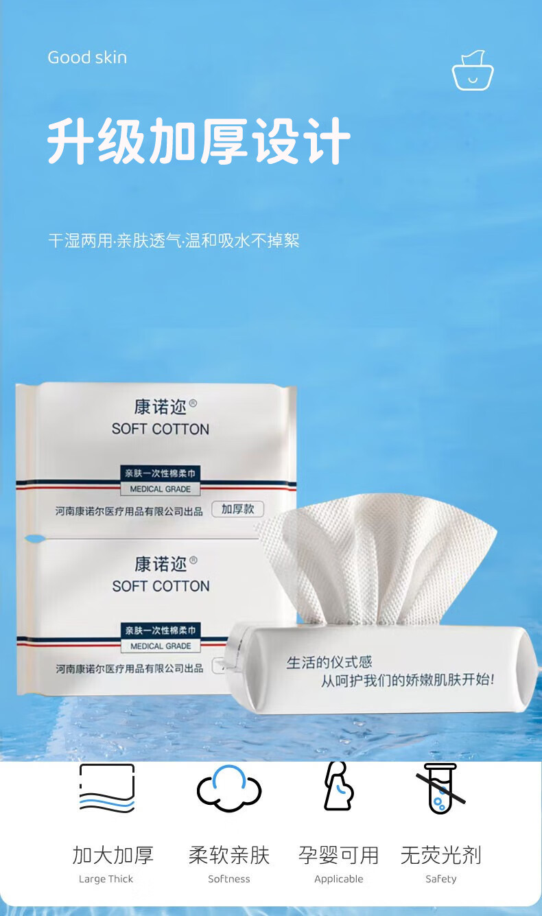 康诺迩一次性洗脸巾便携差旅洁面巾纯植物纤维加厚亲肤棉柔巾30抽 【85克/㎡特厚】30抽*5包装