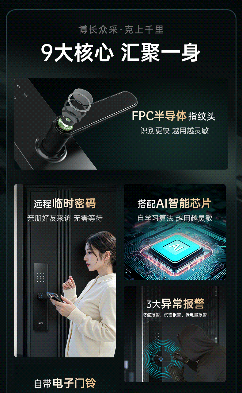 BECK智能门锁家用指纹锁入户密码锁防盗智能电子锁上门安装C级锁芯V10