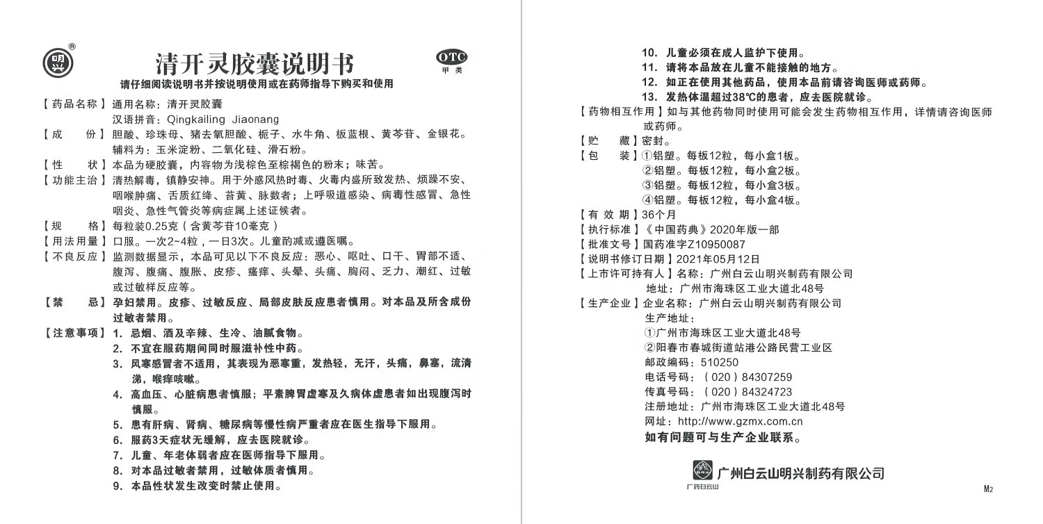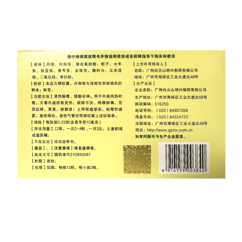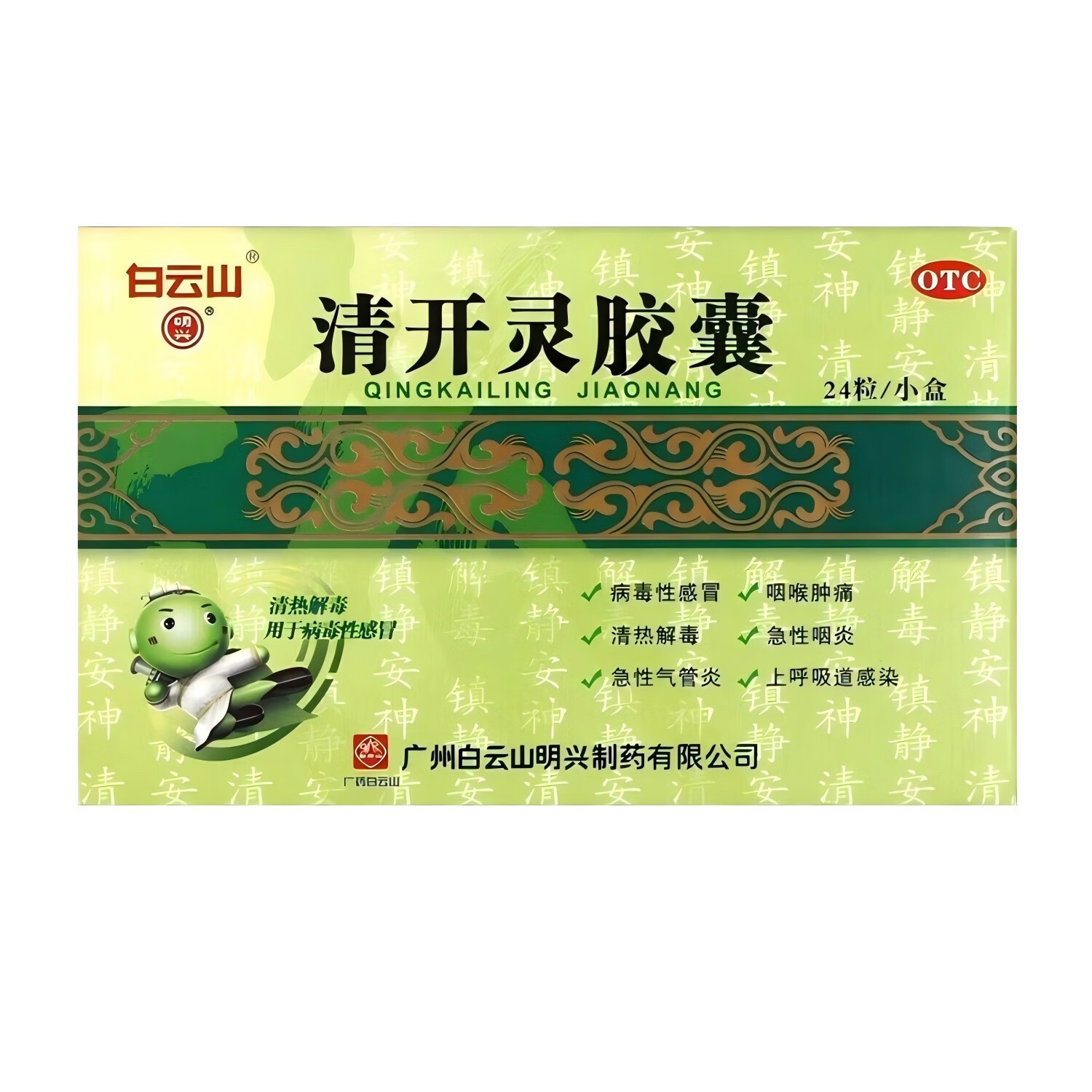 白云山 明兴 清开灵胶囊24粒 抗病毒用药 流感药 清热解毒去火 咽喉肿痛 急性咽炎 感冒咳嗽