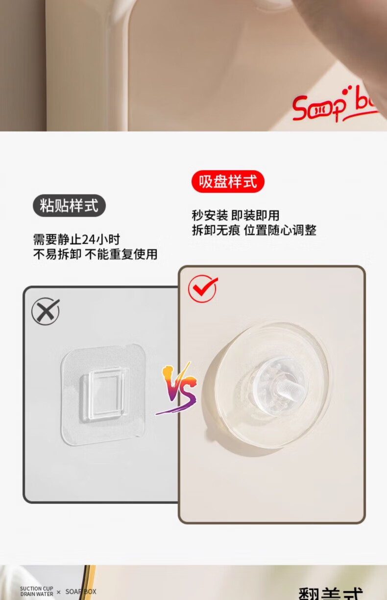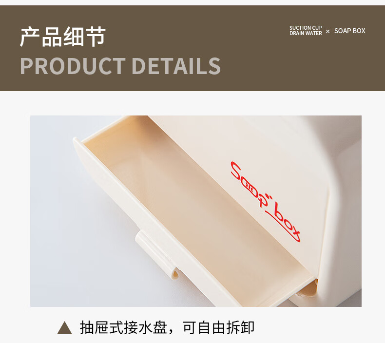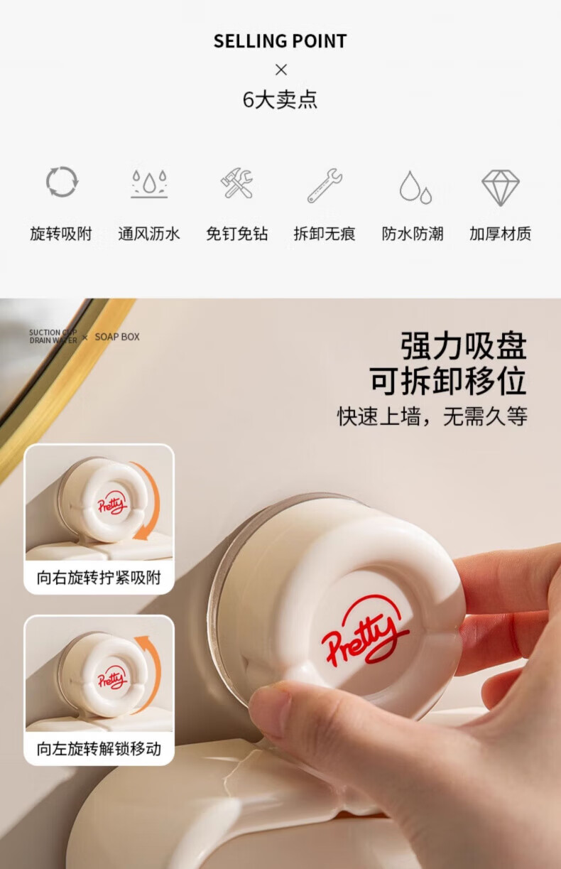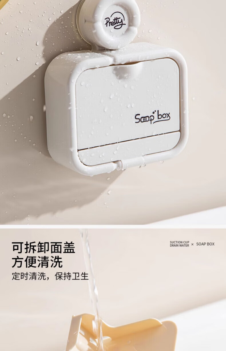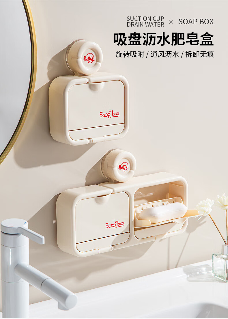 AILUKI日本高端吸盘翻盖沥水肥皂盒壁挂式免打孔置物架沥水盒家用香皂盒 典雅灰【双格】
