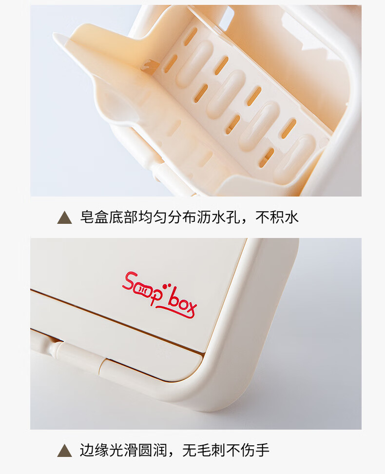 美丽雅 肥皂盒 卫生间双层沥水香皂盒 浴室置物架收纳皂碟白色1只