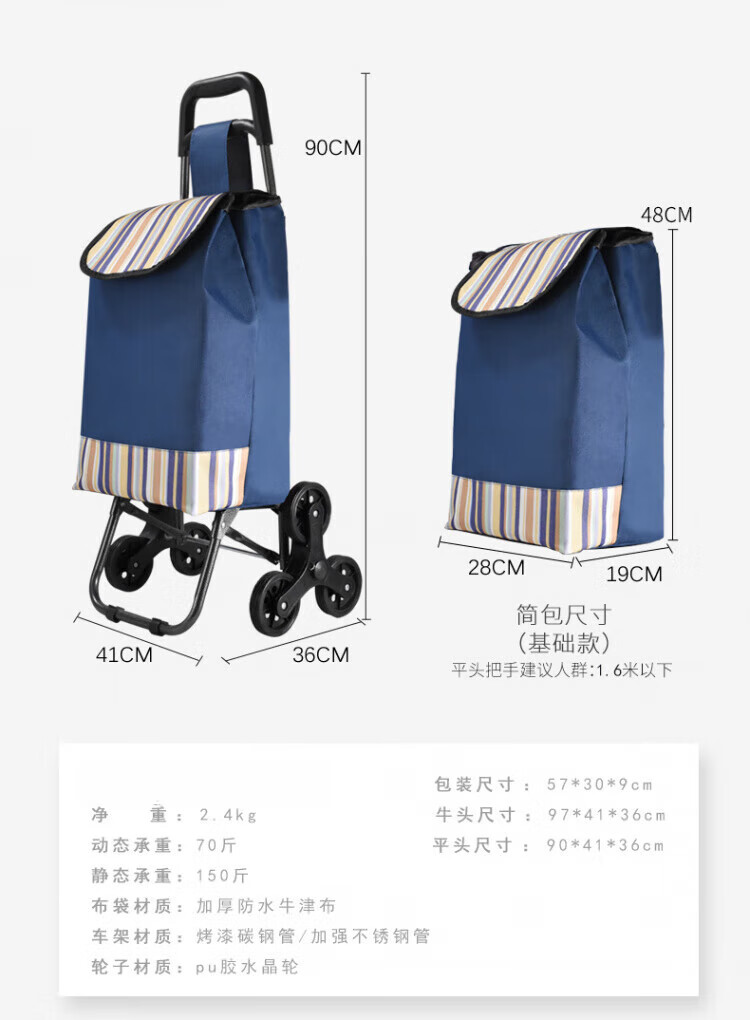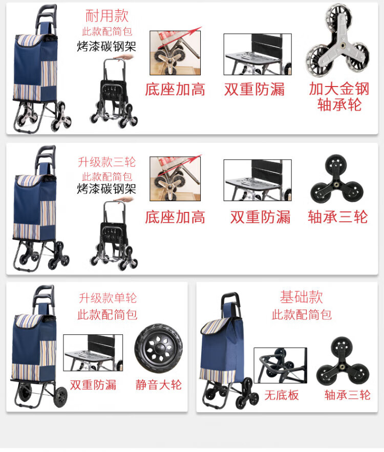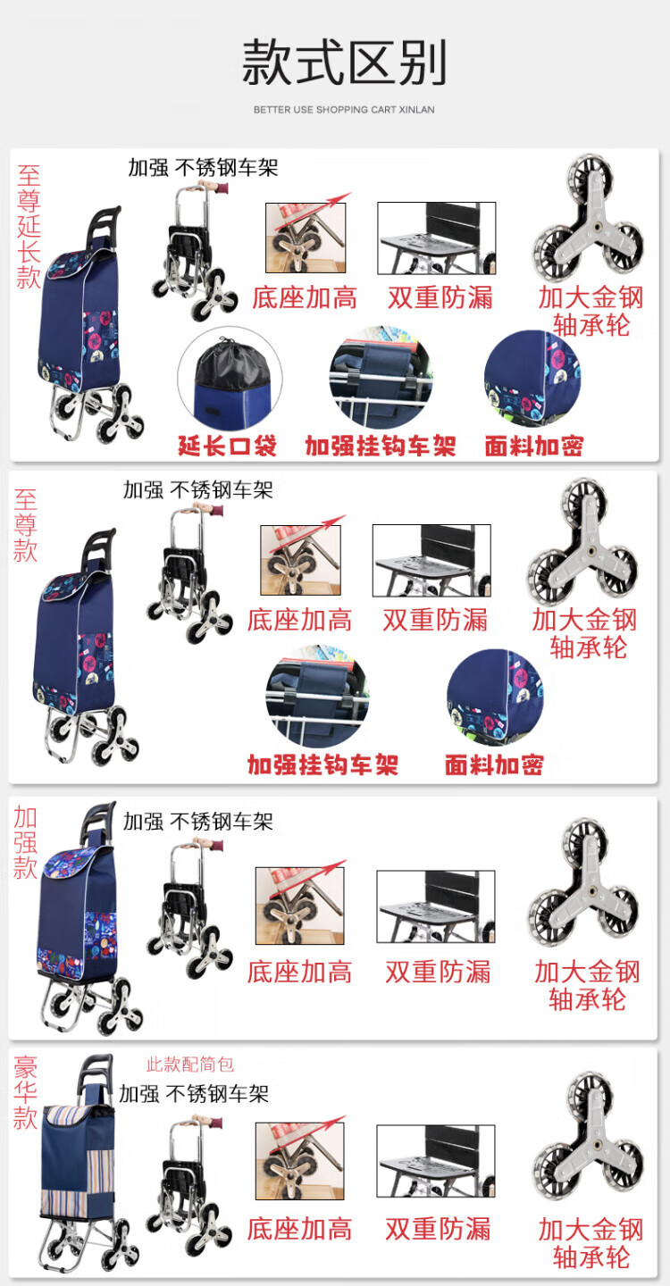 WCZ德国高端轻便购物车爬楼买菜小拉车家用新款可折叠手拉杆拖车老年 加强挂钩不锈钢车架+加大金钢轮口红玫瑰