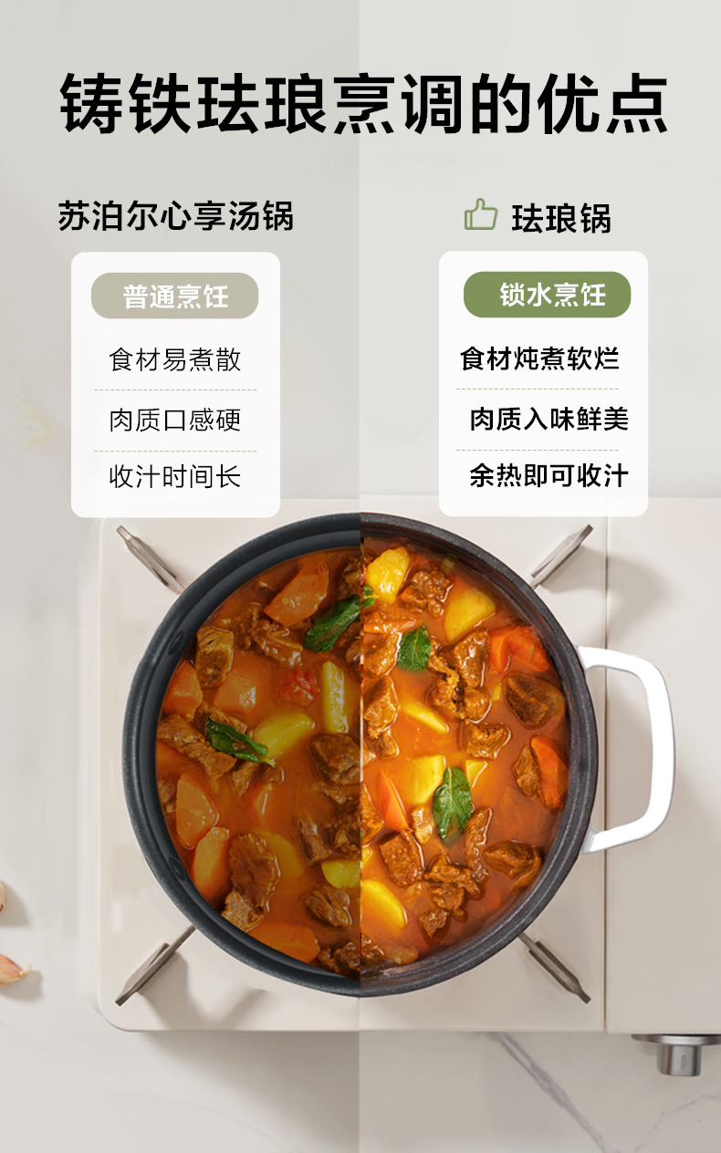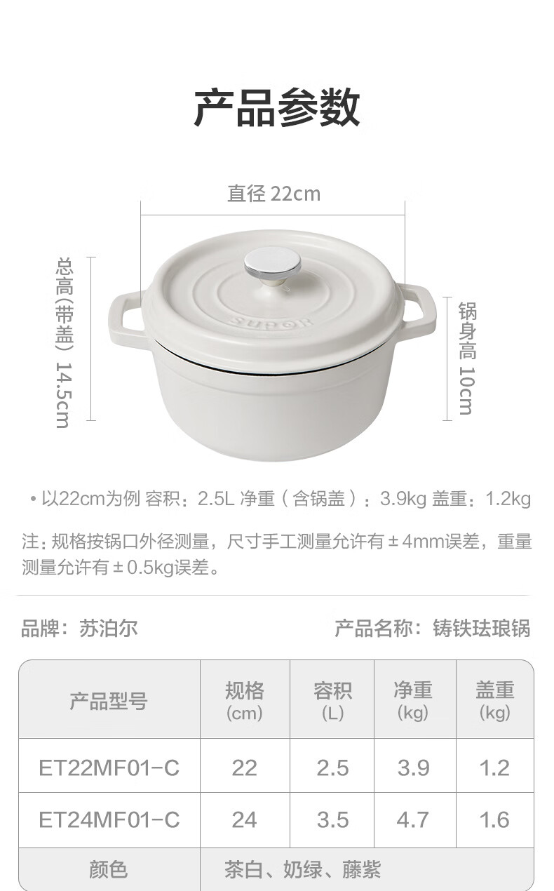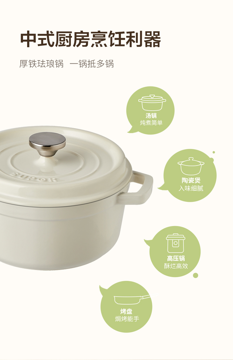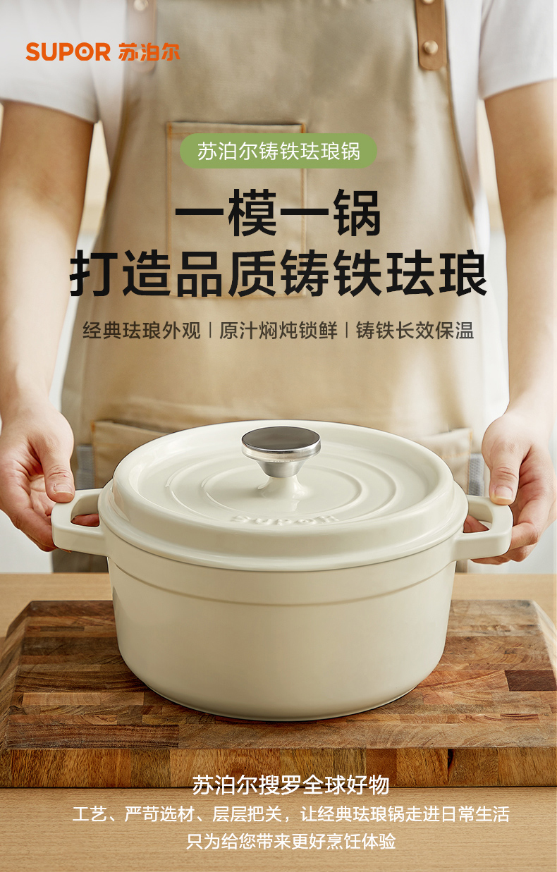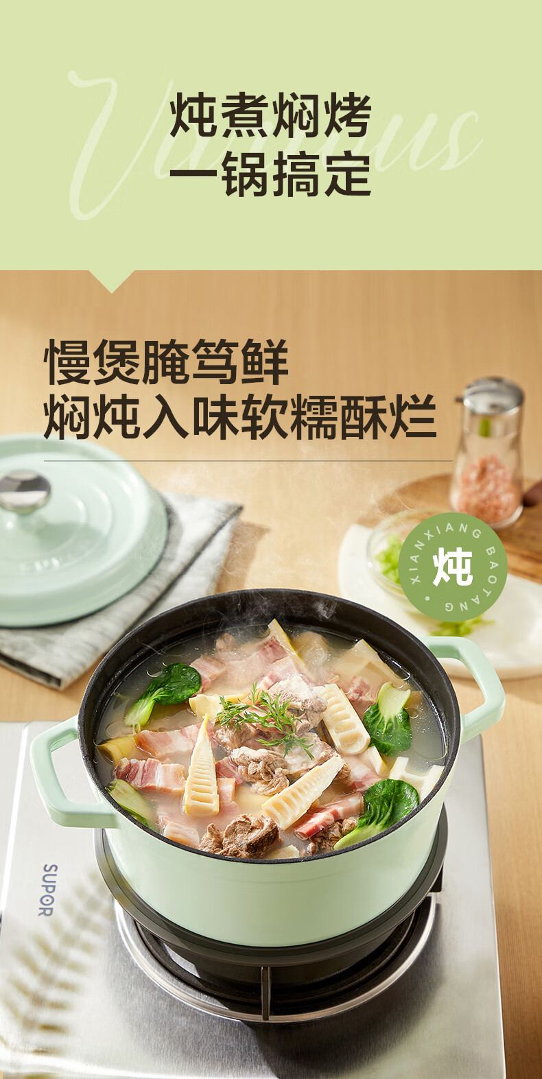 苏泊尔(SUPOR)珐琅锅铸铁锅汤锅炖锅火锅平底辅食锅电磁炉燃气通用 24厘米红色 24cm 3.8L