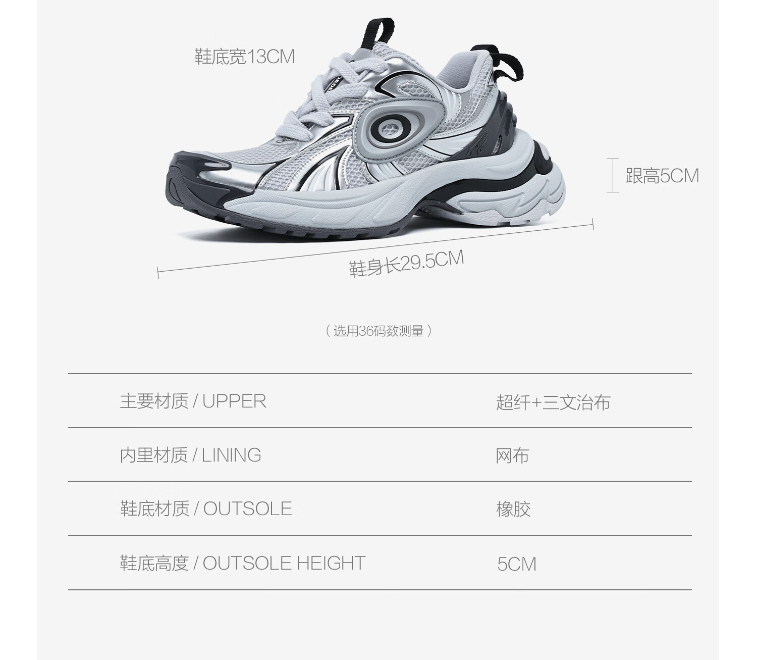 OLD ORDER-涡轮GT-金属银液态银色复古休闲百搭老爹增高鞋男女 白银色 37