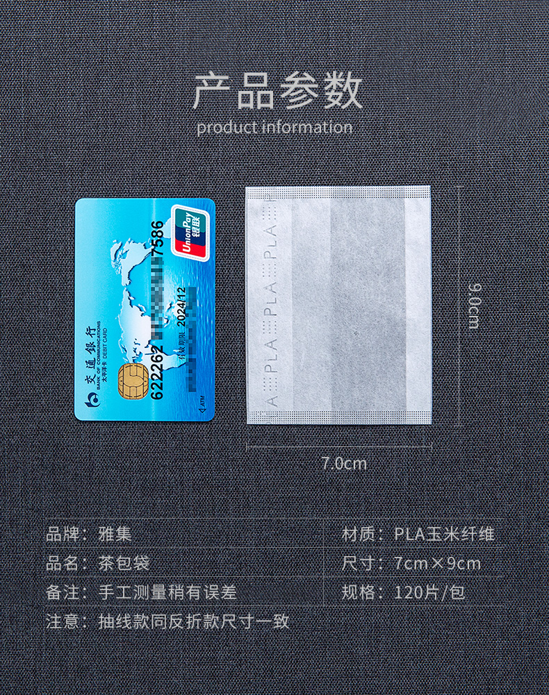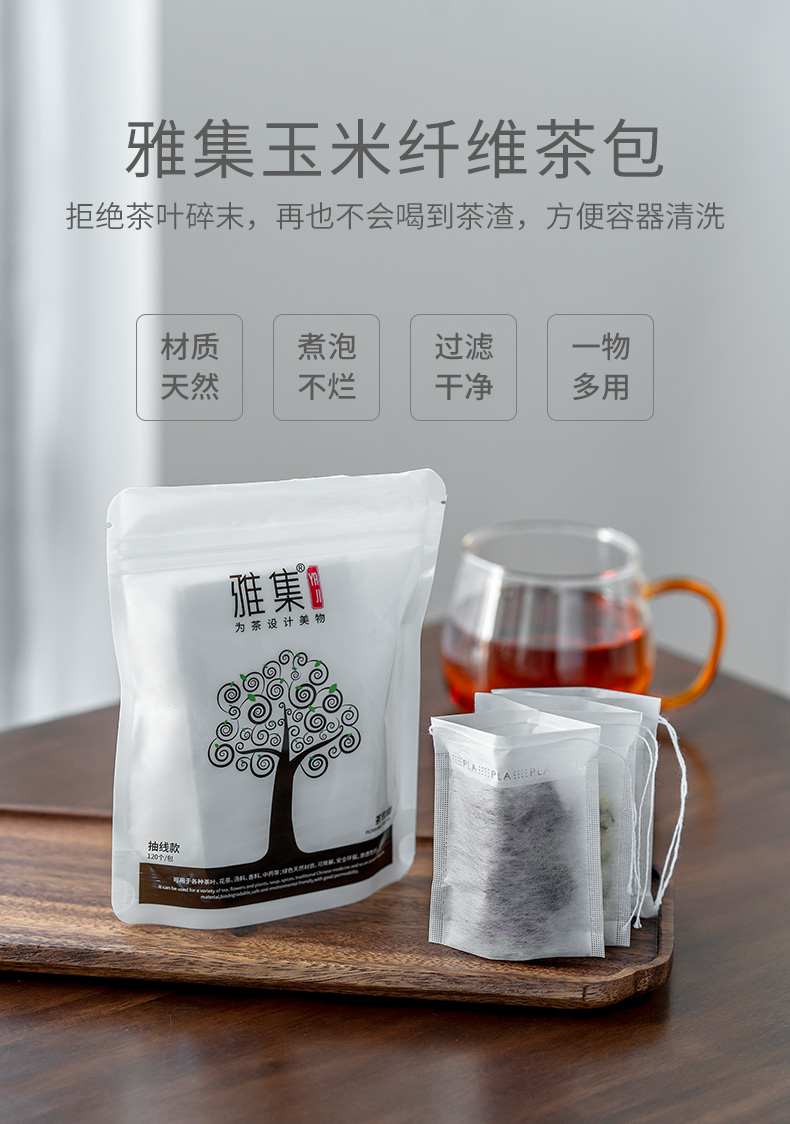 雅集茶包袋一次性玉米纤维过滤茶包抽绳花茶茶叶包120片
