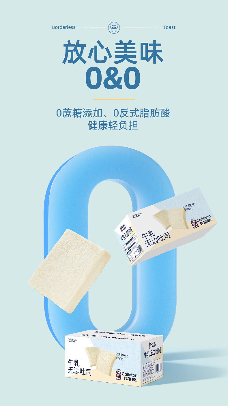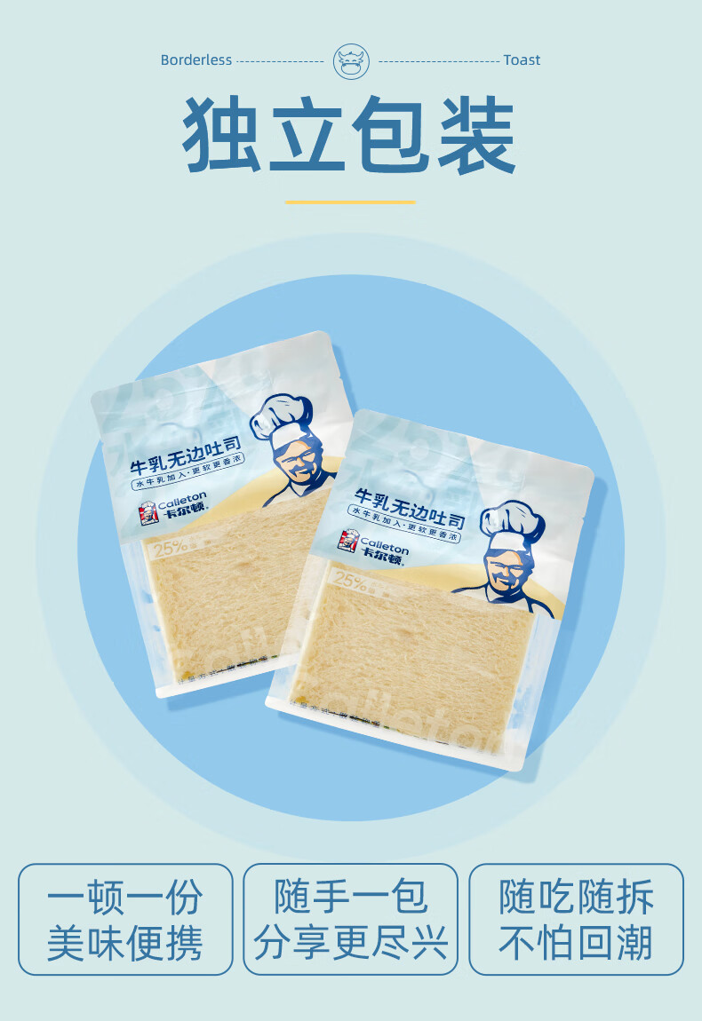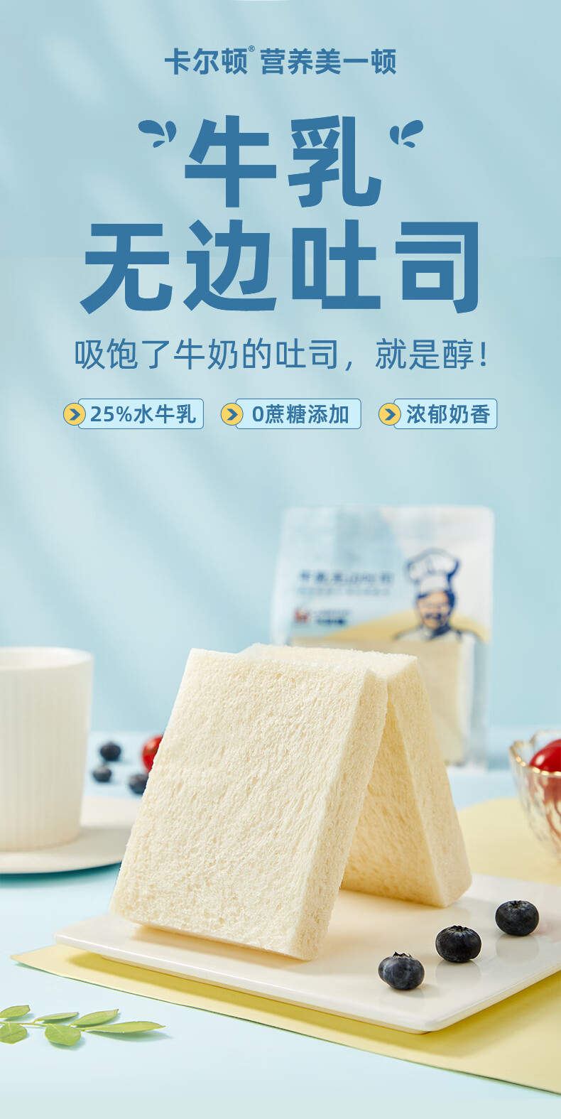 卡尔顿(Calleton)牛乳无边吐司面包早餐三明治全麦粗粮手撕饱腹休闲代餐 牛乳无边吐司420g*1箱