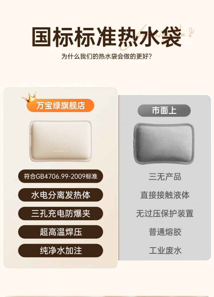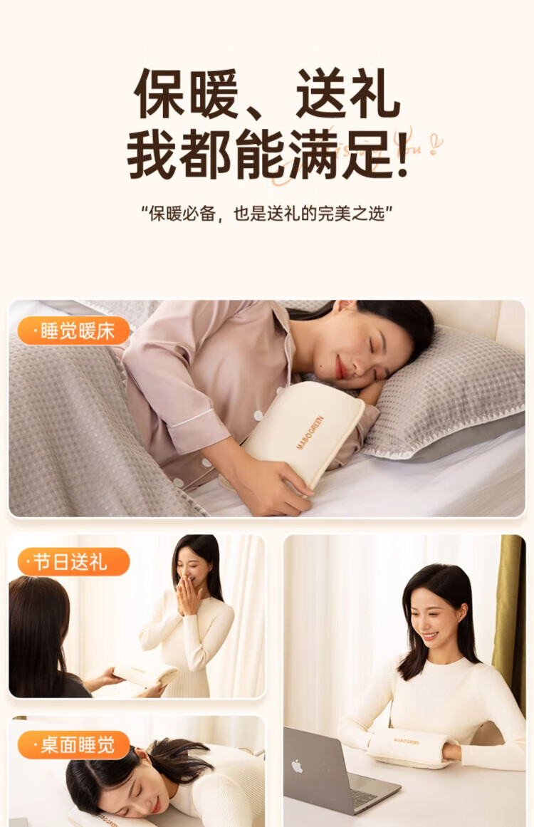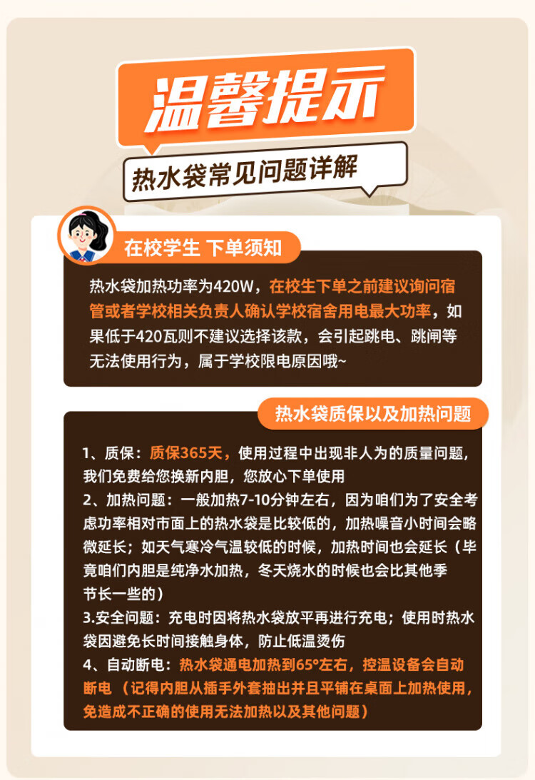 鸿辰热水袋充电暖手宝暖宝宝防爆夹热敷暖腹女生姨妈神器圣诞节暖水袋 棕色小熊【套袋+丝光热水袋】 生日礼物智能防爆夹可拆洗