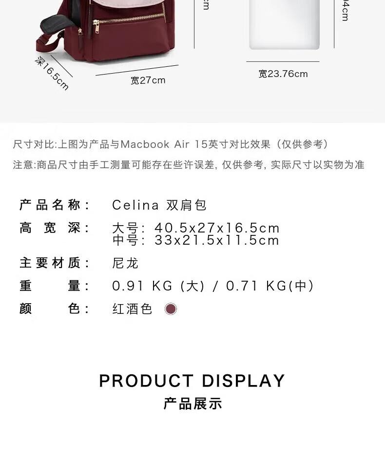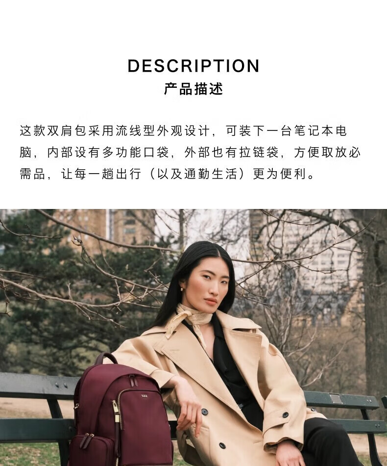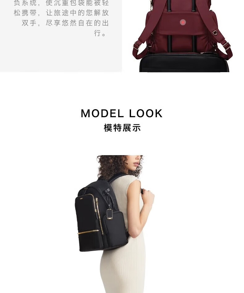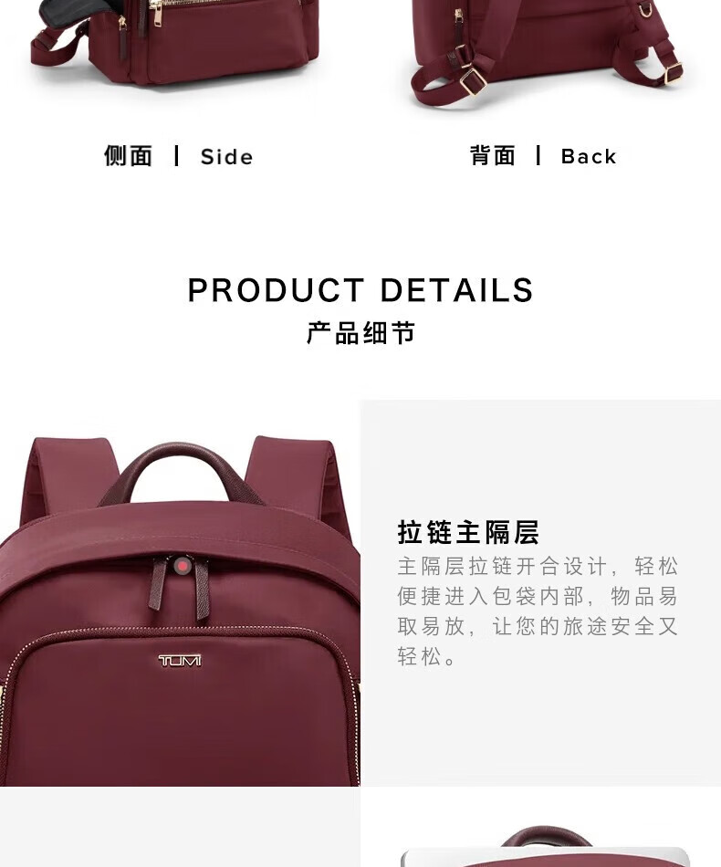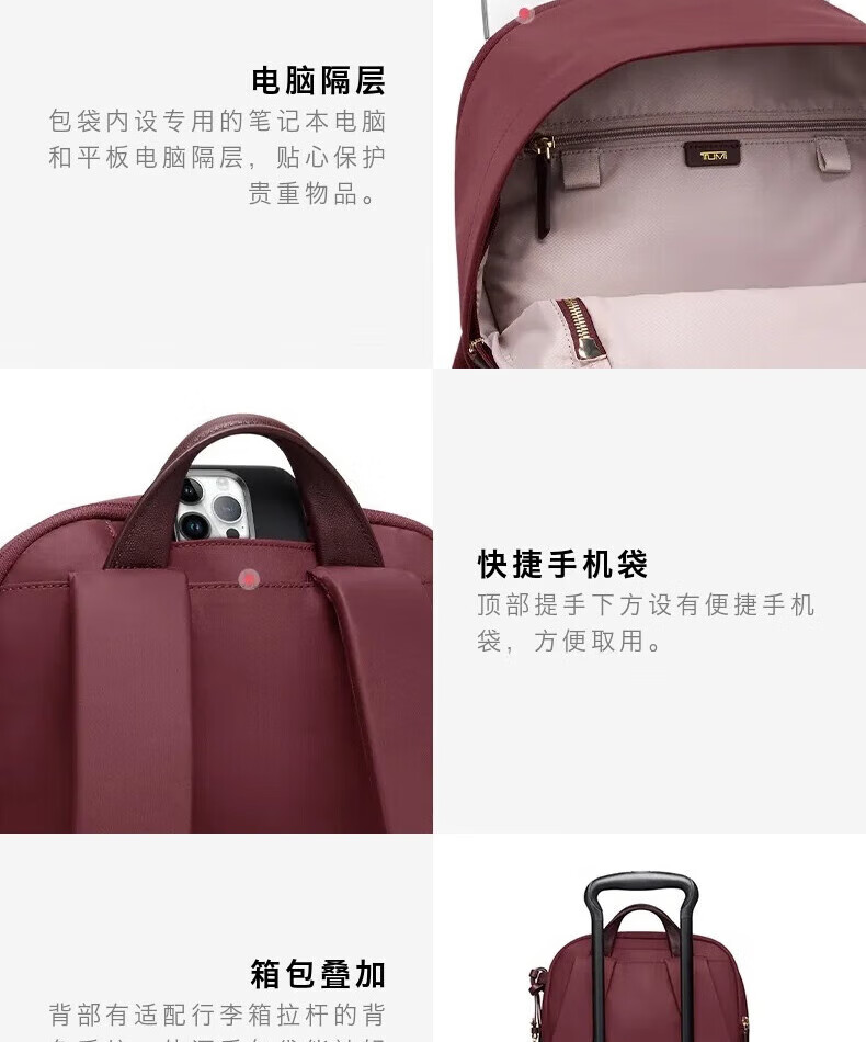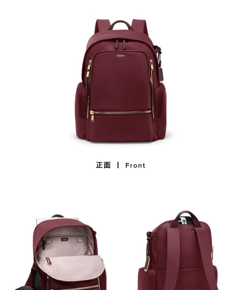 途明(TUMI)VOYAGEUR 女士双肩包轻质尼龙时尚休闲电脑包 红酒色