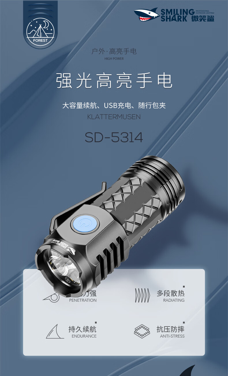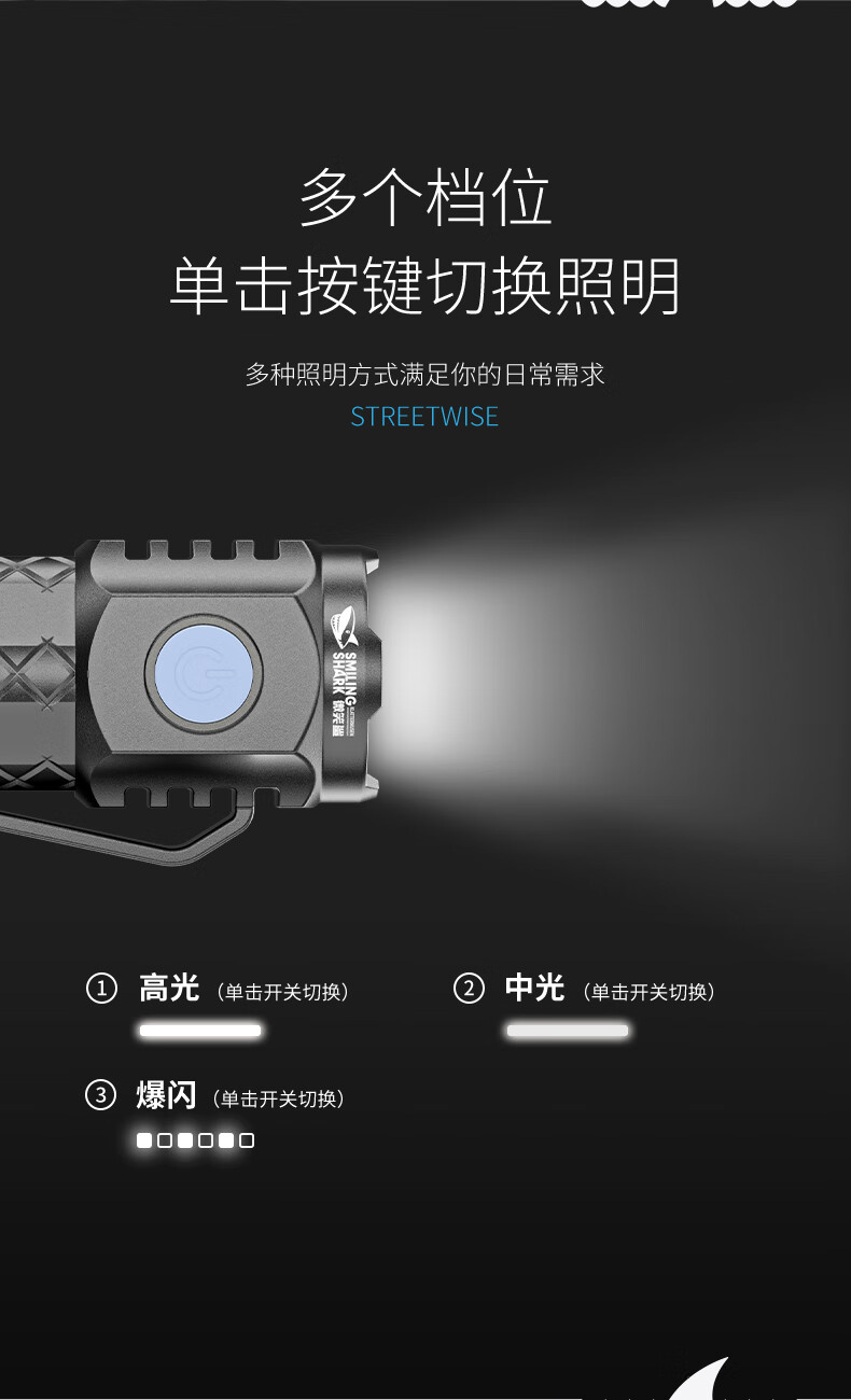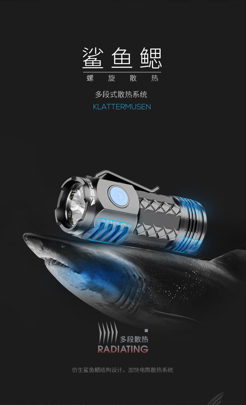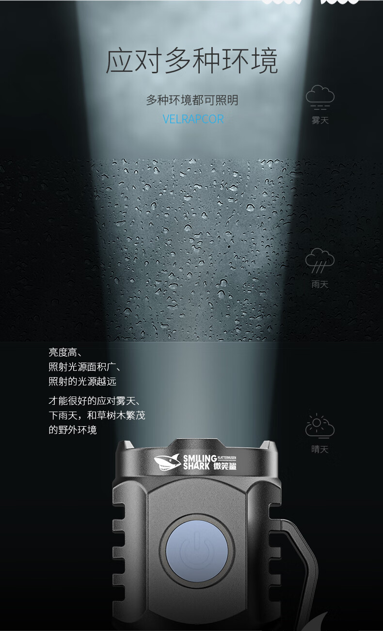 微笑鲨迷你手电筒强光超亮多功能小型便携式随身应急户外家用远射长续航 爆亮三核【便携笔夹】家用应急