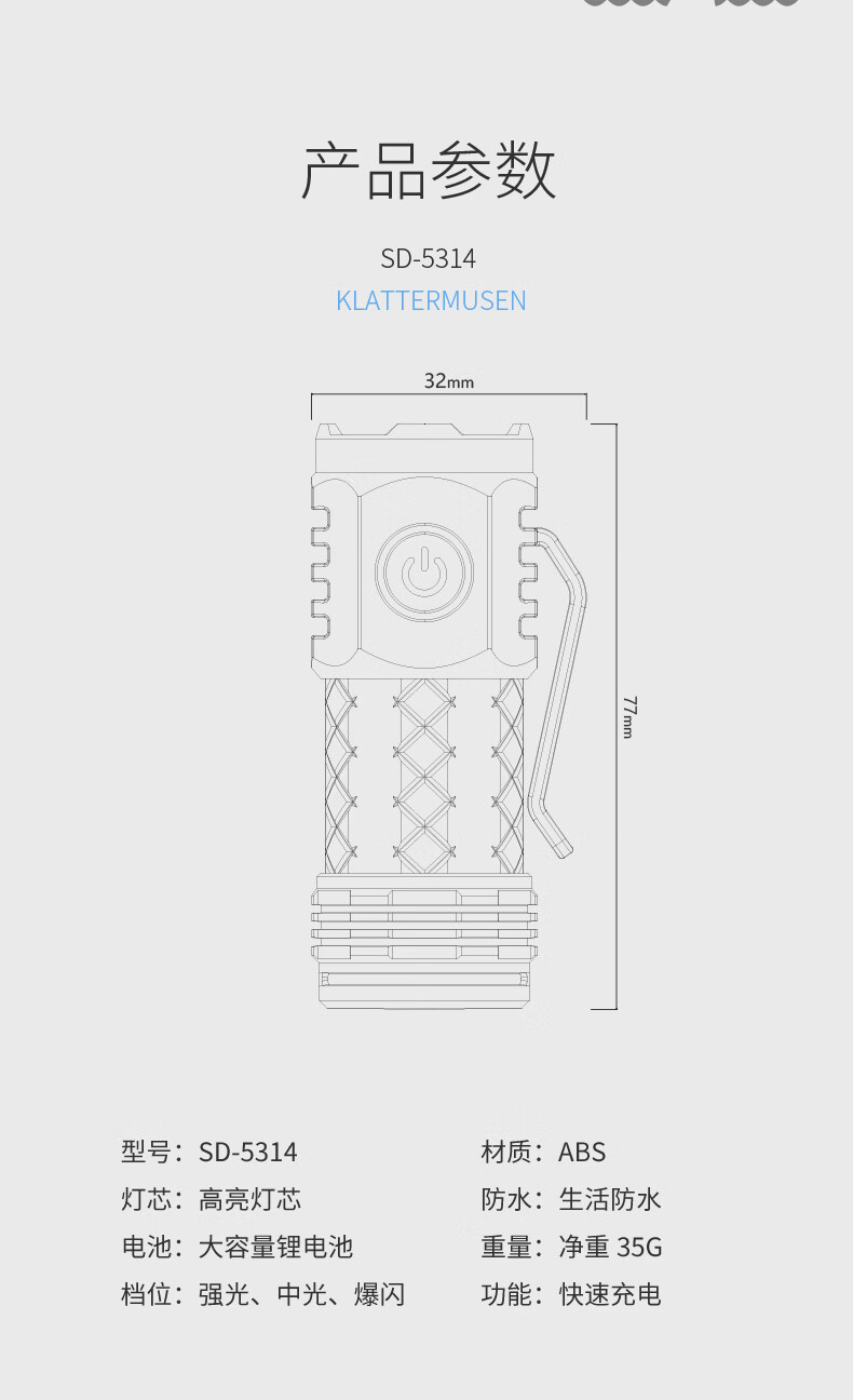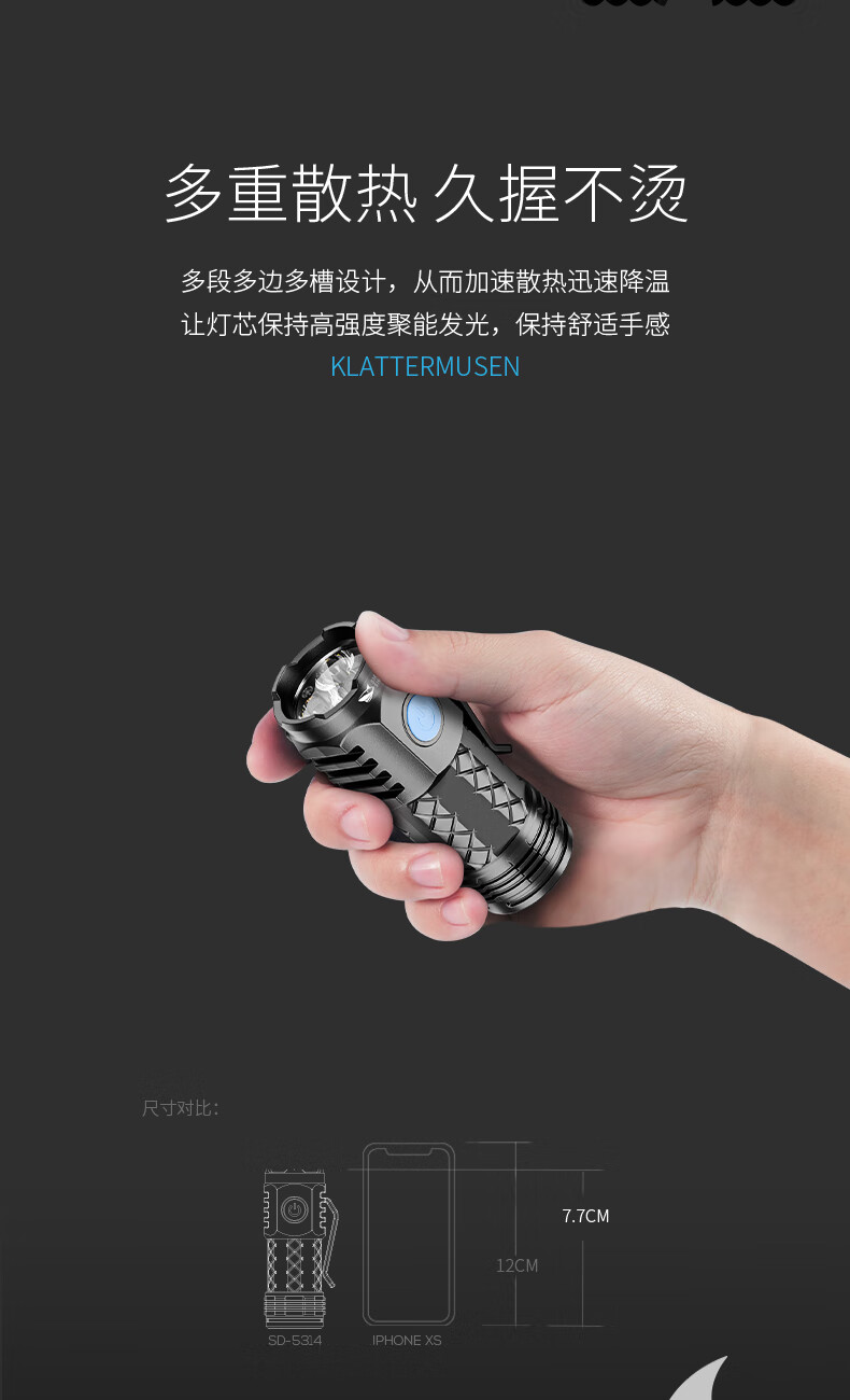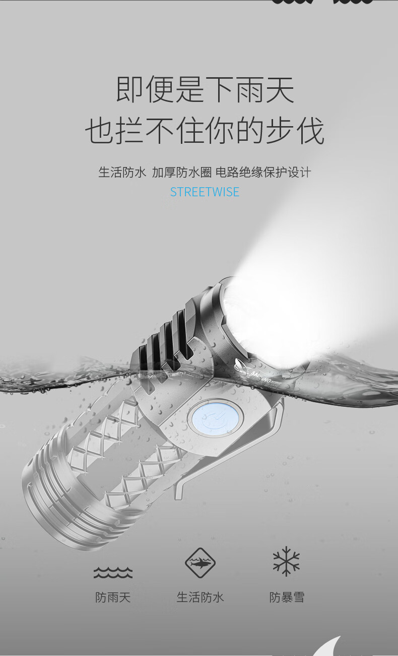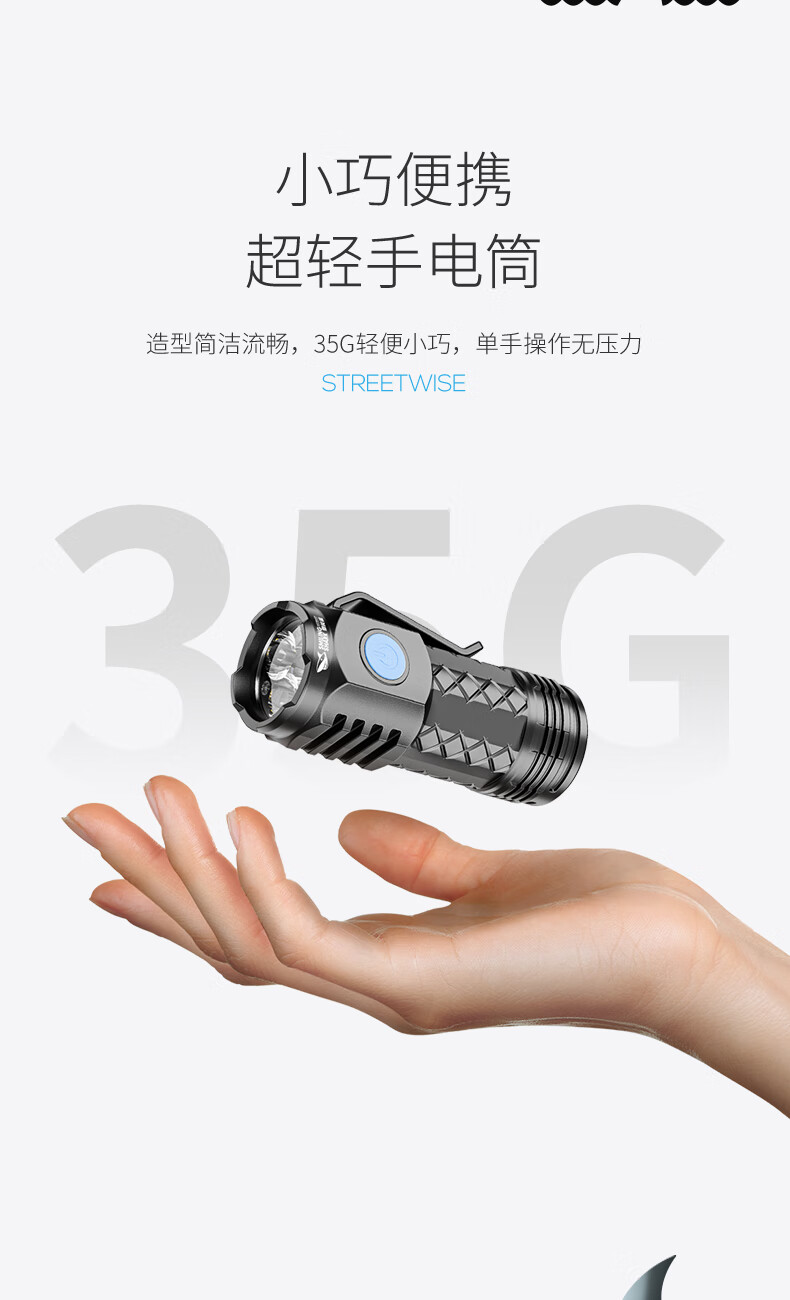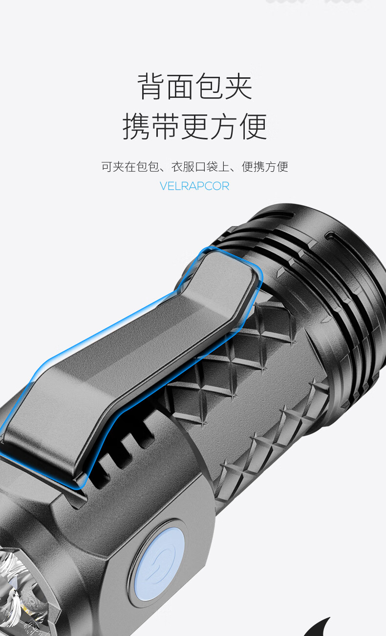 微笑鲨迷你手电筒强光超亮多功能小型便携式随身应急户外家用远射长续航 爆亮三核【便携笔夹】家用应急