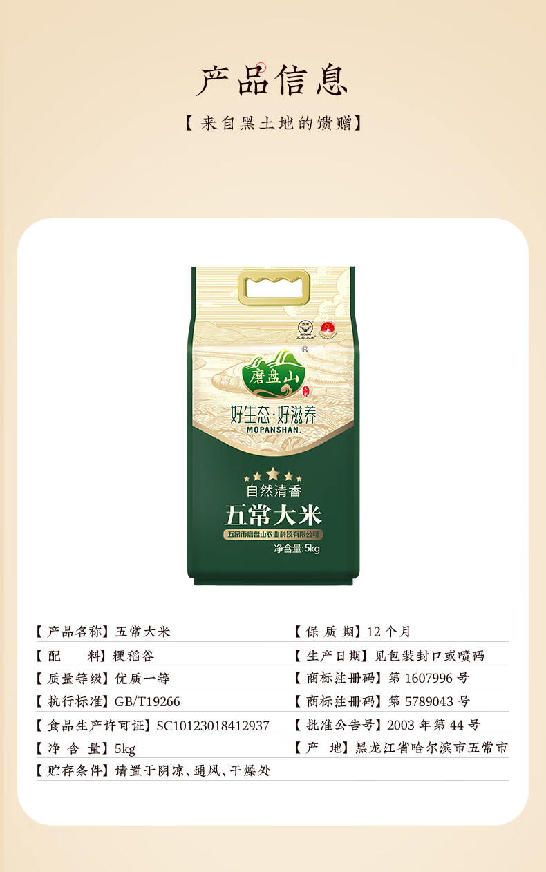 磨盘山2025当季新米 五常大米10斤 GB/T 19266五常香米