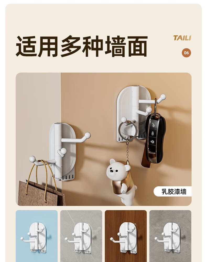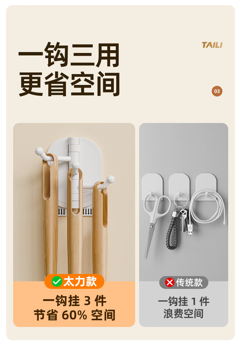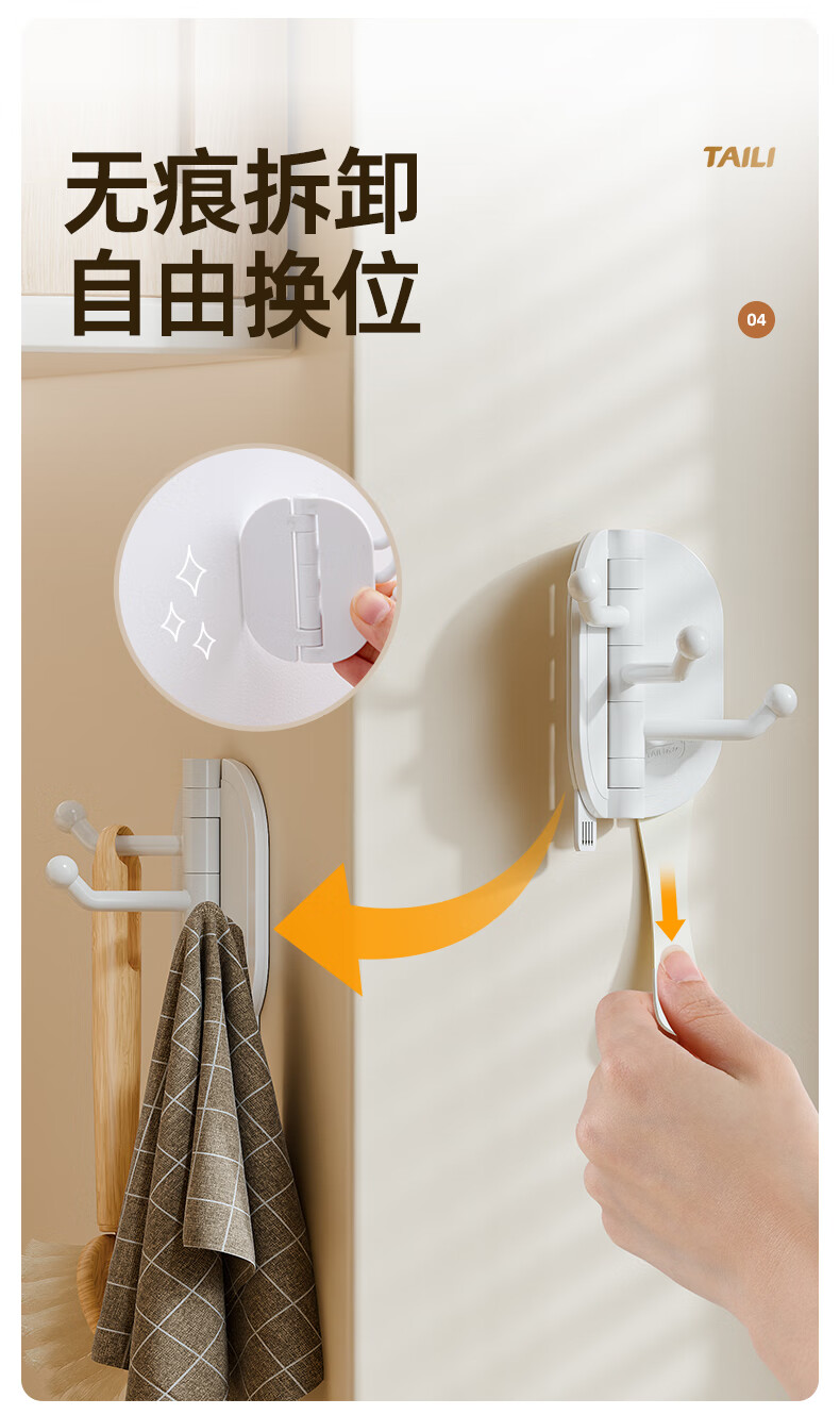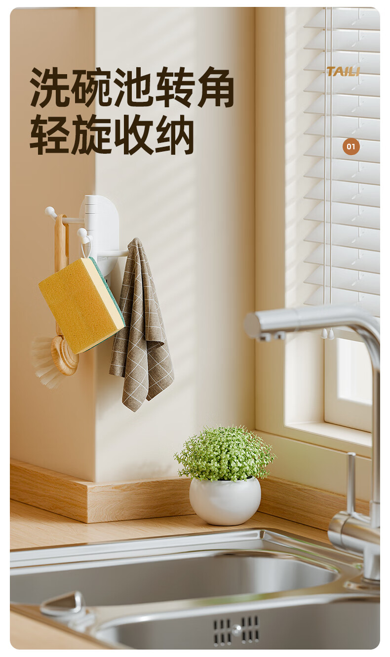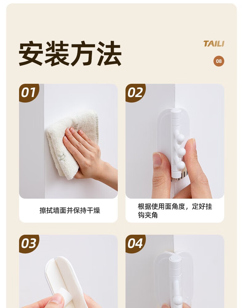 太力可旋转挂钩厨具厨房无痕粘钩免打孔免钉胶上墙角挂钩多功能置物架 【无痕收纳】可旋转挂钩2个