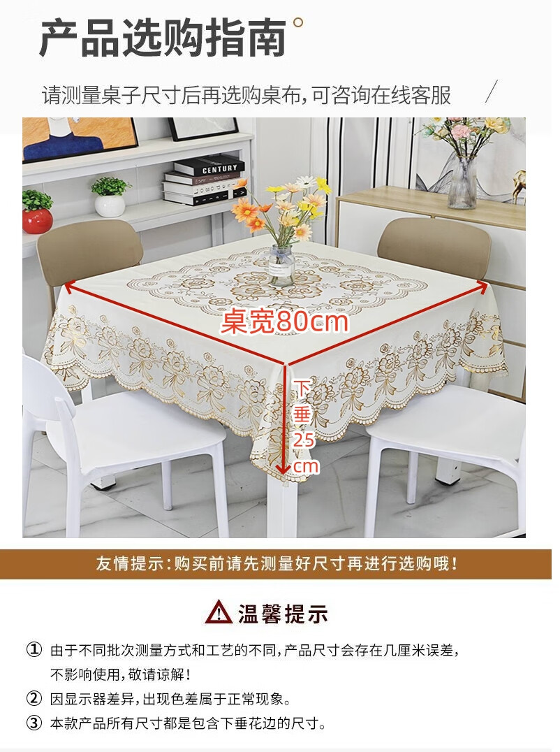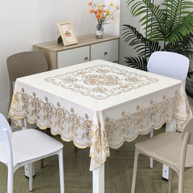 胥乐(XULE)防水防油桌布正加厚正方形正方桌布烫金印花八仙桌桌布PVC防水免 烫金印花(正方形130*130cm)