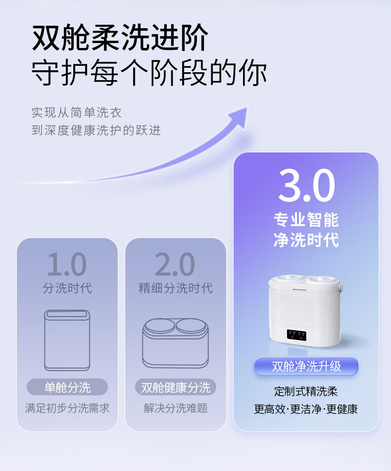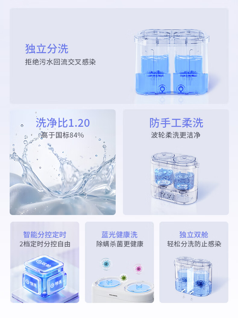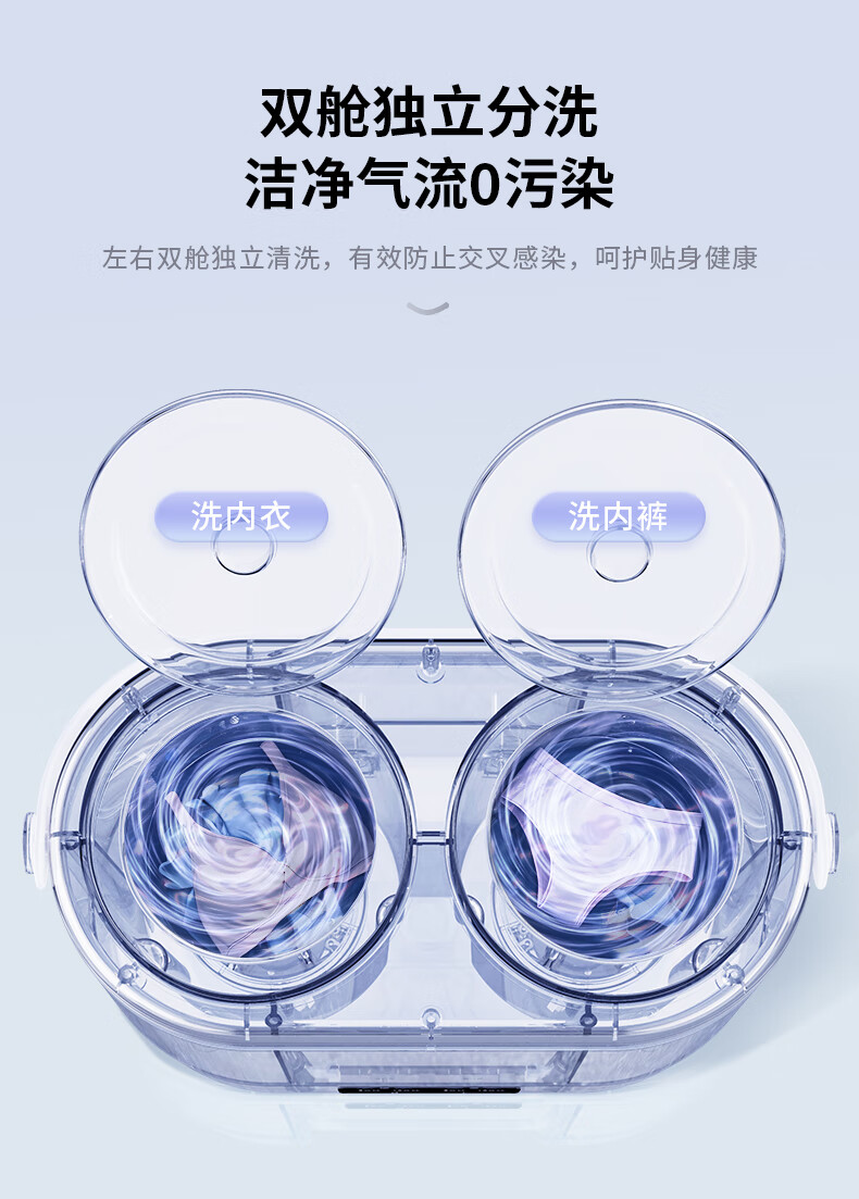 万家能双仓洗衣机内衣迷你双桶智能洗衣小型洗袜子机双舱内衣内裤专用洗衣机半自动便携懒人宿舍清洗机 标准款【高速电机+分舱同洗+银离子除菌】