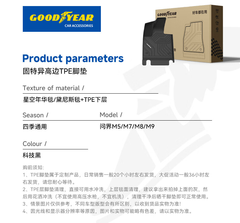 固特异(Goodyear)tpe汽车脚垫适用问界M8六座配件装饰高边TPE脚垫黛尼斯毯