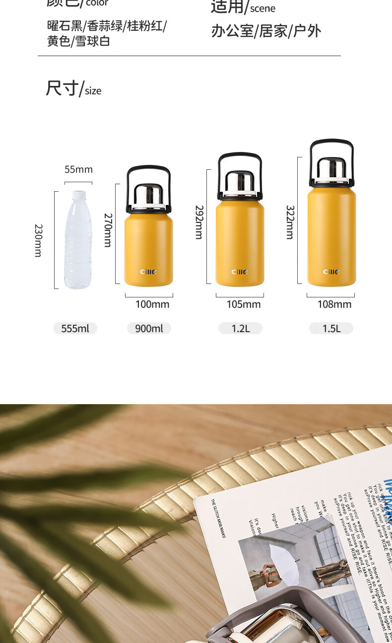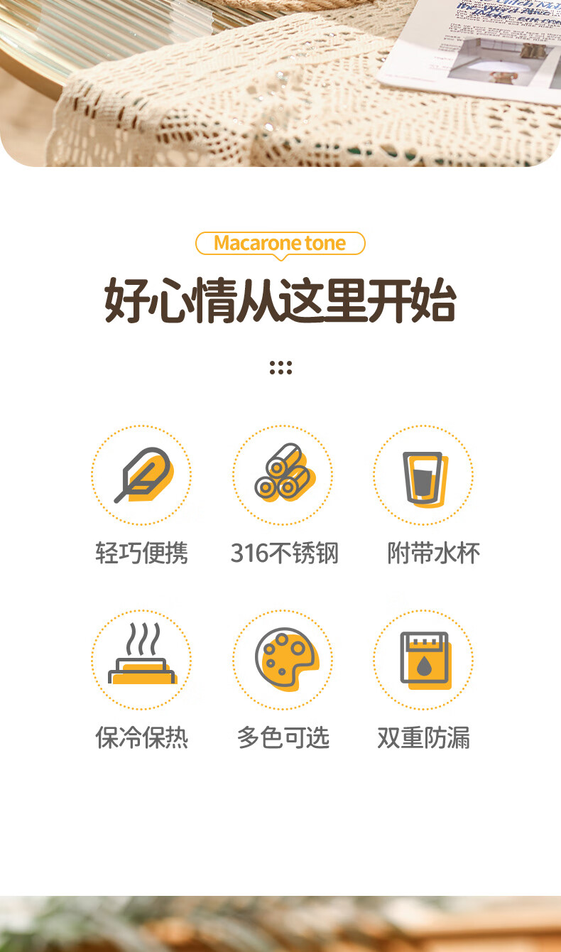 希乐(cille)保温杯保冷杯大容量户外便携高颜值316不锈钢水杯车载泡茶杯子