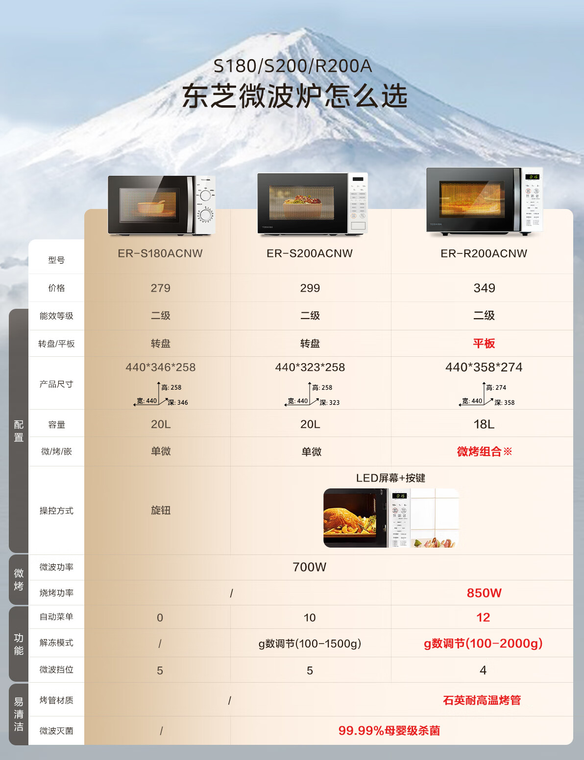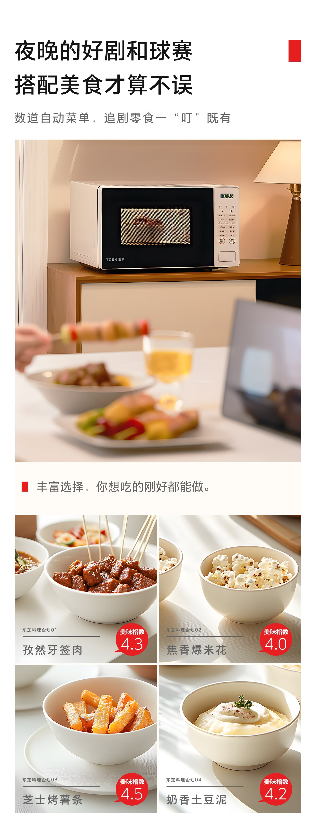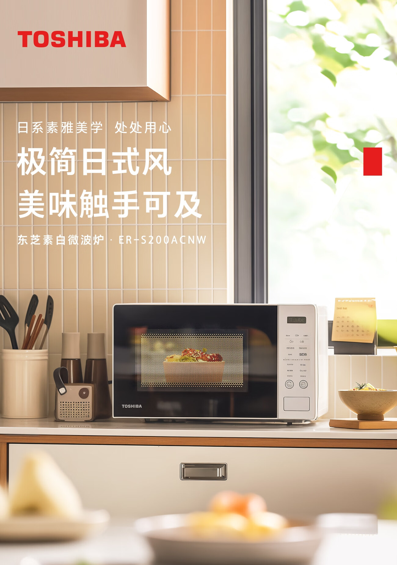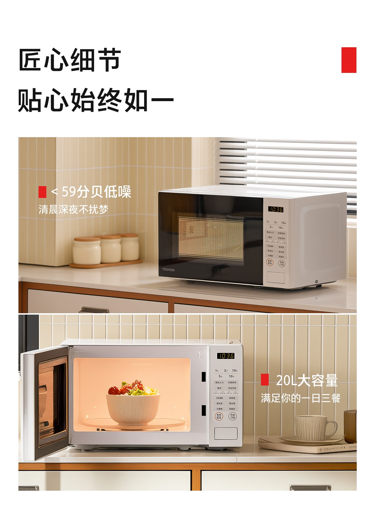 东芝(TOSHIBA)快捷微波炉家用微波炉mini小型 360°转盘式加热五档火力精准控温20L ER-S200ACNW