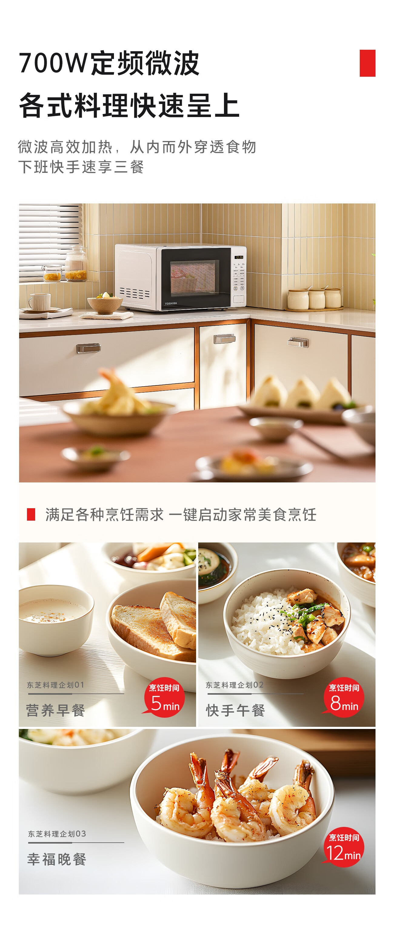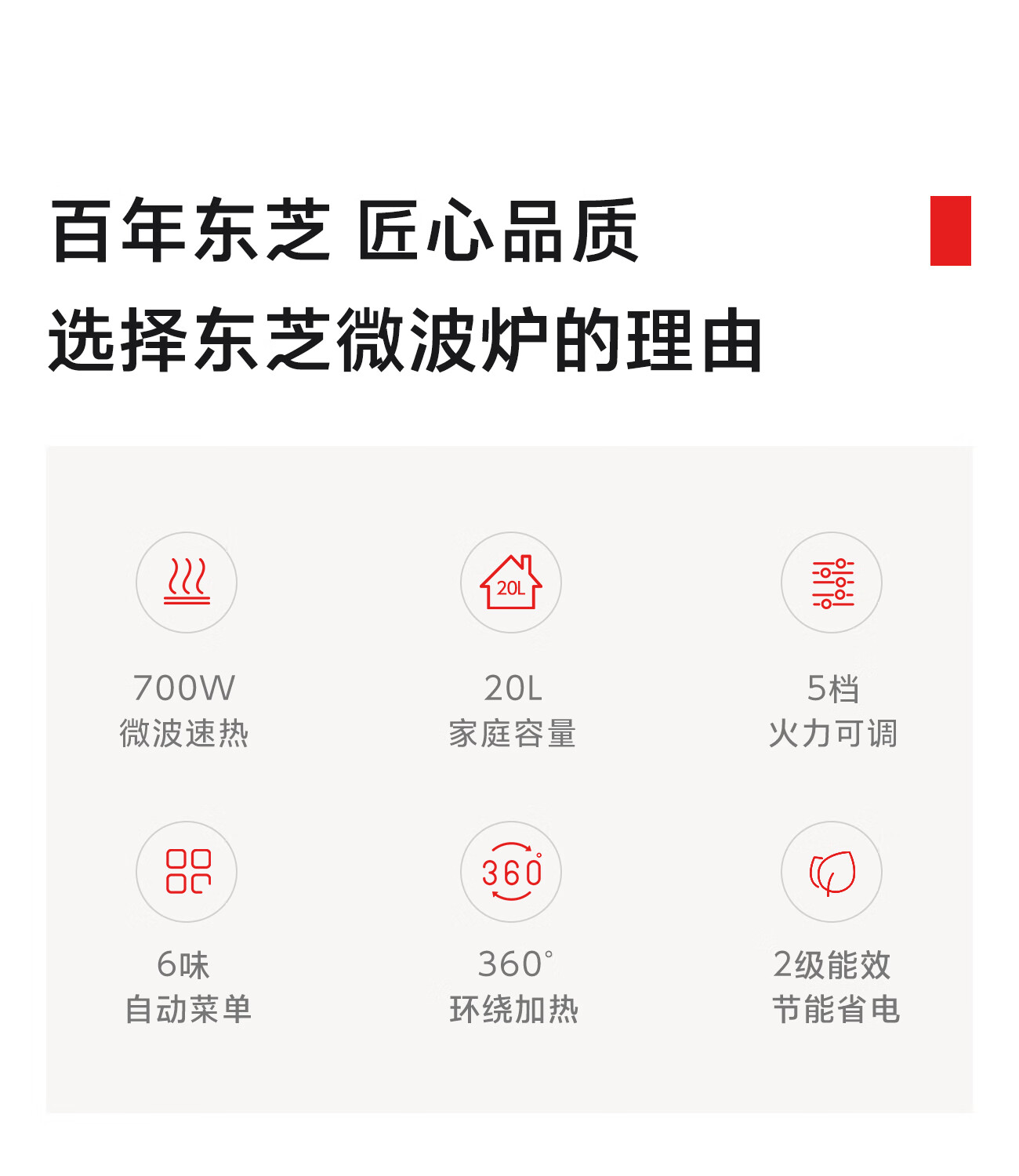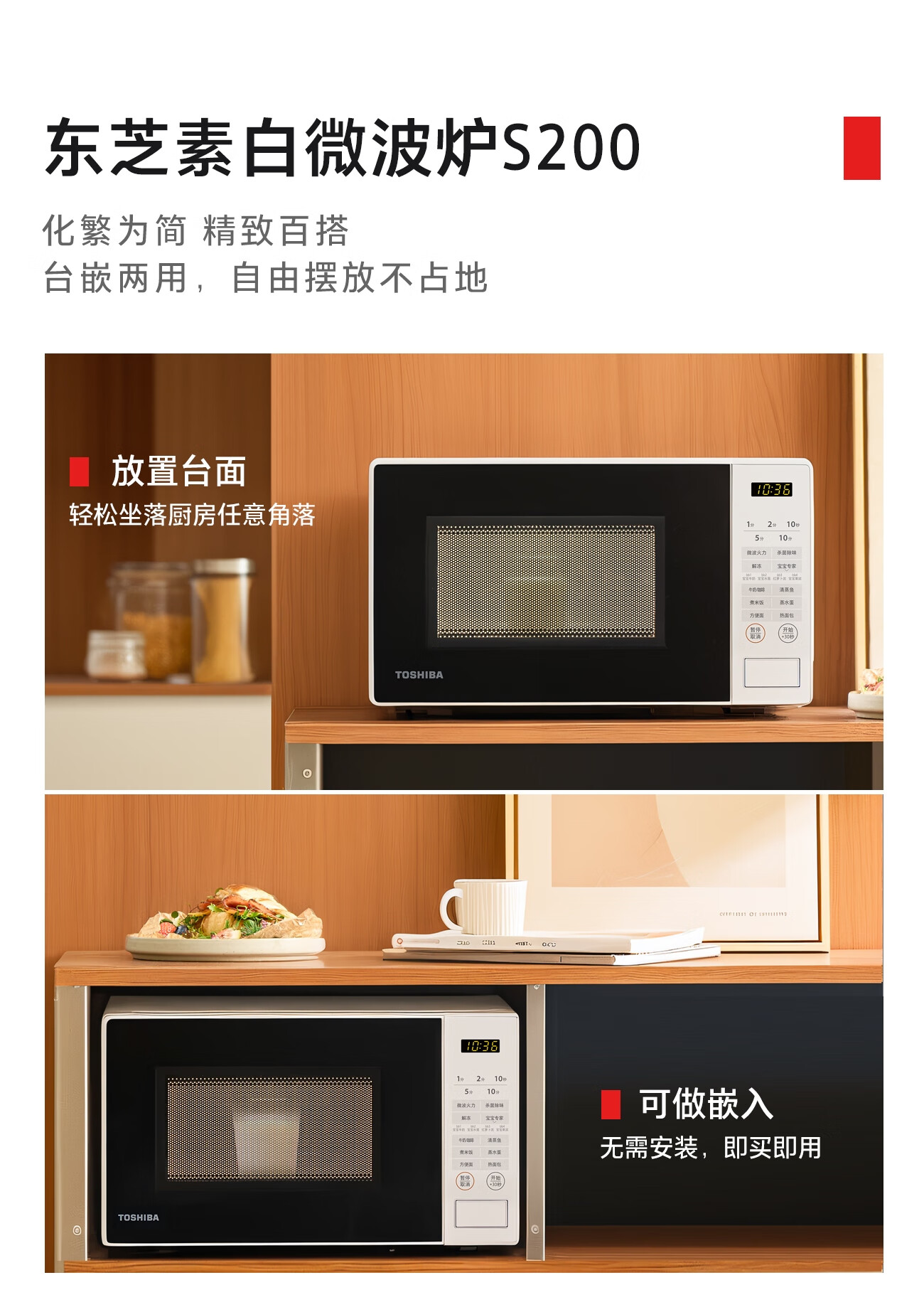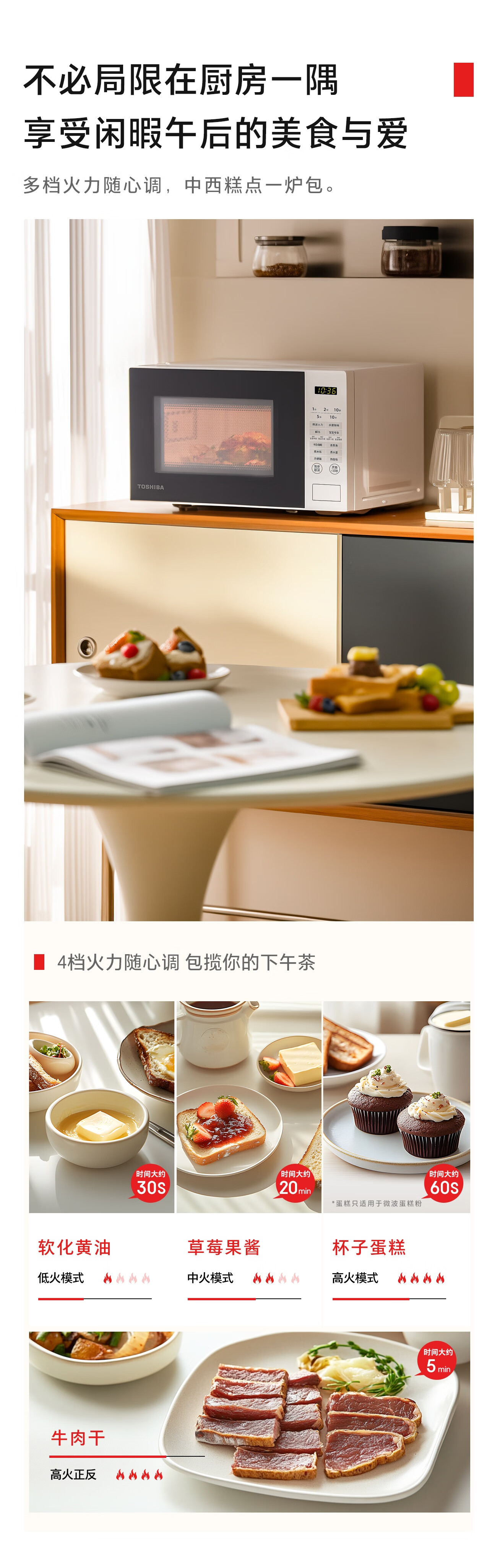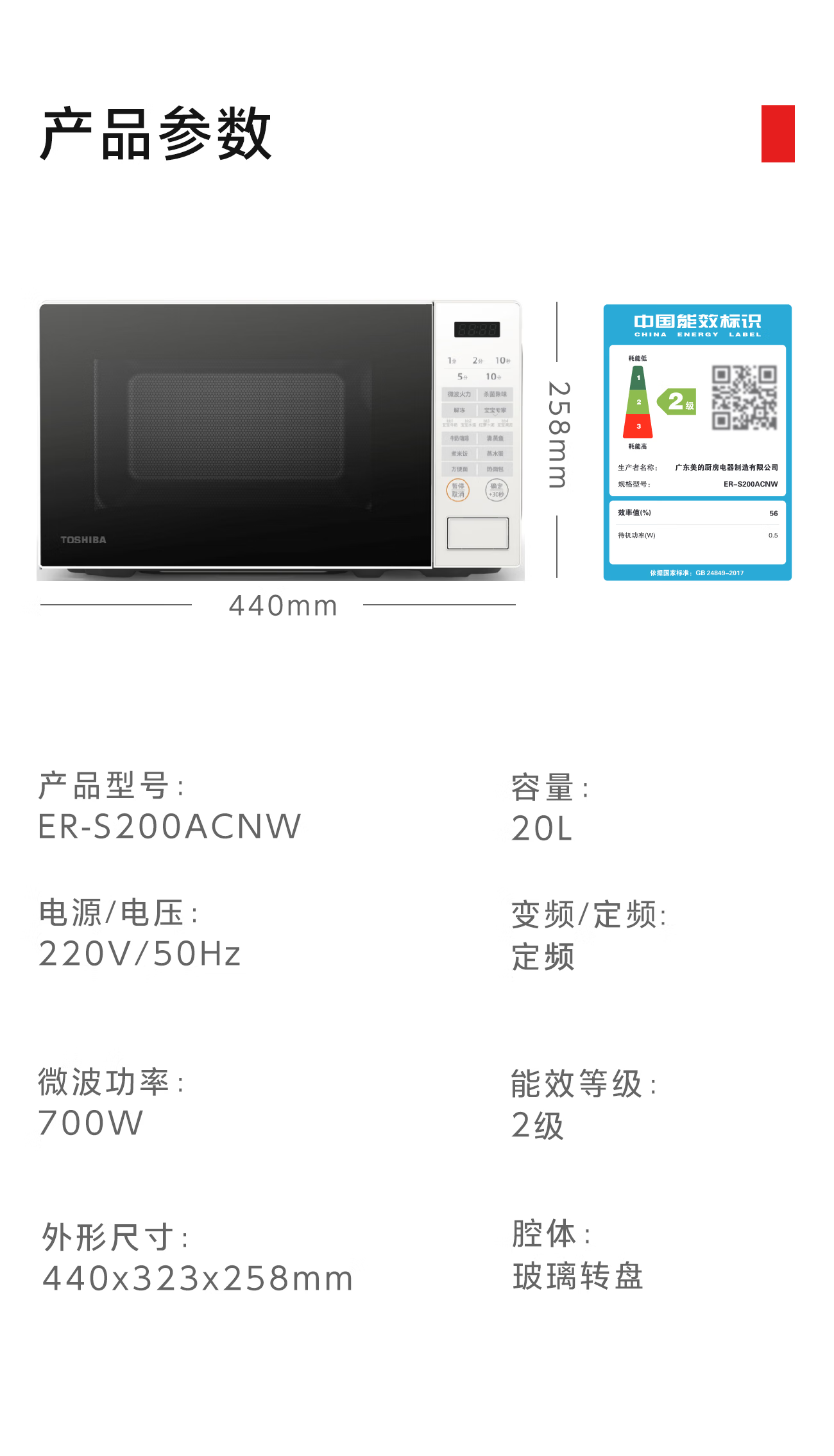 东芝(TOSHIBA)快捷微波炉家用微波炉mini小型 360°转盘式加热五档火力精准控温20L ER-S200ACNW