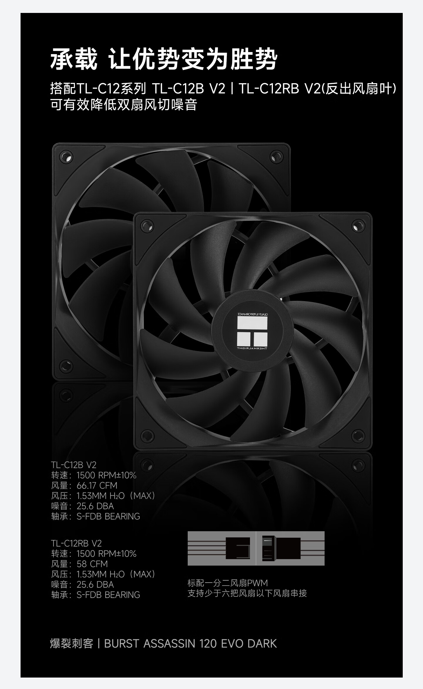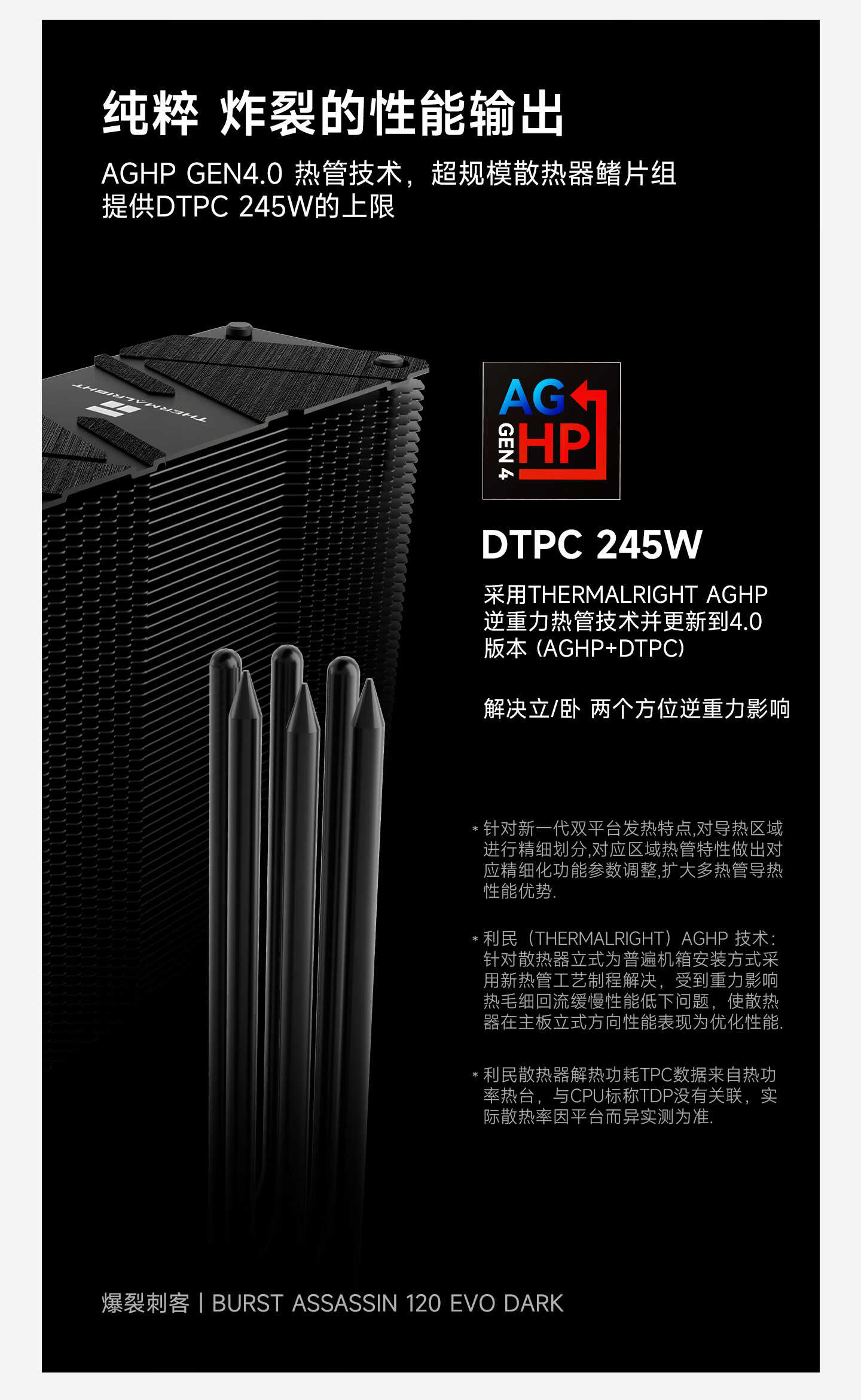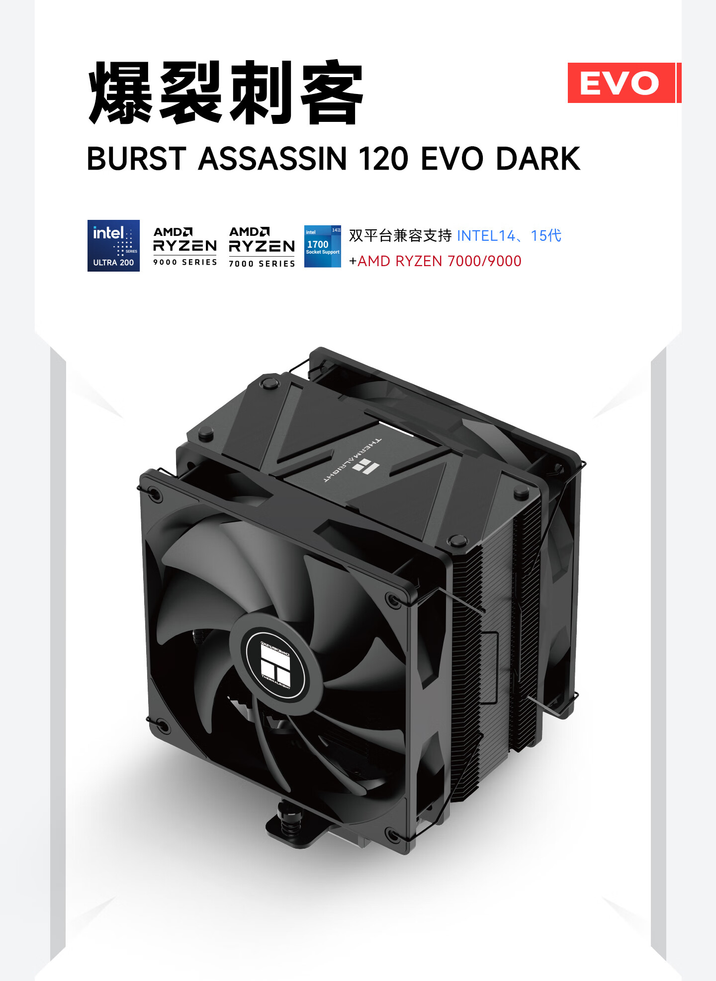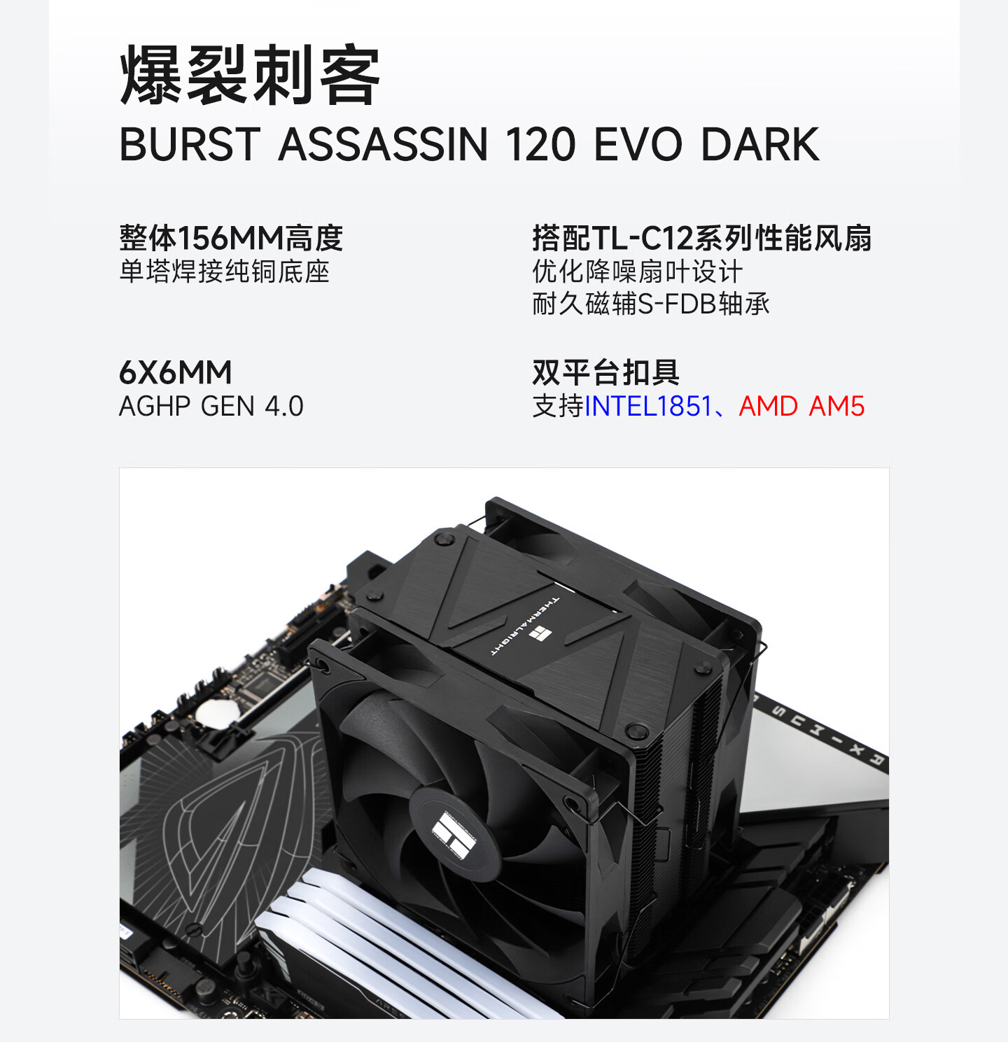 Thermalright(利民)Burst Assassin 120 EVO DARK CPU风冷散热器 6热管铜底 AGHP逆重力热管 BA120 EVO DARK