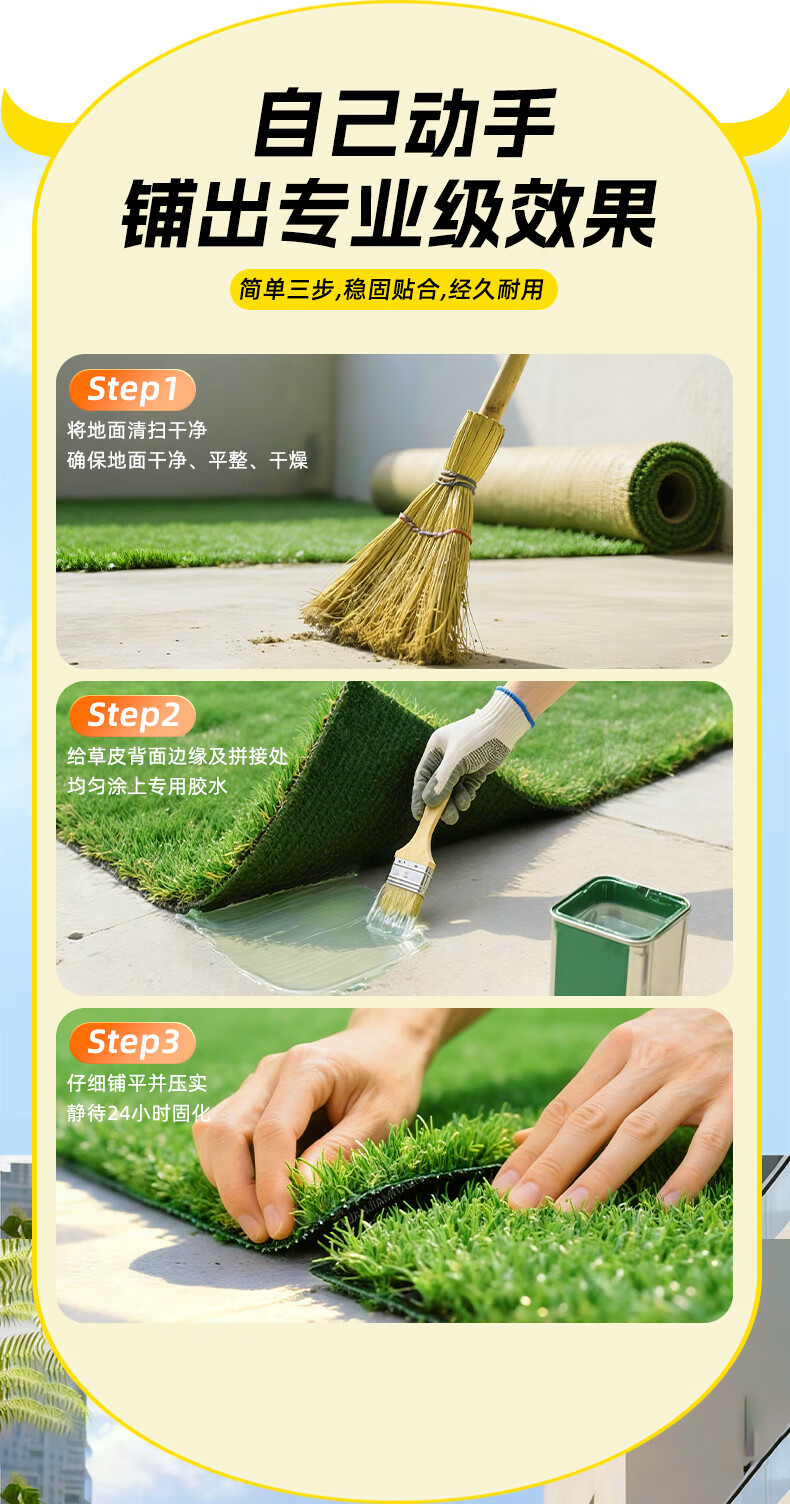 清雅仿真草坪隔音垫子假草皮屋顶阳台隔热防滴水声空调外机雨棚假草坪 3cm加密款消音草(1米宽*1米长)