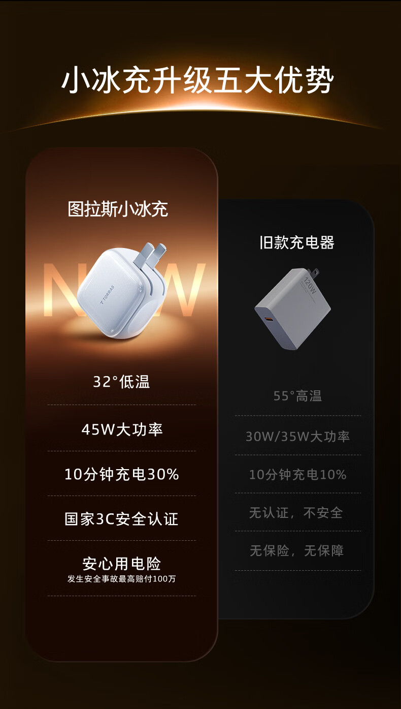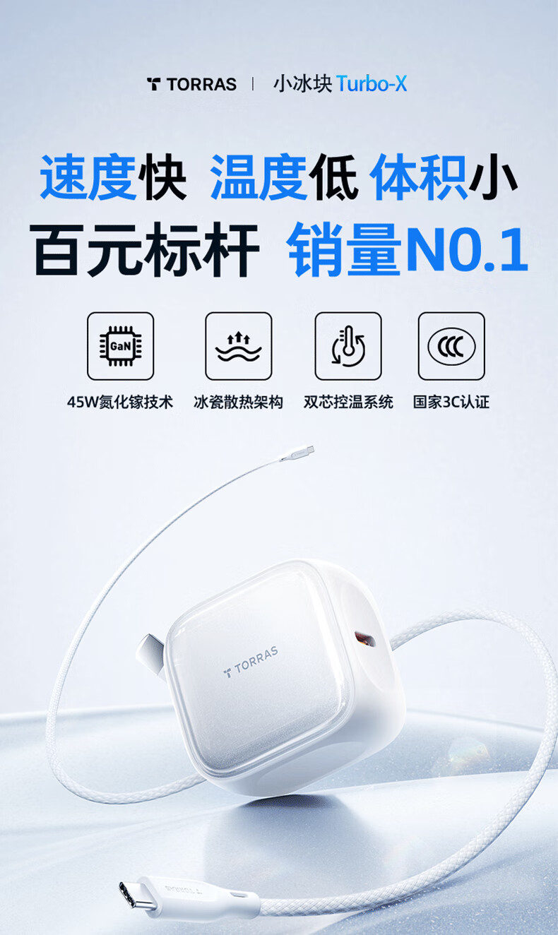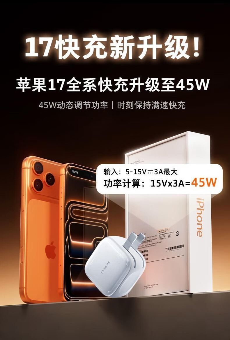 图拉斯45W小冰充Turbo-X【官 方 正 品】苹果17充电器iPhone17Promax氮化镓Air块充头适配16原装40W套装