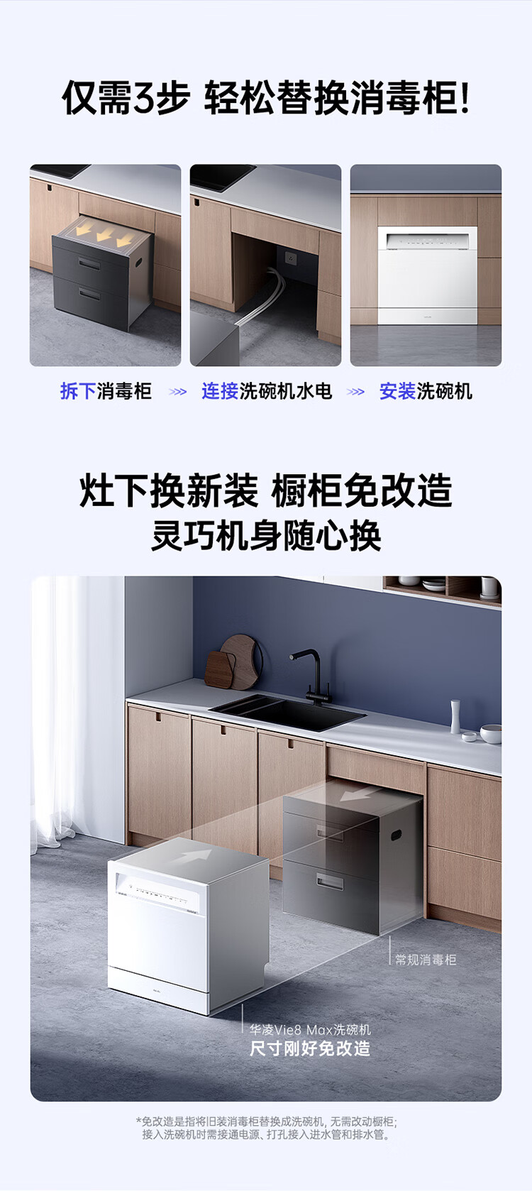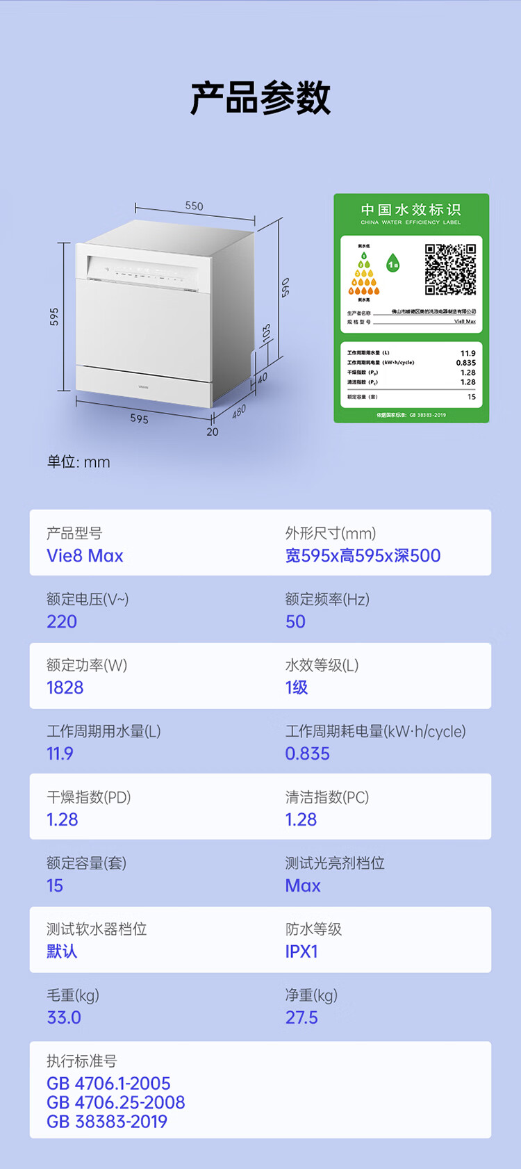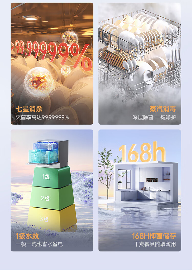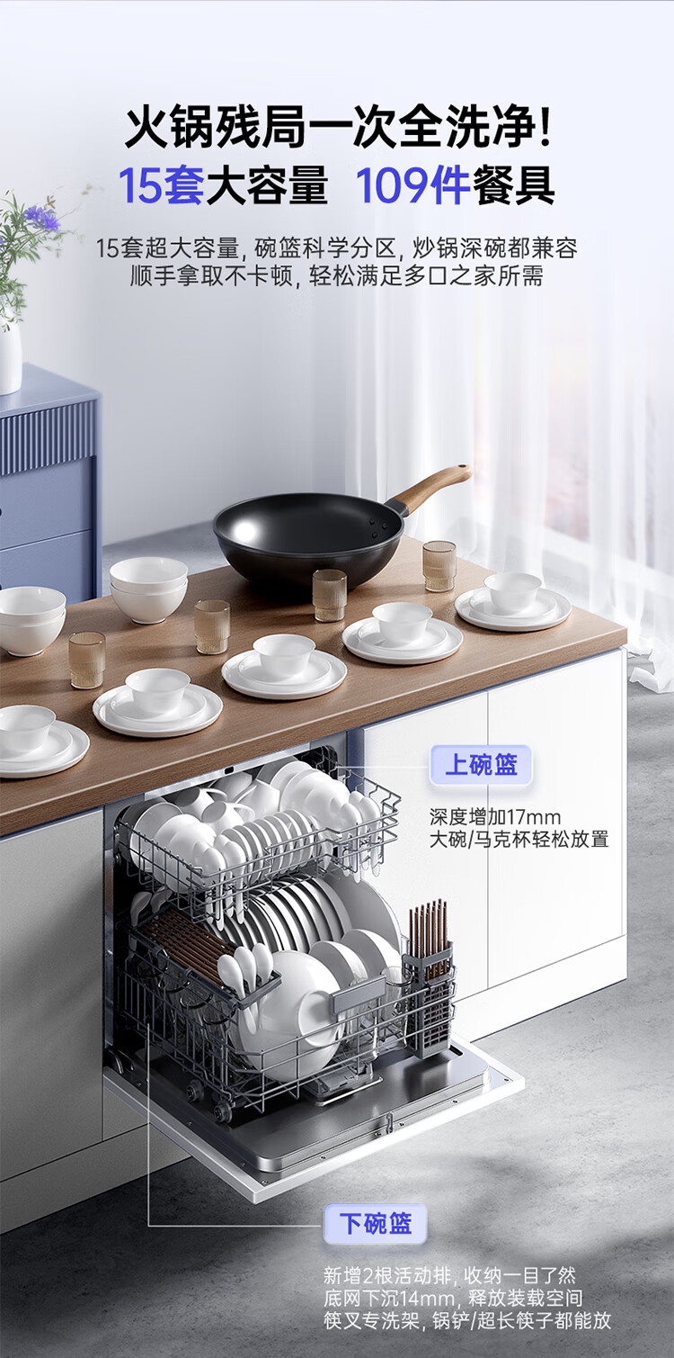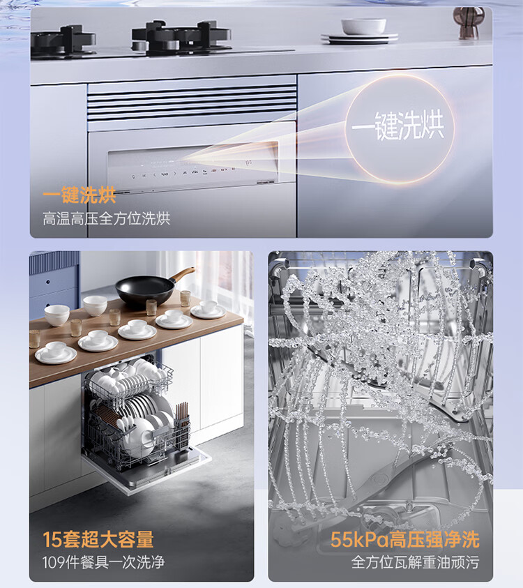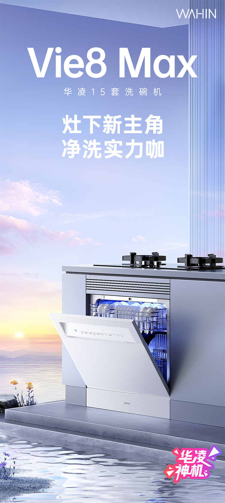 华凌神机【 Vie8 Max】美的出品 灶下15套洗碗机 55kPa水压一键洗烘一级水效 105℃热风烘干 门店同款