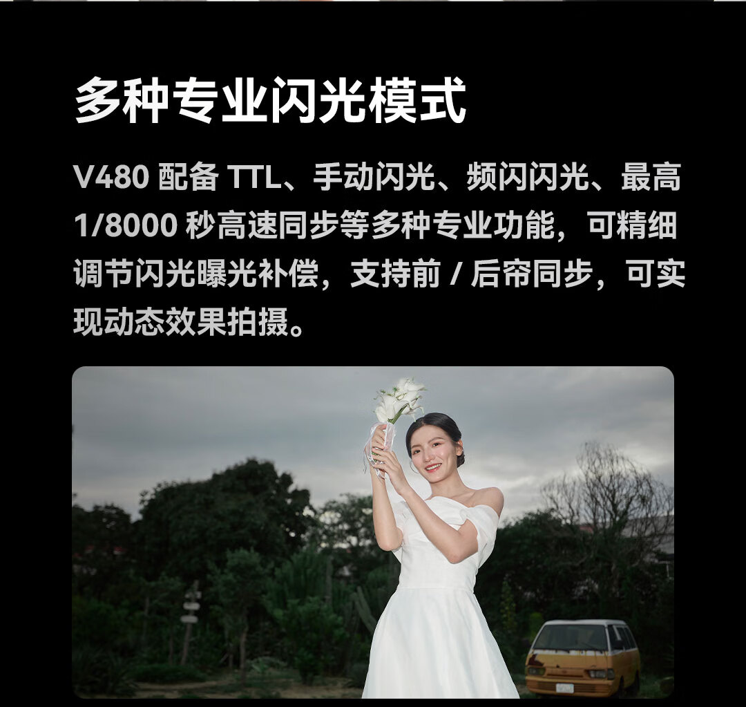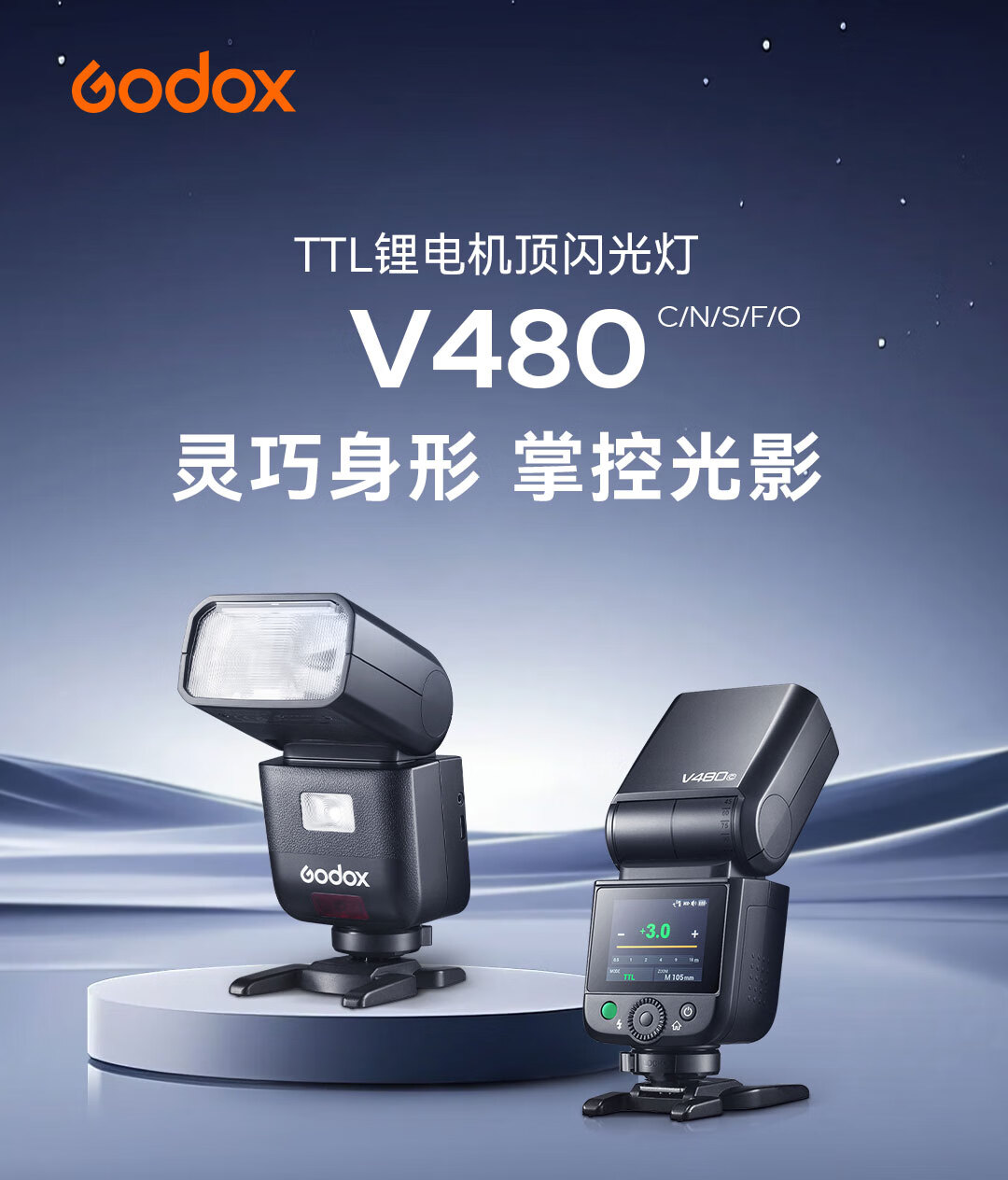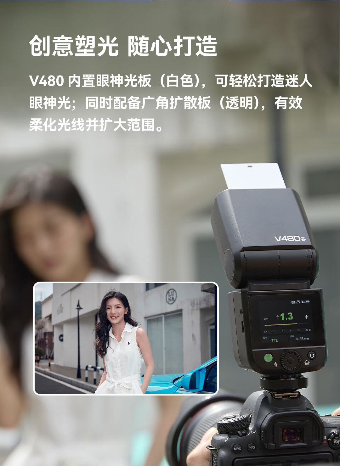 神牛V480机顶闪光灯外拍补光灯适用佳能索尼尼康富士微单相机 标配 V480机顶灯佳能版 V480标配【含柔光盒】-入会有礼 索尼版【现货当天发】