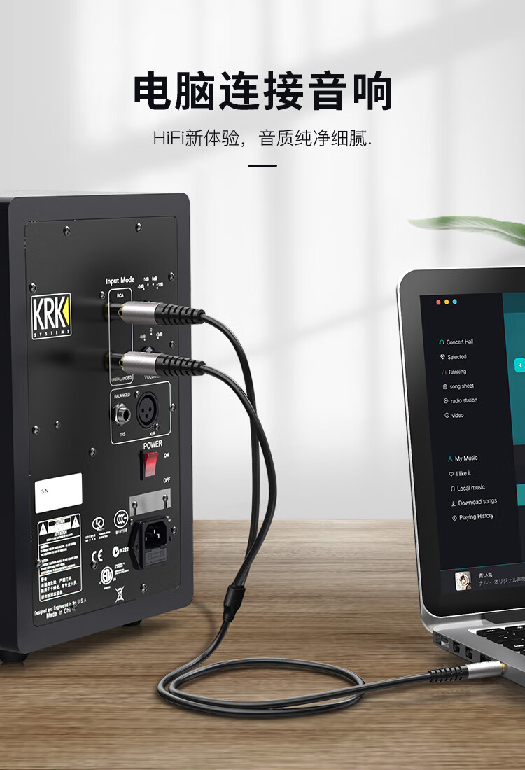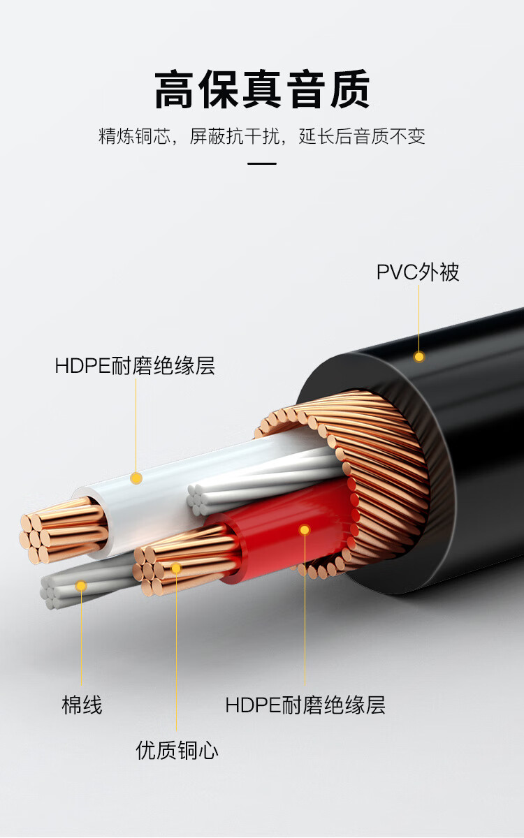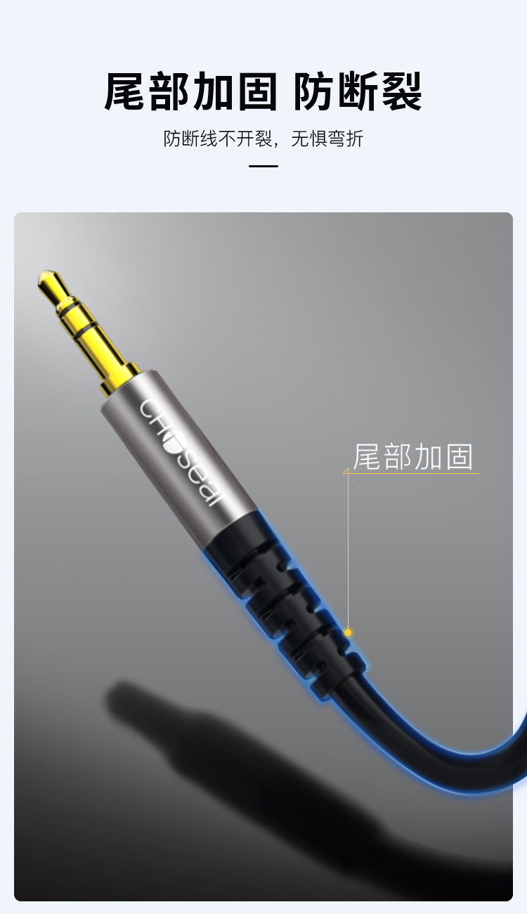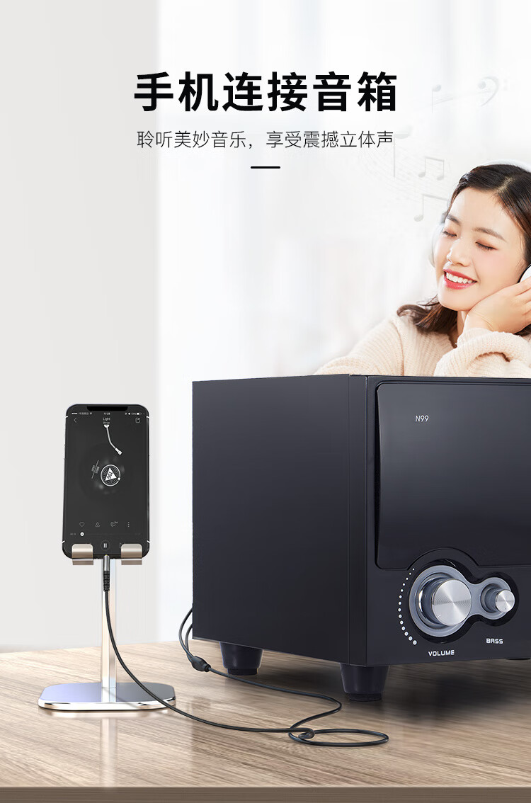 秋叶原(CHOSEAL)3.5mm转双莲花音频线 铝合金外壳 一分二红白2RCA公对公连接线 手机电脑音响转接线 5米 QAD17BKT5