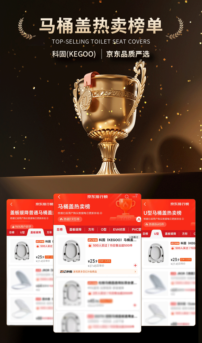 科固(KEGOO)马桶盖板加厚通用缓降抗断坐便器盖轻音老式抽水马桶座圈配件盖子 【U型抗断款】加厚一键式/5秒快拆-1088