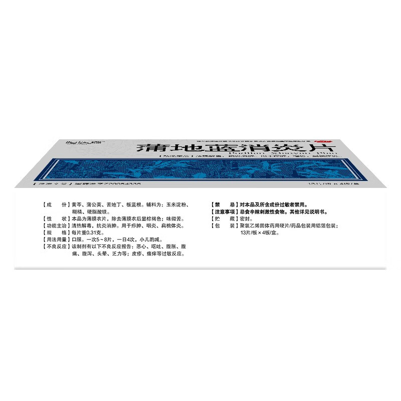 [恒医森]蒲地蓝消炎片 0.31g*52片 2盒装 蒲地蓝消炎片52片/盒 清热解毒抗炎下火消肿咽炎扁桃体炎 居家常备
