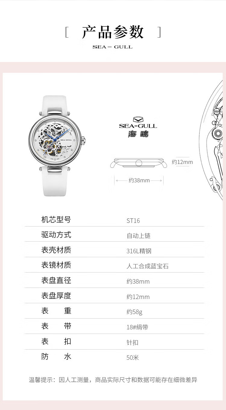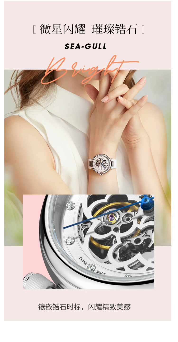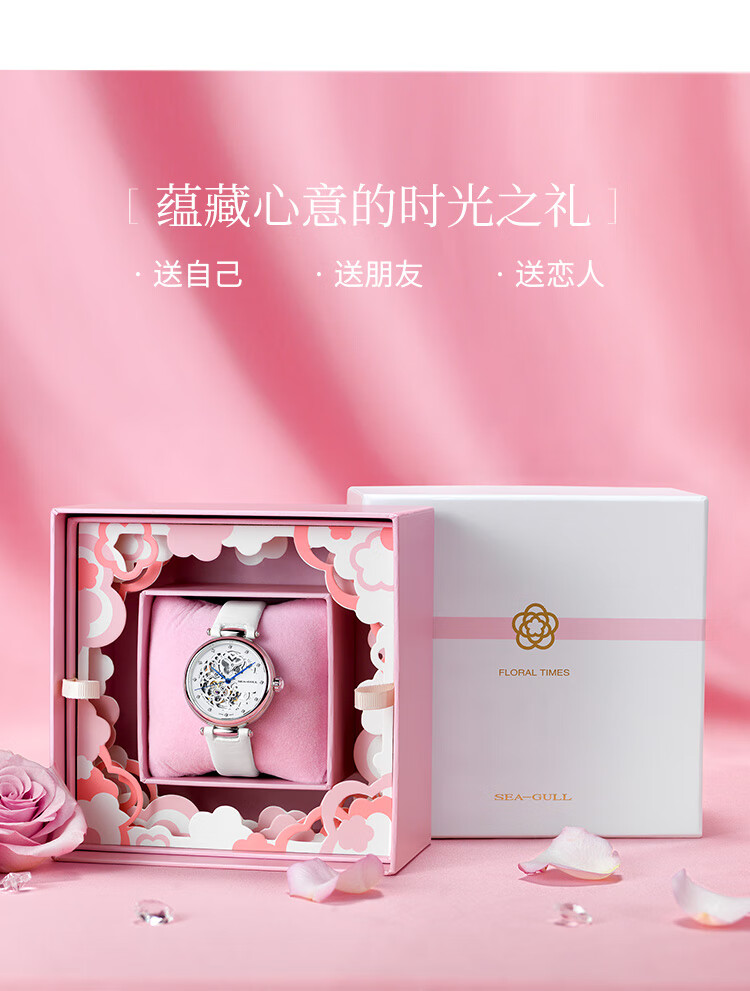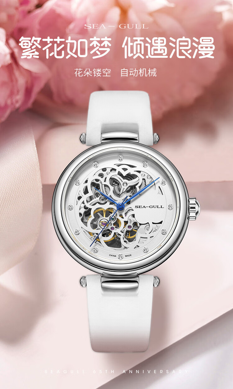 海鸥(SEAGULL)手表女士自动机械表 花样年华镂空女士手表生日礼物女表礼盒6102L
