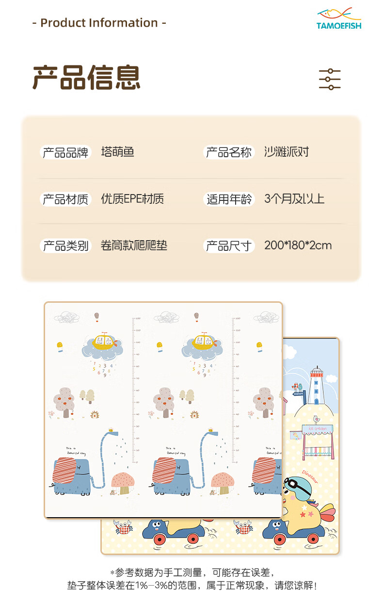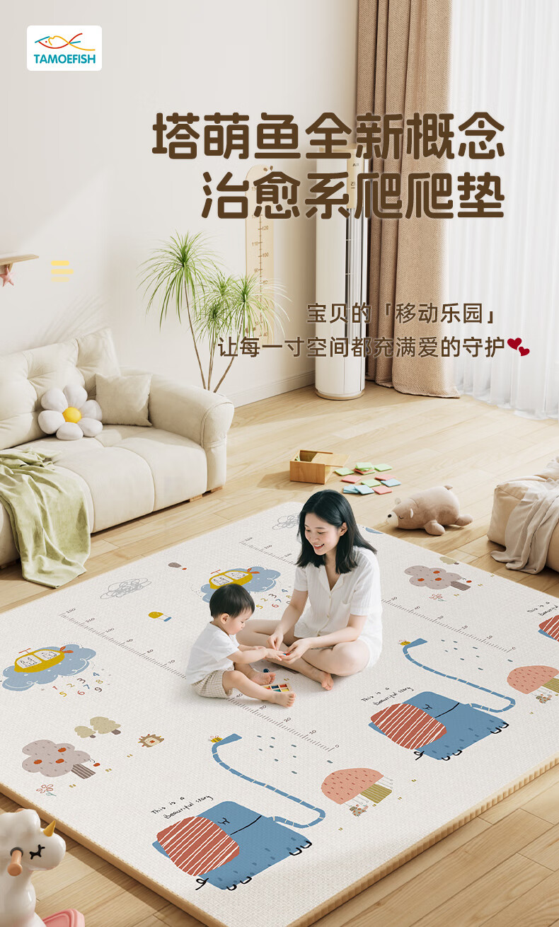塔萌鱼双面加厚宝宝爬行垫爬爬垫防滑垫儿童玩具游戏毯加厚2cm节日礼物