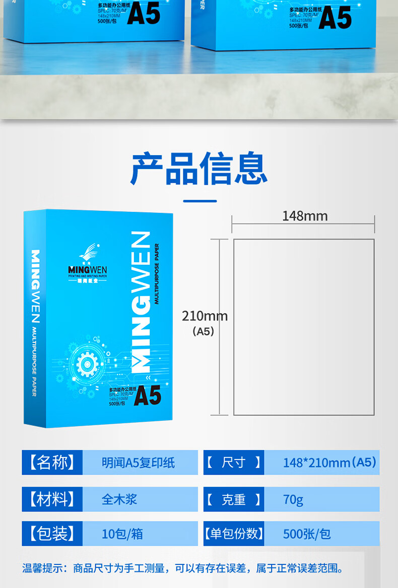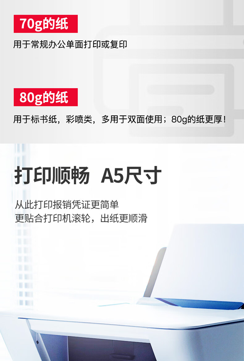 【京东物流】A5打印纸办公用品70gA5复印纸发票打印纸草稿纸 双面打印学生白纸 A5复印纸500张【家用款】