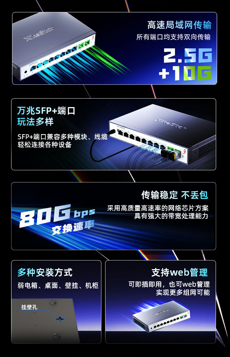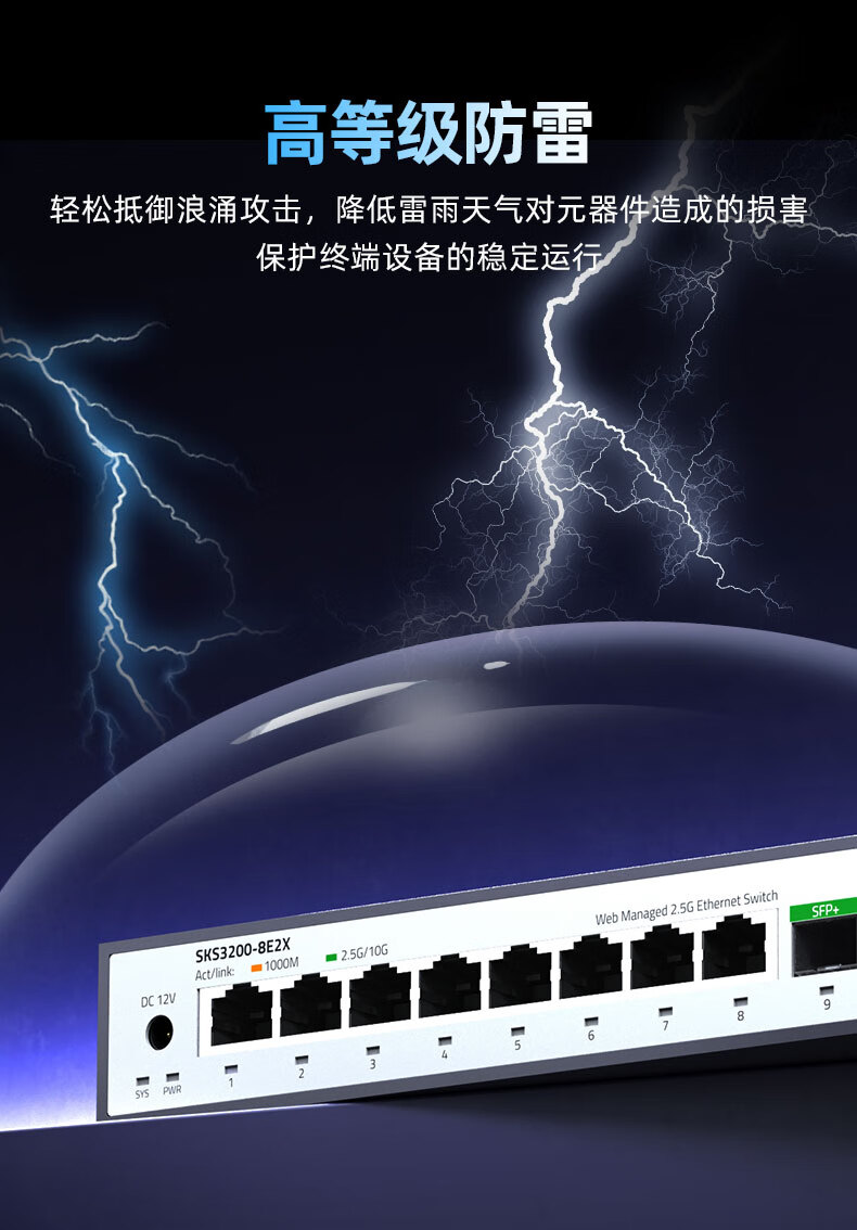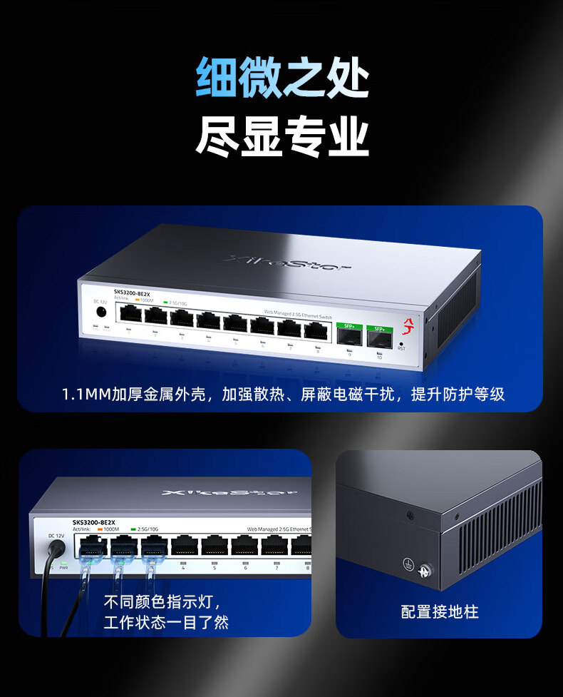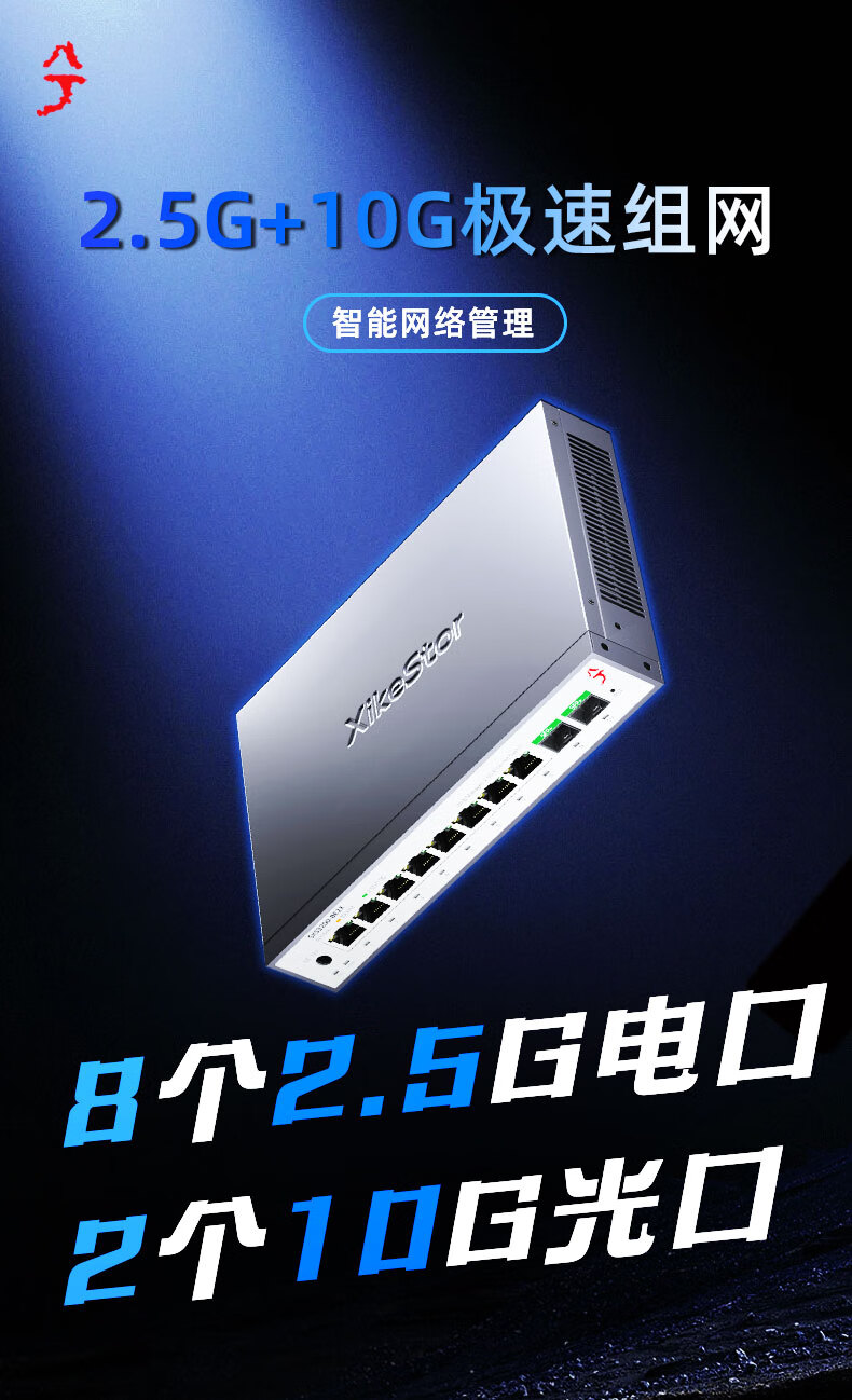 兮克8口2.5G电+2口10G光口网络管理型2.5G交换机 10口万兆支持猫棒 NAS 支持VLAN 聚合SKS3200-8E2X