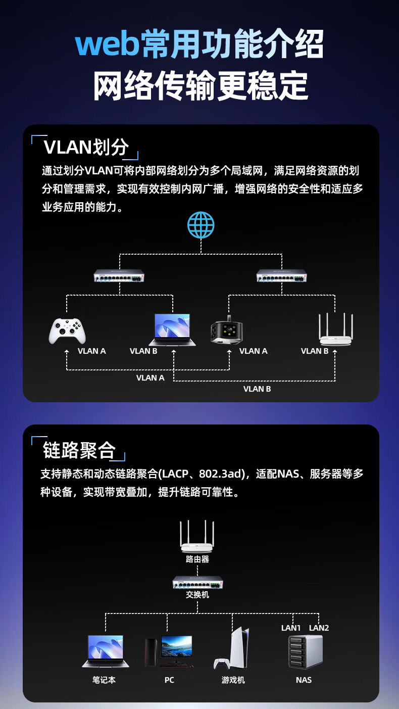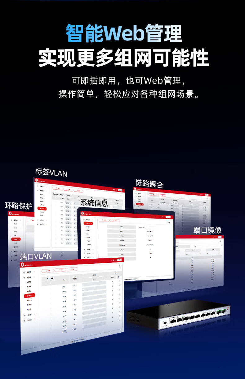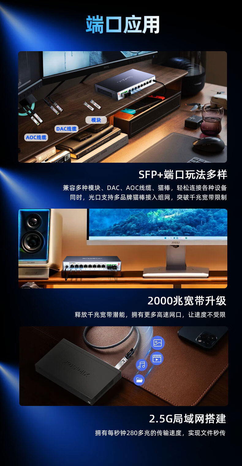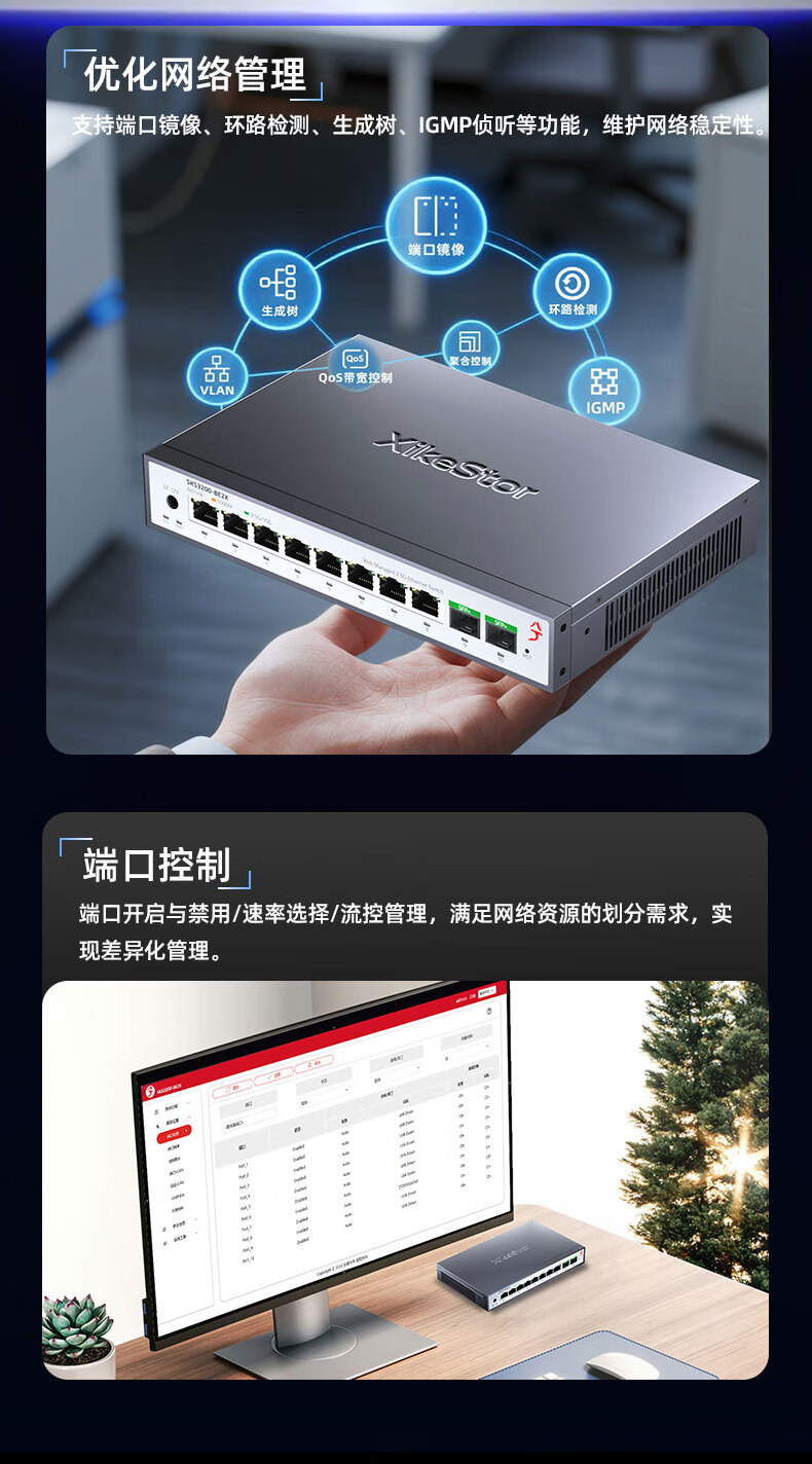 兮克8口2.5G电+2口10G光口网络管理型2.5G交换机 10口万兆支持猫棒 NAS 支持VLAN 聚合SKS3200-8E2X