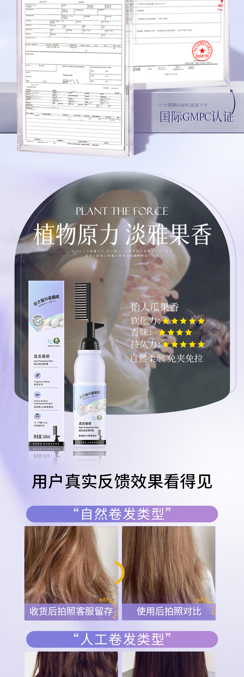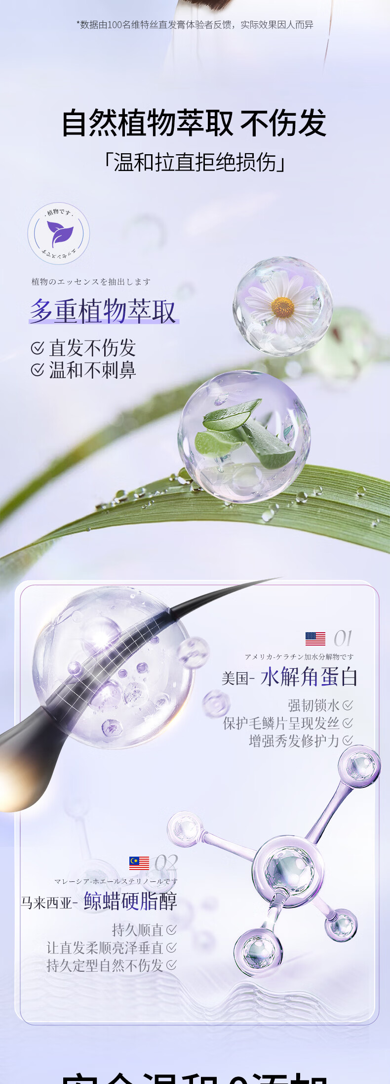 维特丝(vetes)蛋白矫正直发膏免拉家用刘海头发定型柔顺拉直软化剂烫发药水男女