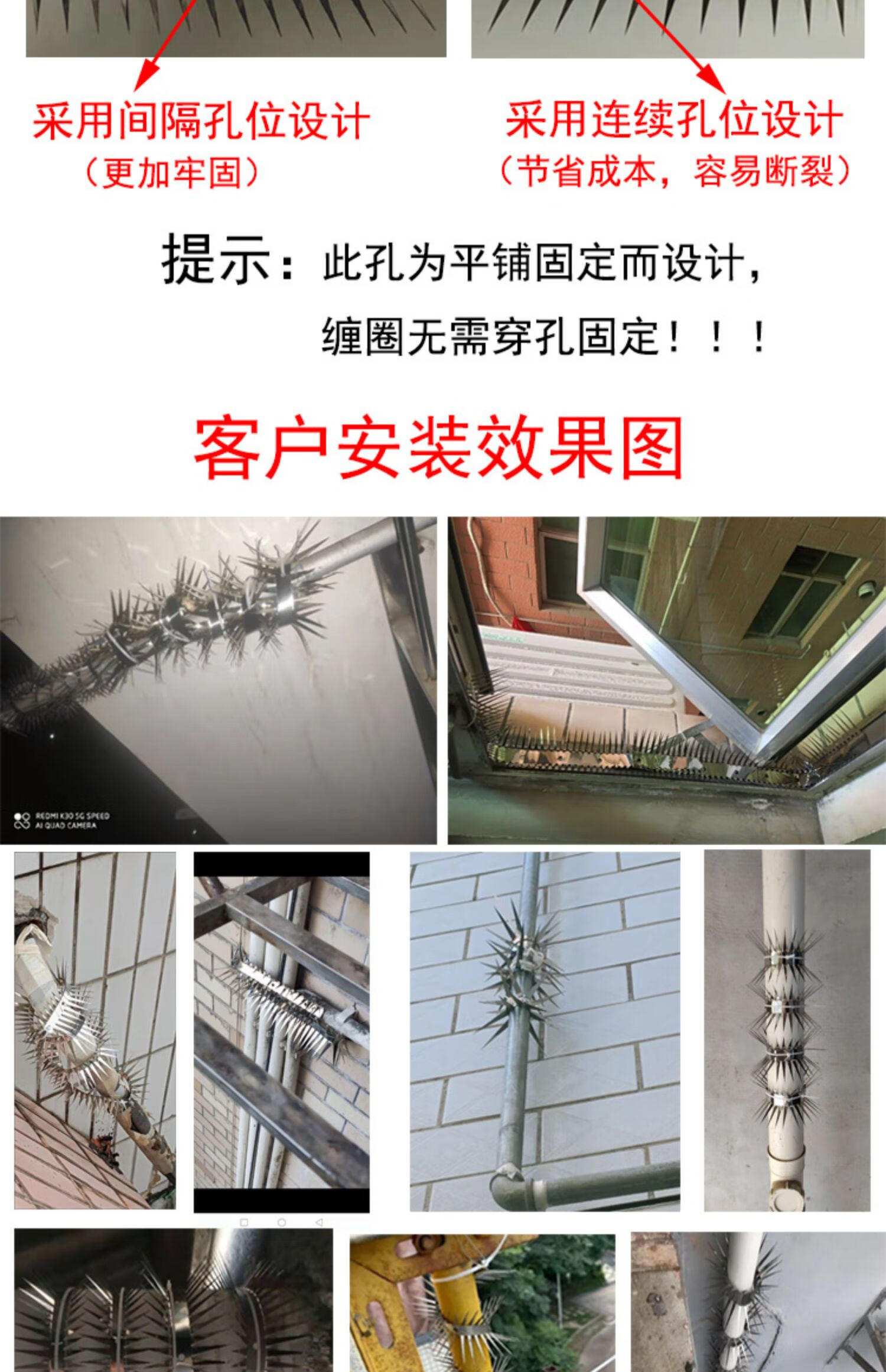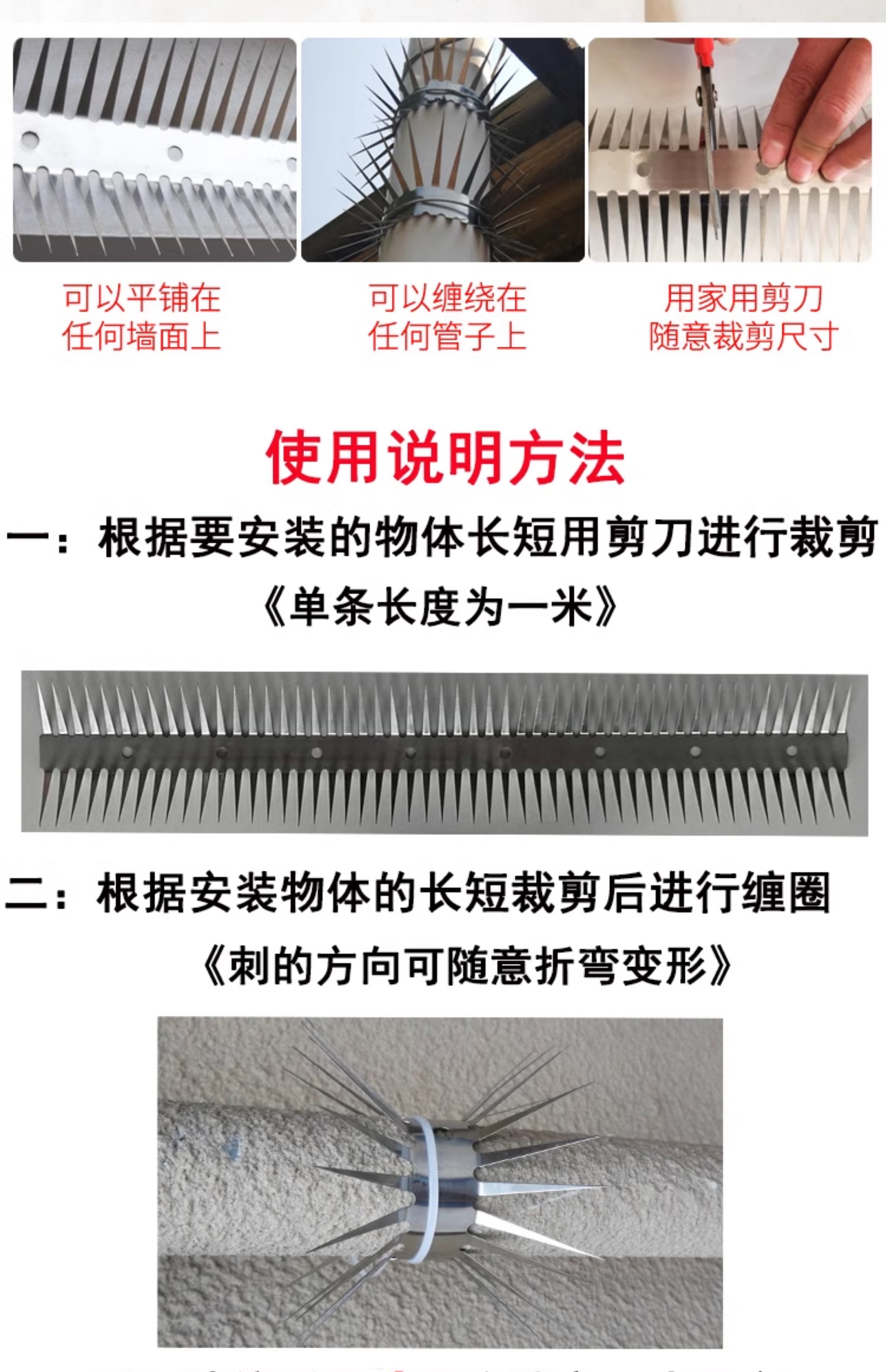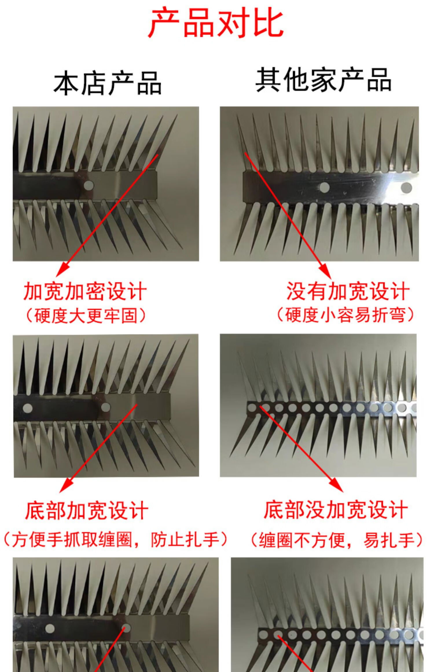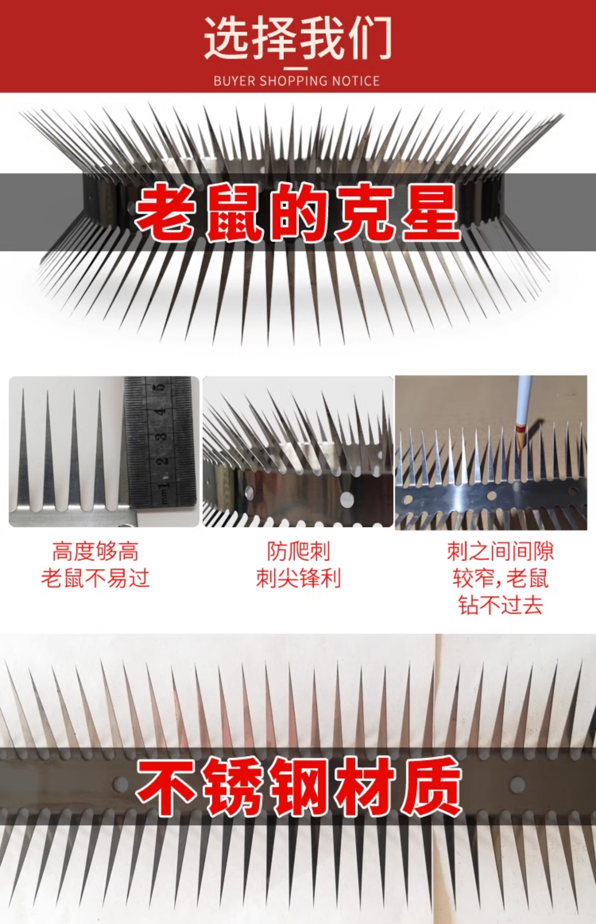 中吉万兴不锈钢防猫防鼠爬刺防老鼠倒刺 防爬刺下水管道防鼠网倒刺钉 常规3.2厘米刺长【一米长】