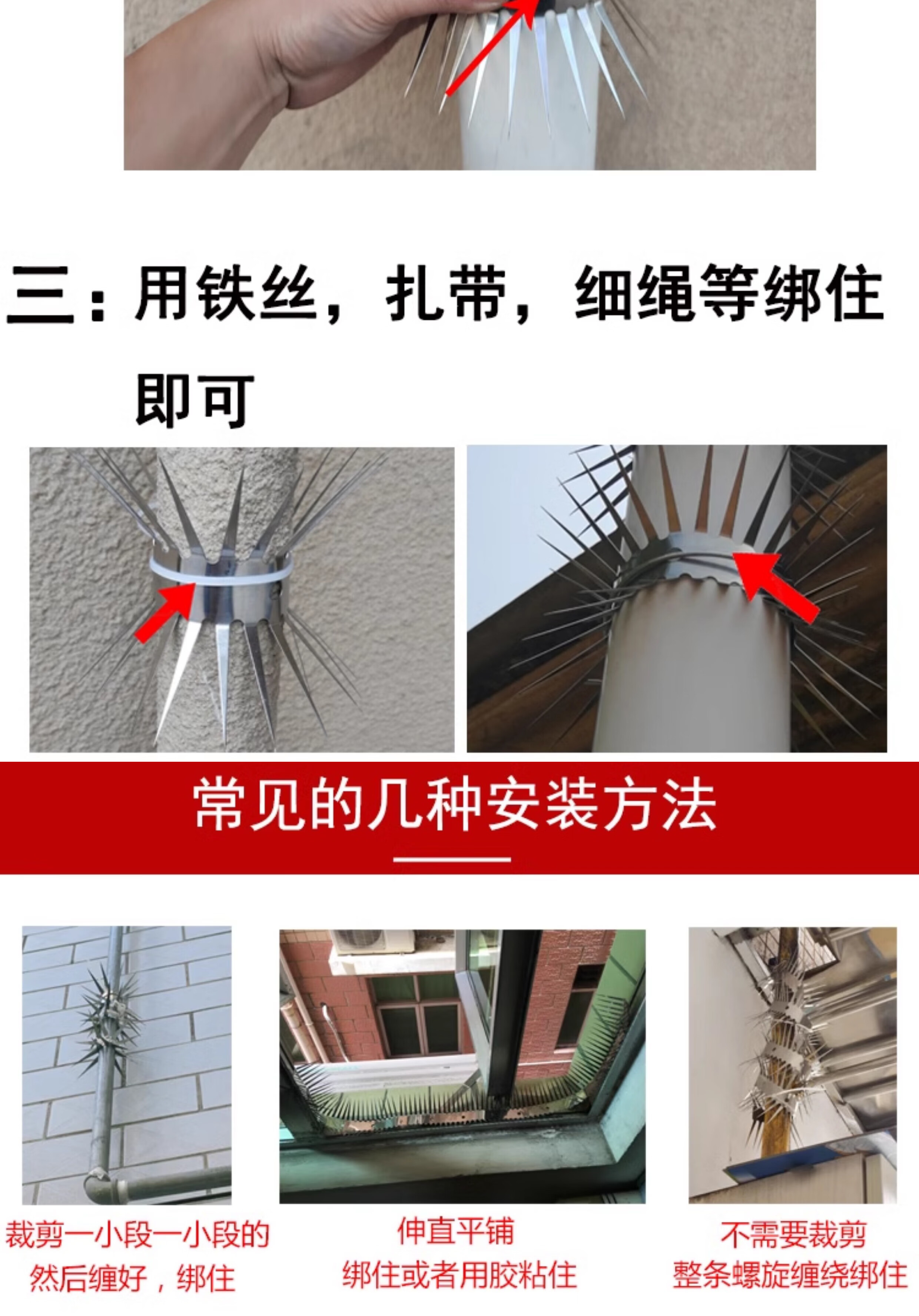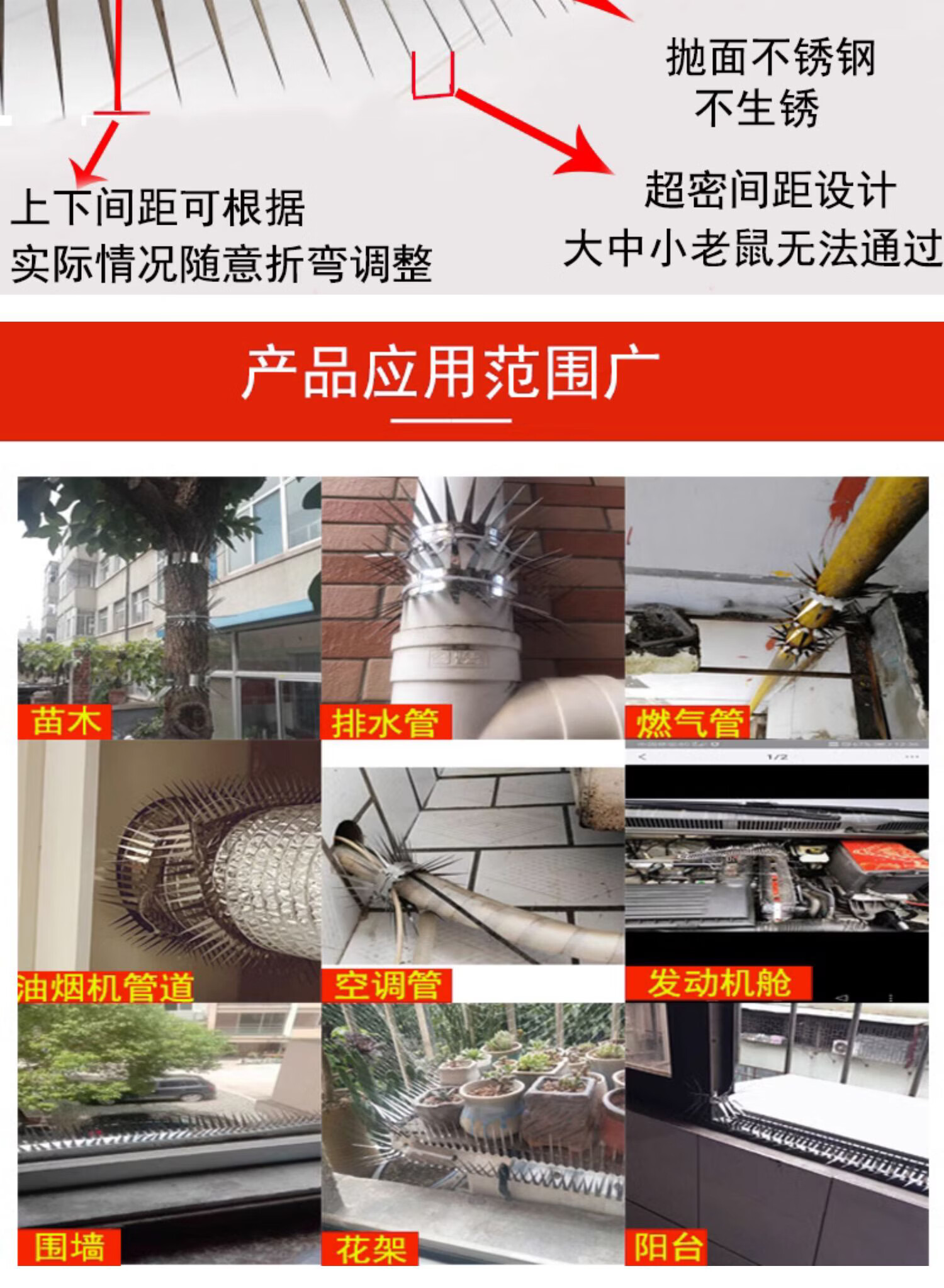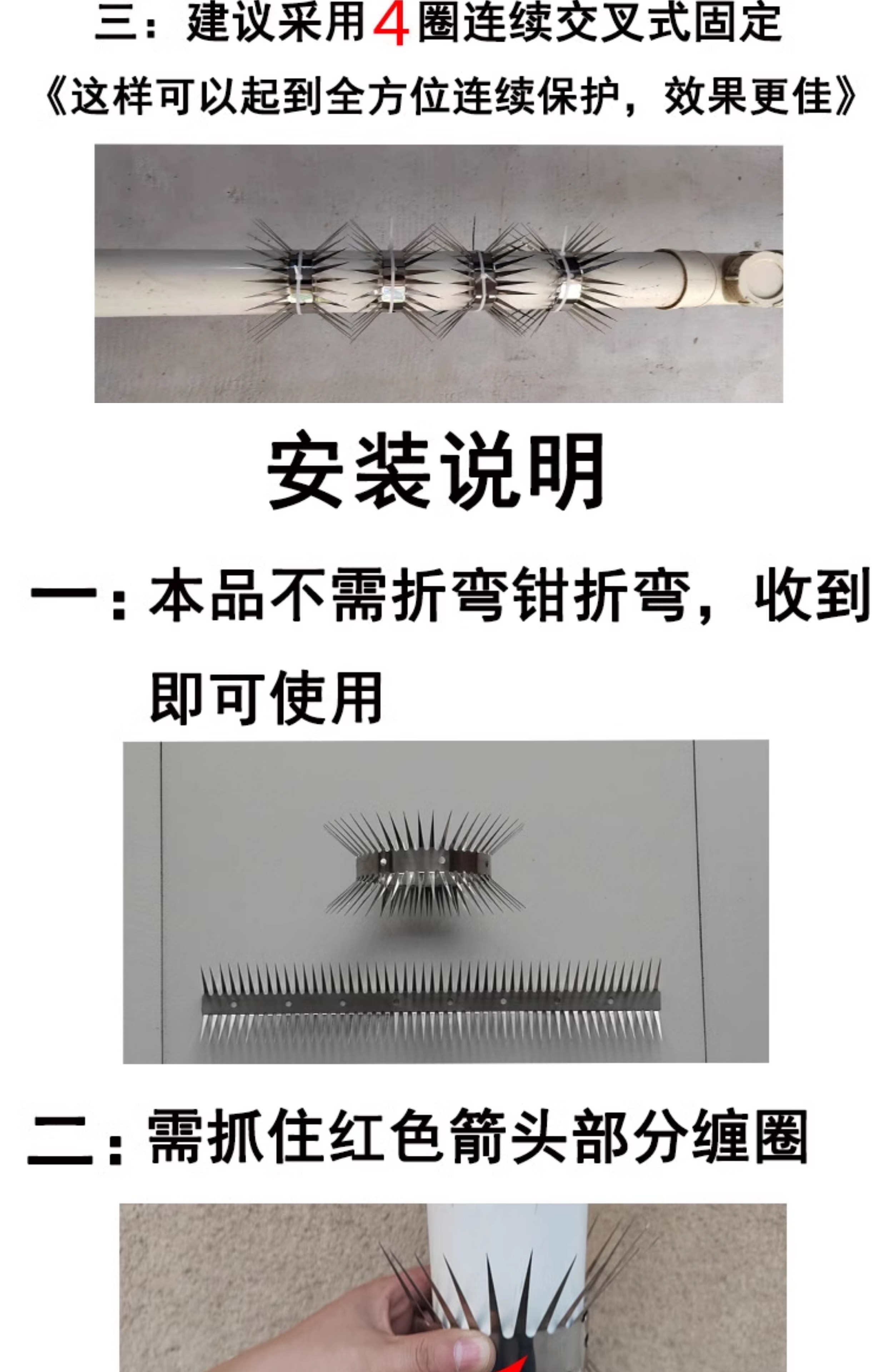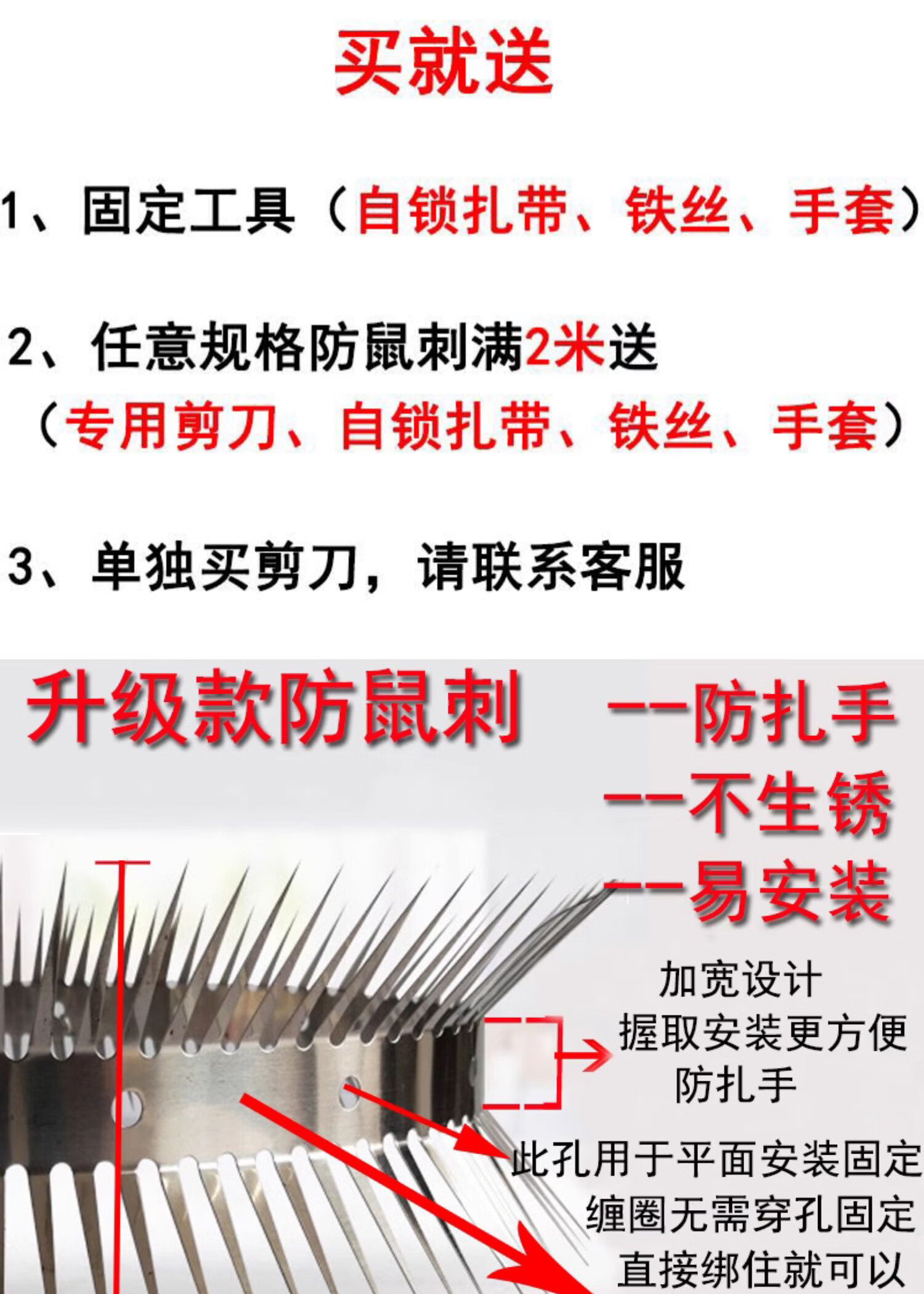 中吉万兴不锈钢防猫防鼠爬刺防老鼠倒刺 防爬刺下水管道防鼠网倒刺钉 常规3.2厘米刺长【一米长】