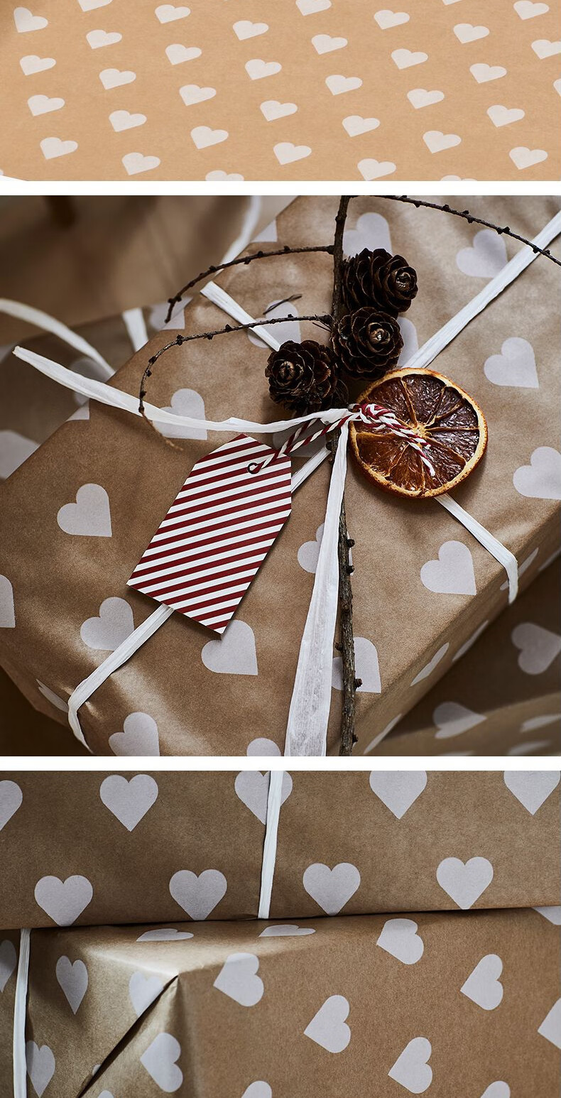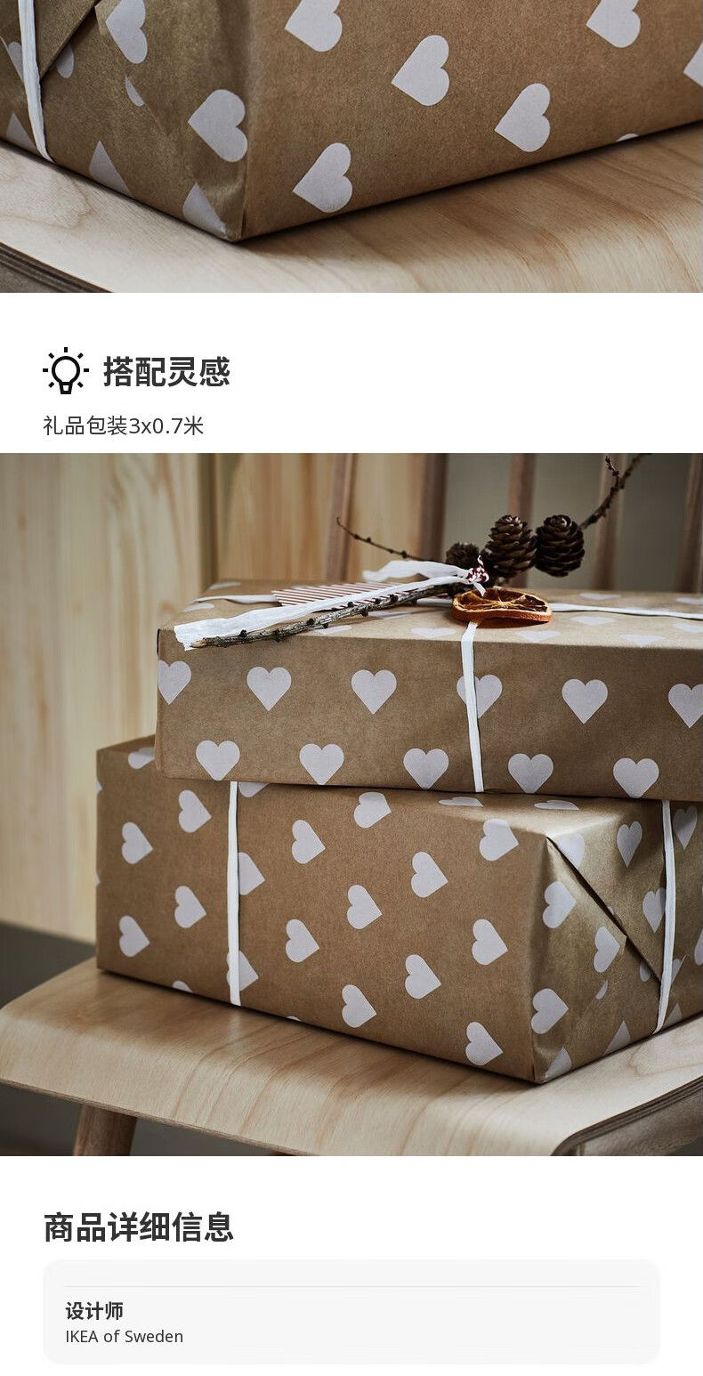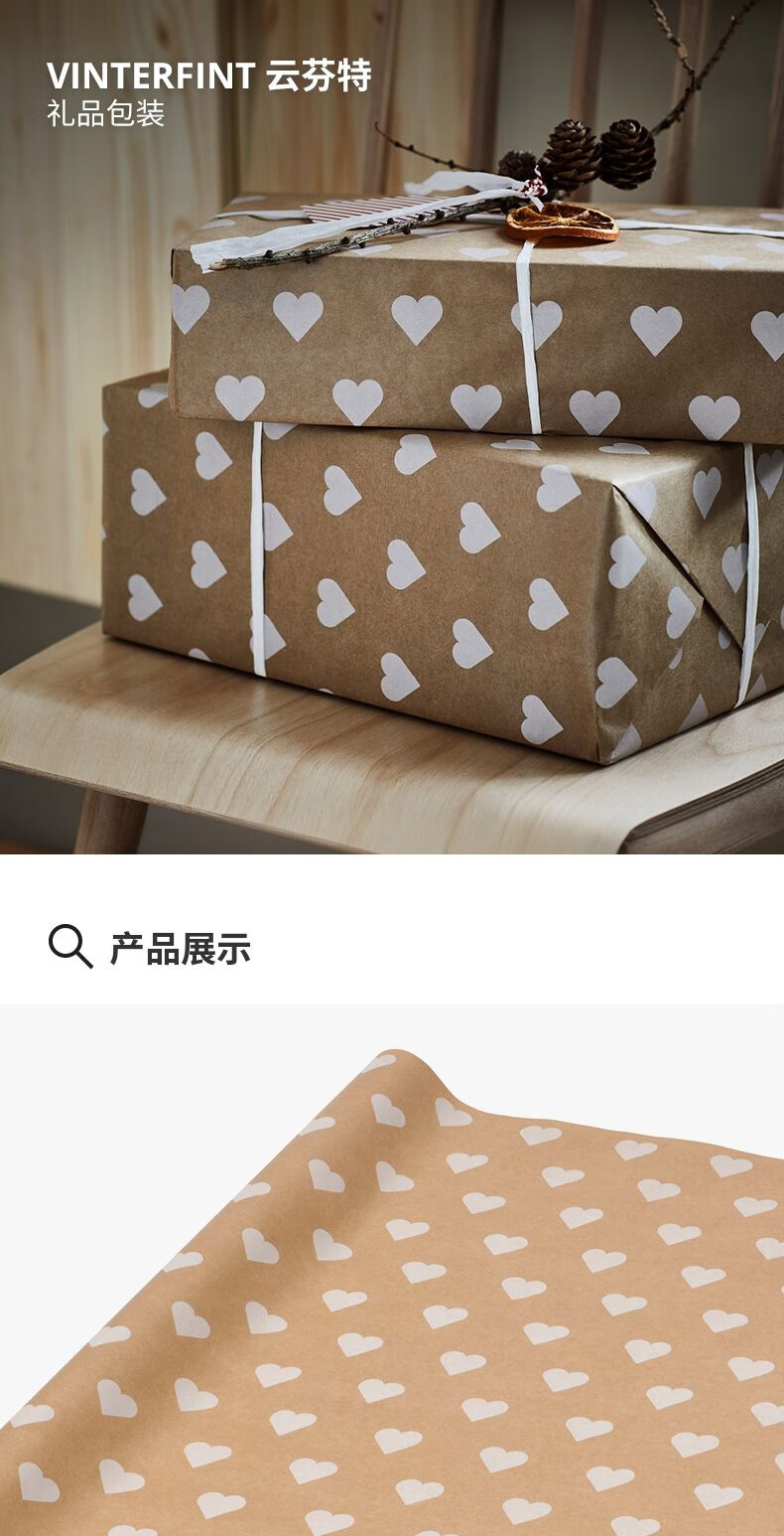 宜家(IKEA)【新品】VINTERFINT云芬特礼品装饰纸生日圣诞节礼物家用 礼品包装心形褐色3x0.7m
